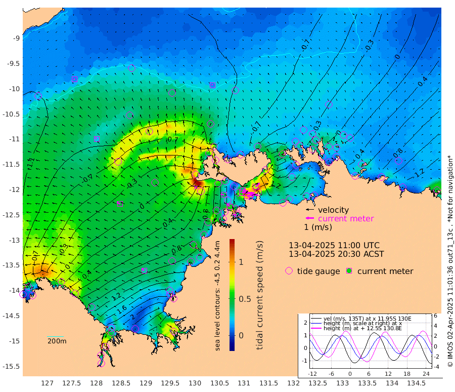94cm/s 79T +4cm/s rms + 6cm/s 51T. Darwin_C1 52m 93cm/s 91T +4cm/s rms + 7cm/s -161T. Darwin_CW1 22m 58cm/s 70T +4cm/s rms + 8cm/s 61T. Darwin_CW2 34m 71cm/s 46T +3cm/s rms + 9cm/s 98T. Darwin_CW3 22m 112cm/s 90T +5cm/s rms + 7cm/s 88T. Darwin_C3 56m 38cm/s 65T +2cm/s rms + 9cm/s -126T. Darwin_CTbW 22m 12cm/s -24T +9cm/s rms + 2cm/s -110T. NWSLYN 196m 40cm/s -77T +1cm/s rms + 1cm/s -47T. DARBGF 30m 11cm/s -95T +7cm/s rms + 2cm/s -137T. ITFTIS 464m 22cm/s -41T +9cm/s rms + 1cm/s 74T. ITFMHB 146m 31cm/s -52T +4cm/s rms + 1cm/s -134T. ITFJBG 61m 47cm/s -59T +6cm/s rms + 4cm/s 121T. ITFFTB 108m 58cm/s -50T +4cm/s rms + 3cm/s 80T. NRSDAR 19m -68cm Carronade Island -70cm Guy Point -61cm Napier Broome Bay 10cm Lesueur Island 112cm Reveley Island 77cm Rocky Island 219cm Cape Domett 179cm Lacrosse Island 268cm Adolphus Island 270cm Pender Point 274cm Wyndham -60cm The Boxers -52cm Unnamed Shoal -101cm Loxton Shoal 226cm Pelican Island -86cm Calder Shoal -90cm Evans Shoal 356cm Quoin Island 171cm Port Keats 178cm Jones Point 320cm Catfish Island 70cm Cape Scott Offshore 21cm Cape Ford 81cm Anson Bay -82cm Goodrich Bank 63cm Peron Island North 40cm Point Jenny 37cm Native Point 64cm Fish Reef 66cm Tapa Bay -39cm Point Fawcett (Offshore) 93cm Burge Point 59cm Munkunuwa 13cm Beagle A 103cm Parsons Bank 80cm Fenton Patches -73cm Lynedoch Bank 106cm Hancox Shoal Area 95cm Nightcliff 132cm Darwin 95cm Charles Point Patches 129cm Glyde Point 155cm Chambers Bay 176cm Point Stuart 127cm Cape Hotham 134cm Christine Reef 197cm West Alligator Head 214cm East Field Island 125cm Two Hills Bay -25cm Newby Shoal 118cm Camp Point 75cm Medina Inlet South -44cm South Barlow Point -70cm St. Asaph Bay -84cm Cape Van Dieman -75cm Snake Bay -76cm Cache Point -113cm Echo Shoal -48cm Point Jahleel (Off) 19cm Cape Don -29cm Port Essington -37cm Smith Point - West -33cm NW Peacock Island -53cm North Of Jones Shoal -16cm Peacock Island 3cm Point David -30cm D'urville Point -28cm Money Shoal 9cm Copeland Island 15cm Cape Cockburn 2cm One Tree Point 14cm Hogmany Shoal 2cm New Year Island - West 9cm Grant Island 42cm Aurari Bay 73cm Cuthbert Point 37cm North Goulburn Island 90cm Paxie Shoal 112cm Entrance Island 155cm Yabooma Island