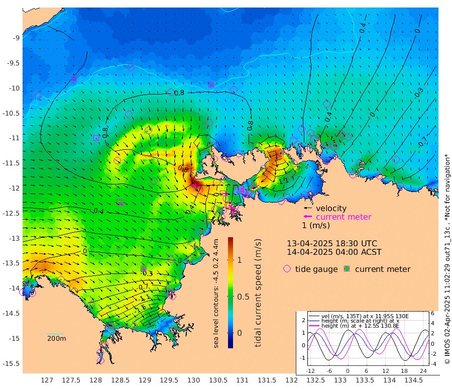 1cm/s -96T +4cm/s rms + 6cm/s 51T. Darwin_C1 52m 20cm/s -83T +4cm/s rms + 7cm/s -161T. Darwin_CW1 22m 17cm/s 72T +4cm/s rms + 8cm/s 61T. Darwin_CW2 34m 49cm/s -147T +3cm/s rms + 9cm/s 98T. Darwin_CW3 22m 23cm/s -82T +5cm/s rms + 7cm/s 88T. Darwin_C3 56m 24cm/s 60T +2cm/s rms + 9cm/s -126T. Darwin_CTbW 22m 12cm/s 159T +9cm/s rms + 2cm/s -110T. NWSLYN 196m 74cm/s 95T +1cm/s rms + 1cm/s -47T. DARBGF 30m 10cm/s 86T +7cm/s rms + 2cm/s -137T. ITFTIS 464m 24cm/s 149T +9cm/s rms + 1cm/s 74T. ITFMHB 146m 54cm/s 142T +4cm/s rms + 1cm/s -134T. ITFJBG 61m 58cm/s 128T +6cm/s rms + 4cm/s 121T. ITFFTB 108m 81cm/s 126T +4cm/s rms + 3cm/s 80T. NRSDAR 19m -52cm Carronade Island -52cm Guy Point -59cm Napier Broome Bay -61cm Lesueur Island -86cm Reveley Island -64cm Rocky Island -166cm Cape Domett -141cm Lacrosse Island -234cm Adolphus Island -300cm Pender Point -340cm Wyndham 50cm The Boxers 61cm Unnamed Shoal 54cm Loxton Shoal -139cm Pelican Island 71cm Calder Shoal 61cm Evans Shoal -318cm Quoin Island -71cm Port Keats -71cm Jones Point -337cm Catfish Island 17cm Cape Scott Offshore 89cm Cape Ford 30cm Anson Bay 74cm Goodrich Bank 26cm Peron Island North 57cm Point Jenny 61cm Native Point 38cm Fish Reef 48cm Tapa Bay 85cm Point Fawcett (Offshore) 19cm Burge Point 59cm Munkunuwa 64cm Beagle A 14cm Parsons Bank 27cm Fenton Patches 54cm Lynedoch Bank 3cm Hancox Shoal Area 19cm Nightcliff -7cm Darwin 21cm Charles Point Patches -67cm Glyde Point -141cm Chambers Bay -179cm Point Stuart -93cm Cape Hotham -128cm Christine Reef -204cm West Alligator Head -245cm East Field Island -116cm Two Hills Bay 46cm Newby Shoal -103cm Camp Point 36cm Medina Inlet South 88cm South Barlow Point 92cm St. Asaph Bay 81cm Cape Van Dieman 75cm Snake Bay 67cm Cache Point 47cm Echo Shoal 46cm Point Jahleel (Off) -2cm Cape Don 37cm Port Essington 45cm Smith Point - West 37cm NW Peacock Island 46cm North Of Jones Shoal 15cm Peacock Island 10cm Point David 39cm D'urville Point 26cm Money Shoal 5cm Copeland Island -4cm Cape Cockburn 7cm One Tree Point -6cm Hogmany Shoal 4cm New Year Island - West 1cm Grant Island -23cm Aurari Bay -52cm Cuthbert Point -21cm North Goulburn Island -69cm Paxie Shoal -85cm Entrance Island -129cm Yabooma Island