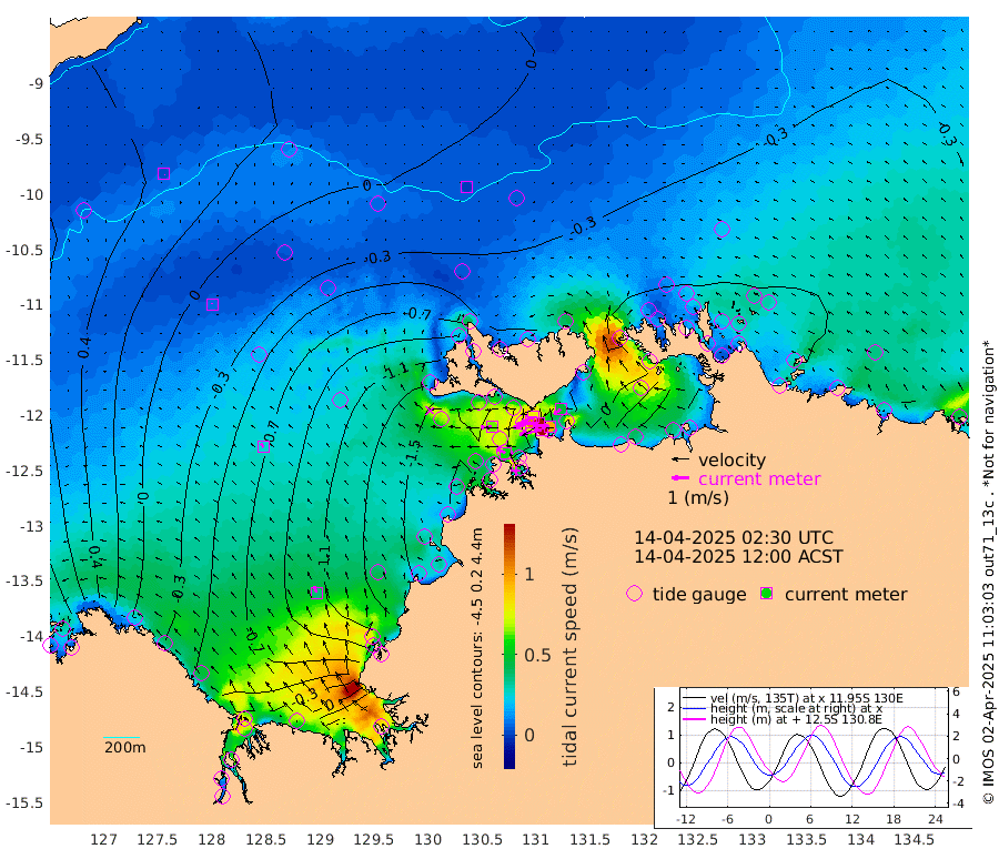 131cm/s -103T +4cm/s rms + 6cm/s 51T. Darwin_C1 52m 96cm/s -89T +4cm/s rms + 7cm/s -161T. Darwin_CW1 22m 106cm/s -108T +4cm/s rms + 8cm/s 61T. Darwin_CW2 34m 48cm/s -123T +3cm/s rms + 9cm/s 98T. Darwin_CW3 22m 126cm/s -92T +5cm/s rms + 7cm/s 88T. Darwin_C3 56m 79cm/s -115T +2cm/s rms + 9cm/s -126T. Darwin_CTbW 22m 1cm/s -56T +9cm/s rms + 2cm/s -110T. NWSLYN 196m 64cm/s -91T +1cm/s rms + 1cm/s -47T. DARBGF 30m 1cm/s -141T +7cm/s rms + 2cm/s -137T. ITFTIS 464m 8cm/s 2T +9cm/s rms + 1cm/s 74T. ITFMHB 146m 38cm/s -20T +4cm/s rms + 1cm/s -134T. ITFJBG 61m 26cm/s -36T +6cm/s rms + 4cm/s 121T. ITFFTB 108m 57cm/s -64T +4cm/s rms + 3cm/s 80T. NRSDAR 19m 147cm Carronade Island 151cm Guy Point 149cm Napier Broome Bay 56cm Lesueur Island -30cm Reveley Island -11cm Rocky Island -51cm Cape Domett -39cm Lacrosse Island -15cm Adolphus Island 88cm Pender Point 139cm Wyndham -14cm The Boxers -42cm Unnamed Shoal 35cm Loxton Shoal -95cm Pelican Island -12cm Calder Shoal 12cm Evans Shoal -4cm Quoin Island -135cm Port Keats -135cm Jones Point 77cm Catfish Island -133cm Cape Scott Offshore -167cm Cape Ford -167cm Anson Bay -18cm Goodrich Bank -139cm Peron Island North -152cm Point Jenny -154cm Native Point -157cm Fish Reef -171cm Tapa Bay -93cm Point Fawcett (Offshore) -169cm Burge Point -177cm Munkunuwa -132cm Beagle A -172cm Parsons Bank -164cm Fenton Patches 0cm Lynedoch Bank -158cm Hancox Shoal Area -173cm Nightcliff -179cm Darwin -173cm Charles Point Patches -83cm Glyde Point -1cm Chambers Bay 27cm Point Stuart -42cm Cape Hotham 4cm Christine Reef 38cm West Alligator Head 78cm East Field Island -3cm Two Hills Bay -65cm Newby Shoal -14cm Camp Point -169cm Medina Inlet South -92cm South Barlow Point -63cm St. Asaph Bay -26cm Cape Van Dieman -31cm Snake Bay -17cm Cache Point 63cm Echo Shoal -22cm Point Jahleel (Off) -38cm Cape Don -33cm Port Essington -34cm Smith Point - West -28cm NW Peacock Island -17cm North Of Jones Shoal -8cm Peacock Island -34cm Point David -36cm D'urville Point -20cm Money Shoal -34cm Copeland Island -37cm Cape Cockburn -31cm One Tree Point -25cm Hogmany Shoal -27cm New Year Island - West -30cm Grant Island -37cm Aurari Bay -32cm Cuthbert Point -34cm North Goulburn Island -28cm Paxie Shoal -30cm Entrance Island -21cm Yabooma Island