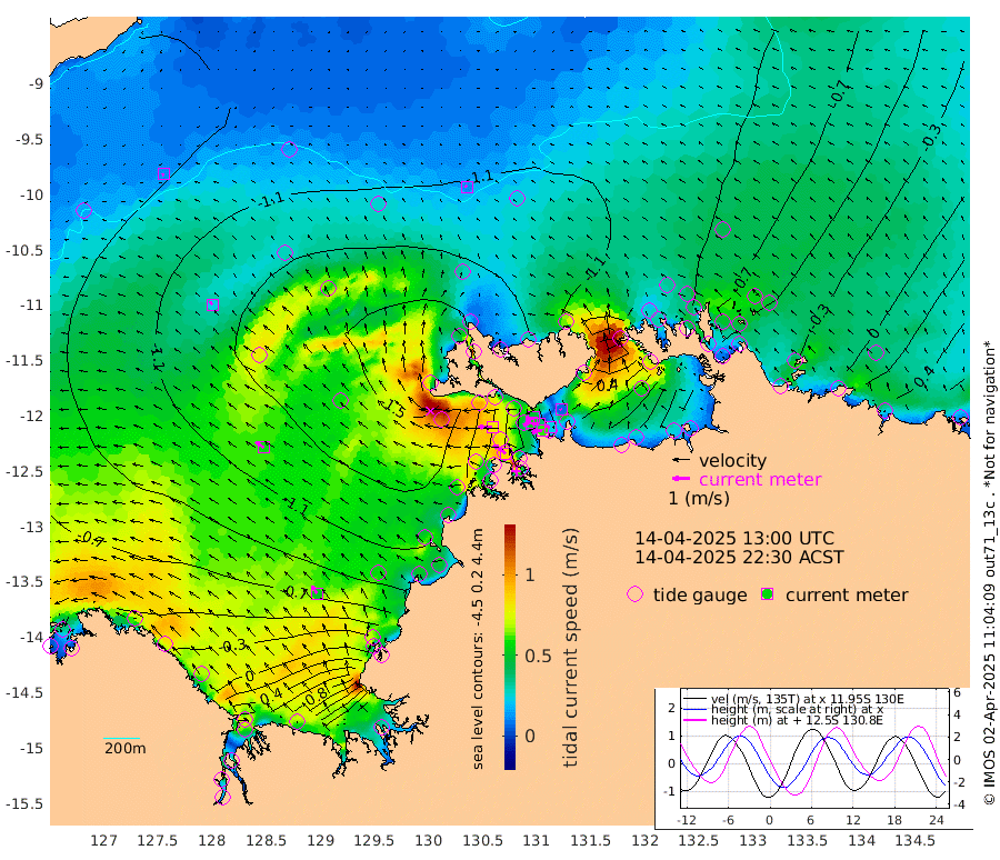 61cm/s -103T +4cm/s rms + 6cm/s 51T. Darwin_C1 52m 23cm/s -84T +4cm/s rms + 7cm/s -161T. Darwin_CW1 22m 51cm/s -108T +4cm/s rms + 8cm/s 61T. Darwin_CW2 34m 7cm/s -41T +3cm/s rms + 9cm/s 98T. Darwin_CW3 22m 37cm/s -97T +5cm/s rms + 7cm/s 88T. Darwin_C3 56m 46cm/s -117T +2cm/s rms + 9cm/s -126T. Darwin_CTbW 22m 11cm/s -41T +9cm/s rms + 2cm/s -110T. NWSLYN 196m 82cm/s -88T +1cm/s rms + 1cm/s -47T. DARBGF 30m 11cm/s -116T +7cm/s rms + 2cm/s -137T. ITFTIS 464m 22cm/s -35T +9cm/s rms + 1cm/s 74T. ITFMHB 146m 51cm/s -32T +4cm/s rms + 1cm/s -134T. ITFJBG 61m 56cm/s -54T +6cm/s rms + 4cm/s 121T. ITFFTB 108m 86cm/s -55T +4cm/s rms + 3cm/s 80T. NRSDAR 19m 1cm Carronade Island 1cm Guy Point 7cm Napier Broome Bay -27cm Lesueur Island -5cm Reveley Island 19cm Rocky Island 52cm Cape Domett 27cm Lacrosse Island 122cm Adolphus Island 211cm Pender Point 249cm Wyndham -112cm The Boxers -127cm Unnamed Shoal -96cm Loxton Shoal 34cm Pelican Island -131cm Calder Shoal -100cm Evans Shoal 197cm Quoin Island -49cm Port Keats -32cm Jones Point 250cm Catfish Island -112cm Cape Scott Offshore -209cm Cape Ford -129cm Anson Bay -116cm Goodrich Bank -125cm Peron Island North -150cm Point Jenny -154cm Native Point -138cm Fish Reef -147cm Tapa Bay -159cm Point Fawcett (Offshore) -131cm Burge Point -148cm Munkunuwa -160cm Beagle A -114cm Parsons Bank -136cm Fenton Patches -92cm Lynedoch Bank -101cm Hancox Shoal Area -128cm Nightcliff -106cm Darwin -130cm Charles Point Patches -21cm Glyde Point 76cm Chambers Bay 112cm Point Stuart 14cm Cape Hotham 61cm Christine Reef 136cm West Alligator Head 180cm East Field Island 49cm Two Hills Bay -146cm Newby Shoal 35cm Camp Point -138cm Medina Inlet South -155cm South Barlow Point -151cm St. Asaph Bay -124cm Cape Van Dieman -123cm Snake Bay -114cm Cache Point -81cm Echo Shoal -95cm Point Jahleel (Off) -54cm Cape Don -82cm Port Essington -89cm Smith Point - West -80cm NW Peacock Island -90cm North Of Jones Shoal -30cm Peacock Island -51cm Point David -83cm D'urville Point -67cm Money Shoal -44cm Copeland Island -55cm Cape Cockburn -51cm One Tree Point -44cm Hogmany Shoal -51cm New Year Island - West -46cm Grant Island -19cm Aurari Bay 12cm Cuthbert Point -24cm North Goulburn Island 26cm Paxie Shoal 47cm Entrance Island 94cm Yabooma Island