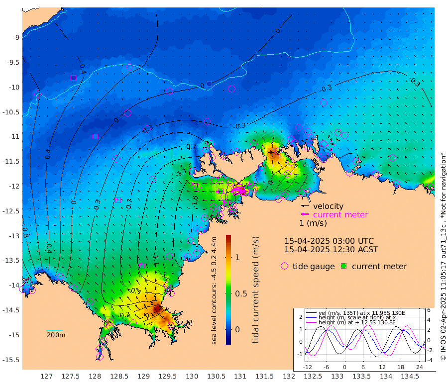 130cm/s -103T +4cm/s rms + 6cm/s 51T. Darwin_C1 52m 87cm/s -89T +4cm/s rms + 7cm/s -161T. Darwin_CW1 22m 103cm/s -109T +4cm/s rms + 8cm/s 61T. Darwin_CW2 34m 48cm/s -122T +3cm/s rms + 9cm/s 98T. Darwin_CW3 22m 118cm/s -92T +5cm/s rms + 7cm/s 88T. Darwin_C3 56m 79cm/s -115T +2cm/s rms + 9cm/s -126T. Darwin_CTbW 22m 1cm/s 141T +9cm/s rms + 2cm/s -110T. NWSLYN 196m 59cm/s -92T +1cm/s rms + 1cm/s -47T. DARBGF 30m 0cm/s -5T +7cm/s rms + 2cm/s -137T. ITFTIS 464m 8cm/s 10T +9cm/s rms + 1cm/s 74T. ITFMHB 146m 37cm/s -18T +4cm/s rms + 1cm/s -134T. ITFJBG 61m 24cm/s -32T +6cm/s rms + 4cm/s 121T. ITFFTB 108m 51cm/s -64T +4cm/s rms + 3cm/s 80T. NRSDAR 19m 158cm Carronade Island 161cm Guy Point 162cm Napier Broome Bay 70cm Lesueur Island -23cm Reveley Island -6cm Rocky Island -44cm Cape Domett -30cm Lacrosse Island -14cm Adolphus Island 92cm Pender Point 143cm Wyndham 0cm The Boxers -27cm Unnamed Shoal 44cm Loxton Shoal -86cm Pelican Island -1cm Calder Shoal 20cm Evans Shoal -1cm Quoin Island -127cm Port Keats -124cm Jones Point 101cm Catfish Island -120cm Cape Scott Offshore -152cm Cape Ford -154cm Anson Bay -9cm Goodrich Bank -128cm Peron Island North -141cm Point Jenny -142cm Native Point -144cm Fish Reef -159cm Tapa Bay -79cm Point Fawcett (Offshore) -160cm Burge Point -168cm Munkunuwa -120cm Beagle A -166cm Parsons Bank -154cm Fenton Patches 7cm Lynedoch Bank -151cm Hancox Shoal Area -165cm Nightcliff -169cm Darwin -161cm Charles Point Patches -76cm Glyde Point 5cm Chambers Bay 32cm Point Stuart -36cm Cape Hotham 6cm Christine Reef 43cm West Alligator Head 82cm East Field Island 2cm Two Hills Bay -54cm Newby Shoal -8cm Camp Point -158cm Medina Inlet South -83cm South Barlow Point -52cm St. Asaph Bay -17cm Cape Van Dieman -23cm Snake Bay -8cm Cache Point 73cm Echo Shoal -15cm Point Jahleel (Off) -31cm Cape Don -26cm Port Essington -28cm Smith Point - West -22cm NW Peacock Island -11cm North Of Jones Shoal -6cm Peacock Island -30cm Point David -31cm D'urville Point -15cm Money Shoal -31cm Copeland Island -34cm Cape Cockburn -26cm One Tree Point -20cm Hogmany Shoal -22cm New Year Island - West -27cm Grant Island -33cm Aurari Bay -30cm Cuthbert Point -31cm North Goulburn Island -26cm Paxie Shoal -31cm Entrance Island -25cm Yabooma Island