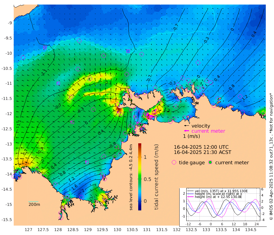119cm/s 79T +4cm/s rms + 6cm/s 51T. Darwin_C1 52m 89cm/s 93T +4cm/s rms + 7cm/s -161T. Darwin_CW1 22m 57cm/s 70T +4cm/s rms + 8cm/s 61T. Darwin_CW2 34m 84cm/s 43T +3cm/s rms + 9cm/s 98T. Darwin_CW3 22m 105cm/s 90T +5cm/s rms + 7cm/s 88T. Darwin_C3 56m 56cm/s 66T +2cm/s rms + 9cm/s -126T. Darwin_CTbW 22m 11cm/s -23T +9cm/s rms + 2cm/s -110T. NWSLYN 196m 34cm/s -77T +1cm/s rms + 1cm/s -47T. DARBGF 30m 12cm/s -98T +7cm/s rms + 2cm/s -137T. ITFTIS 464m 21cm/s -42T +9cm/s rms + 1cm/s 74T. ITFMHB 146m 28cm/s -55T +4cm/s rms + 1cm/s -134T. ITFJBG 61m 43cm/s -61T +6cm/s rms + 4cm/s 121T. ITFFTB 108m 47cm/s -48T +4cm/s rms + 3cm/s 80T. NRSDAR 19m -85cm Carronade Island -86cm Guy Point -81cm Napier Broome Bay -6cm Lesueur Island 89cm Reveley Island 34cm Rocky Island 182cm Cape Domett 151cm Lacrosse Island 230cm Adolphus Island 219cm Pender Point 226cm Wyndham -71cm The Boxers -48cm Unnamed Shoal -108cm Loxton Shoal 195cm Pelican Island -92cm Calder Shoal -95cm Evans Shoal 320cm Quoin Island 147cm Port Keats 147cm Jones Point 294cm Catfish Island 63cm Cape Scott Offshore -53cm Cape Ford 78cm Anson Bay -84cm Goodrich Bank 53cm Peron Island North 26cm Point Jenny 23cm Native Point 45cm Fish Reef 54cm Tapa Bay -46cm Point Fawcett (Offshore) 72cm Burge Point 45cm Munkunuwa -3cm Beagle A 93cm Parsons Bank 60cm Fenton Patches -73cm Lynedoch Bank 99cm Hancox Shoal Area 94cm Nightcliff 116cm Darwin 77cm Charles Point Patches 114cm Glyde Point 142cm Chambers Bay 158cm Point Stuart 117cm Cape Hotham 122cm Christine Reef 177cm West Alligator Head 189cm East Field Island 116cm Two Hills Bay -39cm Newby Shoal 106cm Camp Point 60cm Medina Inlet South -46cm South Barlow Point -73cm St. Asaph Bay -85cm Cape Van Dieman -71cm Snake Bay -77cm Cache Point -120cm Echo Shoal -47cm Point Jahleel (Off) 19cm Cape Don -26cm Port Essington -31cm Smith Point - West -25cm NW Peacock Island -43cm North Of Jones Shoal -11cm Peacock Island 22cm Point David -20cm D'urville Point -17cm Money Shoal 29cm Copeland Island 37cm Cape Cockburn 19cm One Tree Point 30cm Hogmany Shoal 20cm New Year Island - West 26cm Grant Island 66cm Aurari Bay 90cm Cuthbert Point 57cm North Goulburn Island 112cm Paxie Shoal 131cm Entrance Island 181cm Yabooma Island