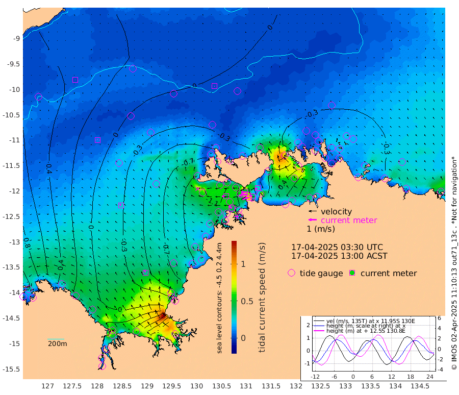 87cm/s -103T +4cm/s rms + 6cm/s 51T. Darwin_C1 52m 37cm/s -87T +4cm/s rms + 7cm/s -161T. Darwin_CW1 22m 70cm/s -110T +4cm/s rms + 8cm/s 61T. Darwin_CW2 34m 27cm/s -110T +3cm/s rms + 9cm/s 98T. Darwin_CW3 22m 67cm/s -93T +5cm/s rms + 7cm/s 88T. Darwin_C3 56m 50cm/s -117T +2cm/s rms + 9cm/s -126T. Darwin_CTbW 22m 1cm/s 96T +9cm/s rms + 2cm/s -110T. NWSLYN 196m 49cm/s -90T +1cm/s rms + 1cm/s -47T. DARBGF 30m 2cm/s -34T +7cm/s rms + 2cm/s -137T. ITFTIS 464m 8cm/s 2T +9cm/s rms + 1cm/s 74T. ITFMHB 146m 35cm/s -20T +4cm/s rms + 1cm/s -134T. ITFJBG 61m 25cm/s -36T +6cm/s rms + 4cm/s 121T. ITFFTB 108m 44cm/s -62T +4cm/s rms + 3cm/s 80T. NRSDAR 19m 157cm Carronade Island 160cm Guy Point 163cm Napier Broome Bay 97cm Lesueur Island 23cm Reveley Island 26cm Rocky Island 29cm Cape Domett 37cm Lacrosse Island 63cm Adolphus Island 156cm Pender Point 205cm Wyndham 15cm The Boxers -13cm Unnamed Shoal 39cm Loxton Shoal -4cm Pelican Island 5cm Calder Shoal 17cm Evans Shoal 96cm Quoin Island -55cm Port Keats -52cm Jones Point 223cm Catfish Island -63cm Cape Scott Offshore -117cm Cape Ford -90cm Anson Bay -8cm Goodrich Bank -78cm Peron Island North -91cm Point Jenny -93cm Native Point -90cm Fish Reef -101cm Tapa Bay -51cm Point Fawcett (Offshore) -106cm Burge Point -121cm Munkunuwa -78cm Beagle A -114cm Parsons Bank -98cm Fenton Patches 6cm Lynedoch Bank -94cm Hancox Shoal Area -105cm Nightcliff -104cm Darwin -98cm Charles Point Patches -24cm Glyde Point 55cm Chambers Bay 76cm Point Stuart 7cm Cape Hotham 47cm Christine Reef 91cm West Alligator Head 129cm East Field Island 40cm Two Hills Bay -27cm Newby Shoal 32cm Camp Point -103cm Medina Inlet South -64cm South Barlow Point -39cm St. Asaph Bay -15cm Cape Van Dieman -21cm Snake Bay -4cm Cache Point 67cm Echo Shoal -7cm Point Jahleel (Off) -10cm Cape Don -17cm Port Essington -20cm Smith Point - West -17cm NW Peacock Island -7cm North Of Jones Shoal -4cm Peacock Island -23cm Point David -24cm D'urville Point -10cm Money Shoal -23cm Copeland Island -25cm Cape Cockburn -18cm One Tree Point -9cm Hogmany Shoal -13cm New Year Island - West -18cm Grant Island -17cm Aurari Bay -11cm Cuthbert Point -18cm North Goulburn Island -3cm Paxie Shoal -9cm Entrance Island -1cm Yabooma Island