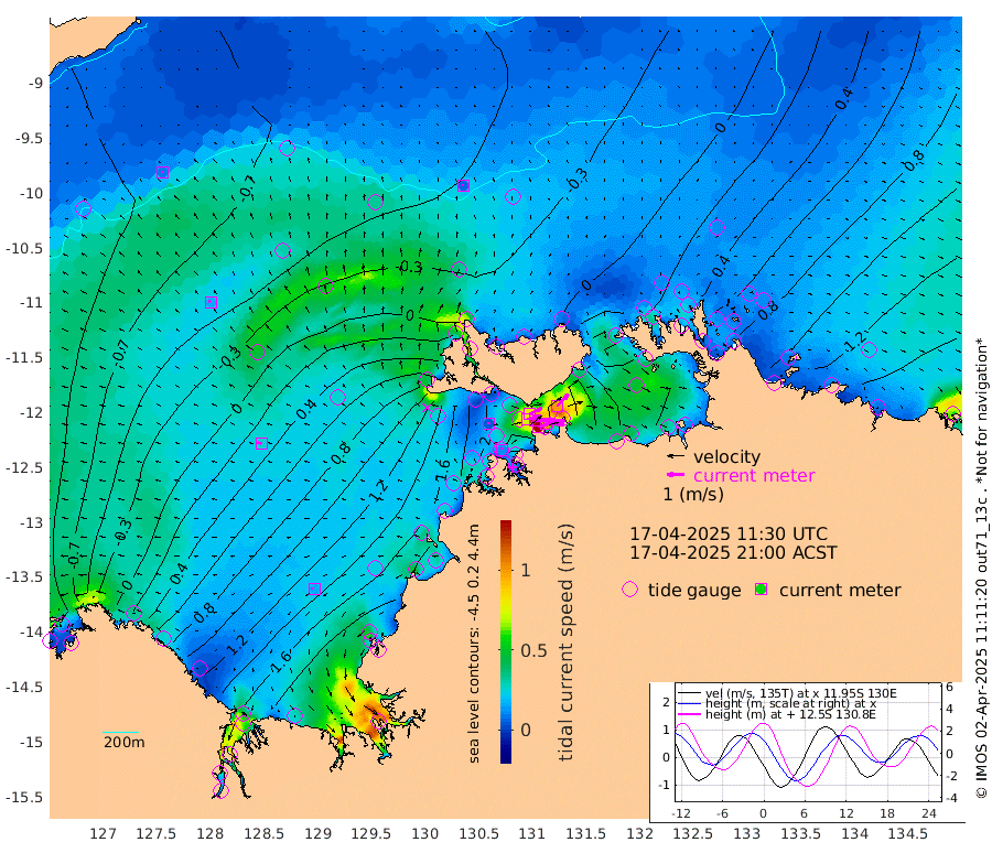 159cm/s 78T +4cm/s rms + 6cm/s 51T. Darwin_C1 52m 103cm/s 91T +4cm/s rms + 7cm/s -161T. Darwin_CW1 22m 73cm/s 74T +4cm/s rms + 8cm/s 61T. Darwin_CW2 34m 98cm/s 43T +3cm/s rms + 9cm/s 98T. Darwin_CW3 22m 121cm/s 90T +5cm/s rms + 7cm/s 88T. Darwin_C3 56m 80cm/s 65T +2cm/s rms + 9cm/s -126T. Darwin_CTbW 22m 7cm/s -6T +9cm/s rms + 2cm/s -110T. NWSLYN 196m 6cm/s 2T +1cm/s rms + 1cm/s -47T. DARBGF 30m 9cm/s -79T +7cm/s rms + 2cm/s -137T. ITFTIS 464m 15cm/s -40T +9cm/s rms + 1cm/s 74T. ITFMHB 146m 15cm/s -87T +4cm/s rms + 1cm/s -134T. ITFJBG 61m 25cm/s -67T +6cm/s rms + 4cm/s 121T. ITFFTB 108m 11cm/s 5T +4cm/s rms + 3cm/s 80T. NRSDAR 19m -101cm Carronade Island -102cm Guy Point -100cm Napier Broome Bay 0cm Lesueur Island 99cm Reveley Island 23cm Rocky Island 173cm Cape Domett 148cm Lacrosse Island 193cm Adolphus Island 143cm Pender Point 130cm Wyndham -31cm The Boxers 8cm Unnamed Shoal -78cm Loxton Shoal 197cm Pelican Island -46cm Calder Shoal -61cm Evans Shoal 251cm Quoin Island 181cm Port Keats 176cm Jones Point 169cm Catfish Island 114cm Cape Scott Offshore 49cm Cape Ford 139cm Anson Bay -39cm Goodrich Bank 112cm Peron Island North 95cm Point Jenny 94cm Native Point 107cm Fish Reef 125cm Tapa Bay 17cm Point Fawcett (Offshore) 139cm Burge Point 117cm Munkunuwa 65cm Beagle A 157cm Parsons Bank 126cm Fenton Patches -38cm Lynedoch Bank 156cm Hancox Shoal Area 159cm Nightcliff 176cm Darwin 143cm Charles Point Patches 134cm Glyde Point 117cm Chambers Bay 120cm Point Stuart 121cm Cape Hotham 104cm Christine Reef 129cm West Alligator Head 121cm East Field Island 104cm Two Hills Bay 20cm Newby Shoal 101cm Camp Point 126cm Medina Inlet South 18cm South Barlow Point -15cm St. Asaph Bay -36cm Cape Van Dieman -20cm Snake Bay -34cm Cache Point -103cm Echo Shoal -8cm Point Jahleel (Off) 46cm Cape Don 11cm Port Essington 9cm Smith Point - West 13cm NW Peacock Island -7cm North Of Jones Shoal 1cm Peacock Island 57cm Point David 21cm D'urville Point 16cm Money Shoal 61cm Copeland Island 75cm Cape Cockburn 50cm One Tree Point 67cm Hogmany Shoal 52cm New Year Island - West 60cm Grant Island 88cm Aurari Bay 105cm Cuthbert Point 83cm North Goulburn Island 121cm Paxie Shoal 136cm Entrance Island 168cm Yabooma Island
