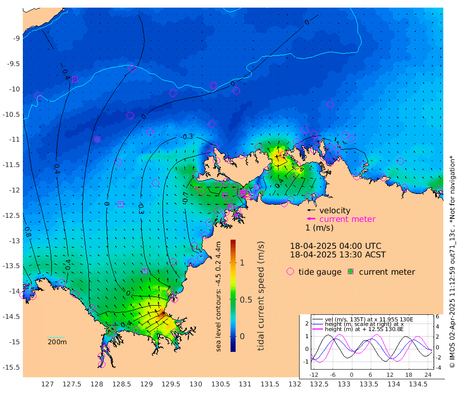 71cm/s -103T +4cm/s rms + 6cm/s 51T. Darwin_C1 52m 25cm/s -86T +4cm/s rms + 7cm/s -161T. Darwin_CW1 22m 55cm/s -111T +4cm/s rms + 8cm/s 61T. Darwin_CW2 34m 20cm/s -105T +3cm/s rms + 9cm/s 98T. Darwin_CW3 22m 52cm/s -94T +5cm/s rms + 7cm/s 88T. Darwin_C3 56m 38cm/s -118T +2cm/s rms + 9cm/s -126T. Darwin_CTbW 22m 2cm/s 110T +9cm/s rms + 2cm/s -110T. NWSLYN 196m 40cm/s -90T +1cm/s rms + 1cm/s -47T. DARBGF 30m 2cm/s -5T +7cm/s rms + 2cm/s -137T. ITFTIS 464m 7cm/s 8T +9cm/s rms + 1cm/s 74T. ITFMHB 146m 30cm/s -19T +4cm/s rms + 1cm/s -134T. ITFJBG 61m 21cm/s -33T +6cm/s rms + 4cm/s 121T. ITFFTB 108m 36cm/s -62T +4cm/s rms + 3cm/s 80T. NRSDAR 19m 152cm Carronade Island 155cm Guy Point 160cm Napier Broome Bay 102cm Lesueur Island 32cm Reveley Island 36cm Rocky Island 43cm Cape Domett 50cm Lacrosse Island 74cm Adolphus Island 156cm Pender Point 200cm Wyndham 27cm The Boxers -2cm Unnamed Shoal 43cm Loxton Shoal 14cm Pelican Island 14cm Calder Shoal 21cm Evans Shoal 105cm Quoin Island -30cm Port Keats -30cm Jones Point 231cm Catfish Island -40cm Cape Scott Offshore -92cm Cape Ford -62cm Anson Bay 0cm Goodrich Bank -57cm Peron Island North -64cm Point Jenny -66cm Native Point -64cm Fish Reef -73cm Tapa Bay -33cm Point Fawcett (Offshore) -79cm Burge Point -96cm Munkunuwa -53cm Beagle A -90cm Parsons Bank -70cm Fenton Patches 11cm Lynedoch Bank -70cm Hancox Shoal Area -77cm Nightcliff -77cm Darwin -70cm Charles Point Patches -9cm Glyde Point 62cm Chambers Bay 76cm Point Stuart 15cm Cape Hotham 53cm Christine Reef 90cm West Alligator Head 125cm East Field Island 43cm Two Hills Bay -8cm Newby Shoal 39cm Camp Point -76cm Medina Inlet South -48cm South Barlow Point -25cm St. Asaph Bay -8cm Cape Van Dieman -13cm Snake Bay 3cm Cache Point 68cm Echo Shoal -1cm Point Jahleel (Off) -2cm Cape Don -10cm Port Essington -13cm Smith Point - West -11cm NW Peacock Island -1cm North Of Jones Shoal -2cm Peacock Island -20cm Point David -18cm D'urville Point -5cm Money Shoal -20cm Copeland Island -22cm Cape Cockburn -14cm One Tree Point -8cm Hogmany Shoal -8cm New Year Island - West -15cm Grant Island -14cm Aurari Bay -8cm Cuthbert Point -15cm North Goulburn Island -1cm Paxie Shoal -8cm Entrance Island -2cm Yabooma Island