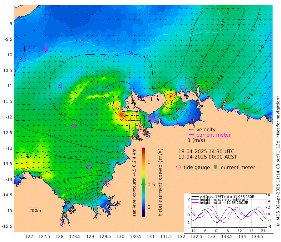 19cm/s -108T +4cm/s rms + 6cm/s 51T. Darwin_C1 52m 19cm/s -84T +4cm/s rms + 7cm/s -161T. Darwin_CW1 22m 33cm/s -102T +4cm/s rms + 8cm/s 61T. Darwin_CW2 34m 14cm/s 34T +3cm/s rms + 9cm/s 98T. Darwin_CW3 22m 38cm/s -94T +5cm/s rms + 7cm/s 88T. Darwin_C3 56m 11cm/s -116T +2cm/s rms + 9cm/s -126T. Darwin_CTbW 22m 10cm/s -40T +9cm/s rms + 2cm/s -110T. NWSLYN 196m 64cm/s -88T +1cm/s rms + 1cm/s -47T. DARBGF 30m 11cm/s -120T +7cm/s rms + 2cm/s -137T. ITFTIS 464m 19cm/s -38T +9cm/s rms + 1cm/s 74T. ITFMHB 146m 34cm/s -32T +4cm/s rms + 1cm/s -134T. ITFJBG 61m 42cm/s -57T +6cm/s rms + 4cm/s 121T. ITFFTB 108m 72cm/s -56T +4cm/s rms + 3cm/s 80T. NRSDAR 19m -23cm Carronade Island -24cm Guy Point -23cm Napier Broome Bay -35cm Lesueur Island -17cm Reveley Island -34cm Rocky Island 22cm Cape Domett 14cm Lacrosse Island 78cm Adolphus Island 136cm Pender Point 174cm Wyndham -113cm The Boxers -103cm Unnamed Shoal -109cm Loxton Shoal 20cm Pelican Island -128cm Calder Shoal -106cm Evans Shoal 151cm Quoin Island -50cm Port Keats -37cm Jones Point 236cm Catfish Island -88cm Cape Scott Offshore -252cm Cape Ford -95cm Anson Bay -113cm Goodrich Bank -106cm Peron Island North -130cm Point Jenny -134cm Native Point -123cm Fish Reef -123cm Tapa Bay -141cm Point Fawcett (Offshore) -120cm Burge Point -132cm Munkunuwa -142cm Beagle A -98cm Parsons Bank -119cm Fenton Patches -92cm Lynedoch Bank -79cm Hancox Shoal Area -93cm Nightcliff -93cm Darwin -118cm Charles Point Patches -18cm Glyde Point 74cm Chambers Bay 98cm Point Stuart 18cm Cape Hotham 54cm Christine Reef 118cm West Alligator Head 153cm East Field Island 46cm Two Hills Bay -141cm Newby Shoal 30cm Camp Point -122cm Medina Inlet South -140cm South Barlow Point -138cm St. Asaph Bay -118cm Cape Van Dieman -113cm Snake Bay -108cm Cache Point -90cm Echo Shoal -87cm Point Jahleel (Off) -47cm Cape Don -75cm Port Essington -78cm Smith Point - West -68cm NW Peacock Island -76cm North Of Jones Shoal -24cm Peacock Island -28cm Point David -68cm D'urville Point -55cm Money Shoal -20cm Copeland Island -29cm Cape Cockburn -32cm One Tree Point -26cm Hogmany Shoal -29cm New Year Island - West -27cm Grant Island 12cm Aurari Bay 29cm Cuthbert Point 0cm North Goulburn Island 51cm Paxie Shoal 69cm Entrance Island 123cm Yabooma Island