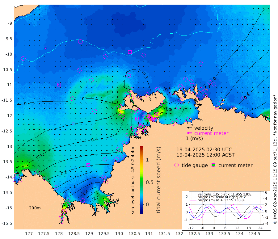 105cm/s 79T +4cm/s rms + 6cm/s 51T. Darwin_C1 52m 72cm/s 92T +4cm/s rms + 7cm/s -161T. Darwin_CW1 22m 39cm/s 69T +4cm/s rms + 8cm/s 61T. Darwin_CW2 34m 64cm/s 48T +3cm/s rms + 9cm/s 98T. Darwin_CW3 22m 64cm/s 91T +5cm/s rms + 7cm/s 88T. Darwin_C3 56m 63cm/s 66T +2cm/s rms + 9cm/s -126T. Darwin_CTbW 22m 3cm/s -12T +9cm/s rms + 2cm/s -110T. NWSLYN 196m 21cm/s -74T +1cm/s rms + 1cm/s -47T. DARBGF 30m 5cm/s -111T +7cm/s rms + 2cm/s -137T. ITFTIS 464m 6cm/s -101T +9cm/s rms + 1cm/s 74T. ITFMHB 146m 19cm/s -44T +4cm/s rms + 1cm/s -134T. ITFJBG 61m 20cm/s -60T +6cm/s rms + 4cm/s 121T. ITFFTB 108m 35cm/s -50T +4cm/s rms + 3cm/s 80T. NRSDAR 19m 78cm Carronade Island 84cm Guy Point 84cm Napier Broome Bay 97cm Lesueur Island 124cm Reveley Island 92cm Rocky Island 183cm Cape Domett 169cm Lacrosse Island 222cm Adolphus Island 239cm Pender Point 262cm Wyndham 21cm The Boxers -4cm Unnamed Shoal -3cm Loxton Shoal 177cm Pelican Island 0cm Calder Shoal -10cm Evans Shoal 278cm Quoin Island 136cm Port Keats 115cm Jones Point 330cm Catfish Island 81cm Cape Scott Offshore -8cm Cape Ford 78cm Anson Bay -17cm Goodrich Bank 58cm Peron Island North 56cm Point Jenny 53cm Native Point 55cm Fish Reef 65cm Tapa Bay 13cm Point Fawcett (Offshore) 66cm Burge Point 38cm Munkunuwa 41cm Beagle A 62cm Parsons Bank 70cm Fenton Patches -13cm Lynedoch Bank 81cm Hancox Shoal Area 86cm Nightcliff 83cm Darwin 69cm Charles Point Patches 98cm Glyde Point 140cm Chambers Bay 142cm Point Stuart 99cm Cape Hotham 133cm Christine Reef 161cm West Alligator Head 178cm East Field Island 108cm Two Hills Bay 42cm Newby Shoal 102cm Camp Point 57cm Medina Inlet South -5cm South Barlow Point -8cm St. Asaph Bay -22cm Cape Van Dieman -22cm Snake Bay -10cm Cache Point 2cm Echo Shoal 2cm Point Jahleel (Off) 36cm Cape Don -2cm Port Essington 1cm Smith Point - West -2cm NW Peacock Island -5cm North Of Jones Shoal -2cm Peacock Island 1cm Point David -2cm D'urville Point -3cm Money Shoal 3cm Copeland Island 8cm Cape Cockburn 5cm One Tree Point 15cm Hogmany Shoal 9cm New Year Island - West 9cm Grant Island 22cm Aurari Bay 40cm Cuthbert Point 21cm North Goulburn Island 48cm Paxie Shoal 53cm Entrance Island 69cm Yabooma Island