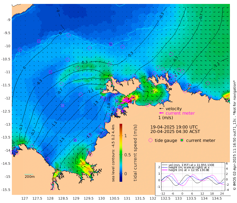 194cm/s -102T +4cm/s rms + 6cm/s 51T. Darwin_C1 52m 125cm/s -90T +4cm/s rms + 7cm/s -161T. Darwin_CW1 22m 76cm/s -106T +4cm/s rms + 8cm/s 61T. Darwin_CW2 34m 95cm/s -133T +3cm/s rms + 9cm/s 98T. Darwin_CW3 22m 119cm/s -90T +5cm/s rms + 7cm/s 88T. Darwin_C3 56m 113cm/s -115T +2cm/s rms + 9cm/s -126T. Darwin_CTbW 22m 5cm/s -97T +9cm/s rms + 2cm/s -110T. NWSLYN 196m 13cm/s -115T +1cm/s rms + 1cm/s -47T. DARBGF 30m 7cm/s 137T +7cm/s rms + 2cm/s -137T. ITFTIS 464m 7cm/s 140T +9cm/s rms + 1cm/s 74T. ITFMHB 146m 9cm/s 99T +4cm/s rms + 1cm/s -134T. ITFJBG 61m 14cm/s 119T +6cm/s rms + 4cm/s 121T. ITFFTB 108m 9cm/s -148T +4cm/s rms + 3cm/s 80T. NRSDAR 19m -22cm Carronade Island -28cm Guy Point -30cm Napier Broome Bay -99cm Lesueur Island -158cm Reveley Island -86cm Rocky Island -222cm Cape Domett -199cm Lacrosse Island -235cm Adolphus Island -200cm Pender Point -193cm Wyndham -59cm The Boxers -71cm Unnamed Shoal -11cm Loxton Shoal -233cm Pelican Island -38cm Calder Shoal -14cm Evans Shoal -269cm Quoin Island -225cm Port Keats -203cm Jones Point -219cm Catfish Island -163cm Cape Scott Offshore -147cm Cape Ford -178cm Anson Bay -29cm Goodrich Bank -156cm Peron Island North -156cm Point Jenny -156cm Native Point -154cm Fish Reef -178cm Tapa Bay -86cm Point Fawcett (Offshore) -182cm Burge Point -151cm Munkunuwa -130cm Beagle A -184cm Parsons Bank -175cm Fenton Patches -23cm Lynedoch Bank -190cm Hancox Shoal Area -193cm Nightcliff -206cm Darwin -190cm Charles Point Patches -164cm Glyde Point -142cm Chambers Bay -138cm Point Stuart -142cm Cape Hotham -142cm Christine Reef -147cm West Alligator Head -139cm East Field Island -129cm Two Hills Bay -113cm Newby Shoal -130cm Camp Point -168cm Medina Inlet South -76cm South Barlow Point -53cm St. Asaph Bay -30cm Cape Van Dieman -39cm Snake Bay -36cm Cache Point 14cm Echo Shoal -50cm Point Jahleel (Off) -89cm Cape Don -57cm Port Essington -59cm Smith Point - West -59cm NW Peacock Island -41cm North Of Jones Shoal -16cm Peacock Island -78cm Point David -63cm D'urville Point -55cm Money Shoal -77cm Copeland Island -98cm Cape Cockburn -74cm One Tree Point -104cm Hogmany Shoal -80cm New Year Island - West -86cm Grant Island -91cm Aurari Bay -113cm Cuthbert Point -96cm North Goulburn Island -119cm Paxie Shoal -123cm Entrance Island -127cm Yabooma Island