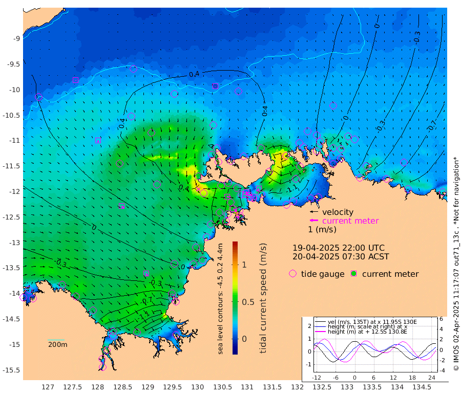 12cm/s 83T +4cm/s rms + 6cm/s 51T. Darwin_C1 52m 8cm/s 97T +4cm/s rms + 7cm/s -161T. Darwin_CW1 22m 31cm/s 72T +4cm/s rms + 8cm/s 61T. Darwin_CW2 34m 31cm/s -150T +3cm/s rms + 9cm/s 98T. Darwin_CW3 22m 25cm/s 83T +5cm/s rms + 7cm/s 88T. Darwin_C3 56m 9cm/s 62T +2cm/s rms + 9cm/s -126T. Darwin_CTbW 22m 3cm/s -153T +9cm/s rms + 2cm/s -110T. NWSLYN 196m 49cm/s 92T +1cm/s rms + 1cm/s -47T. DARBGF 30m 7cm/s 131T +7cm/s rms + 2cm/s -137T. ITFTIS 464m 20cm/s 168T +9cm/s rms + 1cm/s 74T. ITFMHB 146m 34cm/s 152T +4cm/s rms + 1cm/s -134T. ITFJBG 61m 34cm/s 137T +6cm/s rms + 4cm/s 121T. ITFFTB 108m 52cm/s 123T +4cm/s rms + 3cm/s 80T. NRSDAR 19m -75cm Carronade Island -76cm Guy Point -82cm Napier Broome Bay -72cm Lesueur Island -45cm Reveley Island 0cm Rocky Island -88cm Cape Domett -83cm Lacrosse Island -128cm Adolphus Island -189cm Pender Point -229cm Wyndham 16cm The Boxers 10cm Unnamed Shoal 27cm Loxton Shoal -79cm Pelican Island 39cm Calder Shoal 36cm Evans Shoal -183cm Quoin Island -22cm Port Keats -29cm Jones Point -282cm Catfish Island 15cm Cape Scott Offshore 118cm Cape Ford 21cm Anson Bay 39cm Goodrich Bank 36cm Peron Island North 46cm Point Jenny 48cm Native Point 46cm Fish Reef 40cm Tapa Bay 55cm Point Fawcett (Offshore) 44cm Burge Point 72cm Munkunuwa 53cm Beagle A 40cm Parsons Bank 39cm Fenton Patches 25cm Lynedoch Bank 17cm Hancox Shoal Area 26cm Nightcliff 22cm Darwin 31cm Charles Point Patches -38cm Glyde Point -111cm Chambers Bay -125cm Point Stuart -59cm Cape Hotham -91cm Christine Reef -141cm West Alligator Head -175cm East Field Island -81cm Two Hills Bay 36cm Newby Shoal -80cm Camp Point 49cm Medina Inlet South 66cm South Barlow Point 59cm St. Asaph Bay 44cm Cape Van Dieman 41cm Snake Bay 33cm Cache Point 11cm Echo Shoal 22cm Point Jahleel (Off) -7cm Cape Don 16cm Port Essington 20cm Smith Point - West 13cm NW Peacock Island 18cm North Of Jones Shoal 5cm Peacock Island -16cm Point David 14cm D'urville Point -1cm Money Shoal -19cm Copeland Island -20cm Cape Cockburn -12cm One Tree Point -33cm Hogmany Shoal -22cm New Year Island - West -19cm Grant Island -44cm Aurari Bay -60cm Cuthbert Point -37cm North Goulburn Island -81cm Paxie Shoal -86cm Entrance Island -119cm Yabooma Island