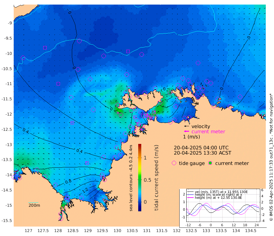 47cm/s 78T +4cm/s rms + 6cm/s 51T. Darwin_C1 52m 37cm/s 91T +4cm/s rms + 7cm/s -161T. Darwin_CW1 22m 12cm/s 71T +4cm/s rms + 8cm/s 61T. Darwin_CW2 34m 36cm/s 45T +3cm/s rms + 9cm/s 98T. Darwin_CW3 22m 22cm/s 94T +5cm/s rms + 7cm/s 88T. Darwin_C3 56m 33cm/s 67T +2cm/s rms + 9cm/s -126T. Darwin_CTbW 22m 1cm/s 52T +9cm/s rms + 2cm/s -110T. NWSLYN 196m 18cm/s -79T +1cm/s rms + 1cm/s -47T. DARBGF 30m 2cm/s -57T +7cm/s rms + 2cm/s -137T. ITFTIS 464m 2cm/s -54T +9cm/s rms + 1cm/s 74T. ITFMHB 146m 16cm/s -30T +4cm/s rms + 1cm/s -134T. ITFJBG 61m 14cm/s -46T +6cm/s rms + 4cm/s 121T. ITFFTB 108m 26cm/s -52T +4cm/s rms + 3cm/s 80T. NRSDAR 19m 105cm Carronade Island 109cm Guy Point 115cm Napier Broome Bay 100cm Lesueur Island 90cm Reveley Island 76cm Rocky Island 134cm Cape Domett 128cm Lacrosse Island 163cm Adolphus Island 196cm Pender Point 223cm Wyndham 33cm The Boxers 7cm Unnamed Shoal 17cm Loxton Shoal 119cm Pelican Island 15cm Calder Shoal 4cm Evans Shoal 202cm Quoin Island 89cm Port Keats 72cm Jones Point 278cm Catfish Island 51cm Cape Scott Offshore -20cm Cape Ford 45cm Anson Bay -6cm Goodrich Bank 29cm Peron Island North 34cm Point Jenny 31cm Native Point 31cm Fish Reef 34cm Tapa Bay 10cm Point Fawcett (Offshore) 36cm Burge Point 7cm Munkunuwa 29cm Beagle A 22cm Parsons Bank 41cm Fenton Patches 0cm Lynedoch Bank 40cm Hancox Shoal Area 48cm Nightcliff 41cm Darwin 36cm Charles Point Patches 66cm Glyde Point 111cm Chambers Bay 110cm Point Stuart 69cm Cape Hotham 105cm Christine Reef 125cm West Alligator Head 147cm East Field Island 81cm Two Hills Bay 43cm Newby Shoal 81cm Camp Point 27cm Medina Inlet South -7cm South Barlow Point -2cm St. Asaph Bay -10cm Cape Van Dieman -13cm Snake Bay 0cm Cache Point 27cm Echo Shoal 5cm Point Jahleel (Off) 27cm Cape Don -2cm Port Essington -1cm Smith Point - West -3cm NW Peacock Island 0cm North Of Jones Shoal -1cm Peacock Island -8cm Point David -6cm D'urville Point -1cm Money Shoal -7cm Copeland Island -4cm Cape Cockburn -2cm One Tree Point 0cm Hogmany Shoal 3cm New Year Island - West -1cm Grant Island 7cm Aurari Bay 19cm Cuthbert Point 6cm North Goulburn Island 28cm Paxie Shoal 27cm Entrance Island 36cm Yabooma Island