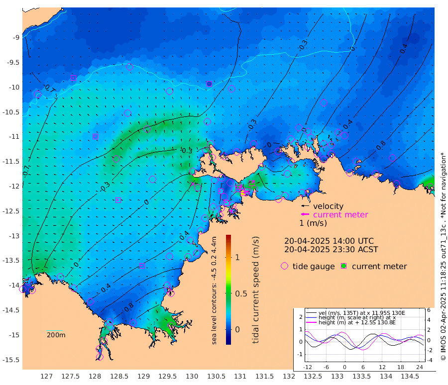 81cm/s 78T +4cm/s rms + 6cm/s 51T. Darwin_C1 52m 27cm/s 92T +4cm/s rms + 7cm/s -161T. Darwin_CW1 22m 12cm/s 71T +4cm/s rms + 8cm/s 61T. Darwin_CW2 34m 54cm/s 43T +3cm/s rms + 9cm/s 98T. Darwin_CW3 22m 22cm/s 93T +5cm/s rms + 7cm/s 88T. Darwin_C3 56m 42cm/s 64T +2cm/s rms + 9cm/s -126T. Darwin_CTbW 22m 3cm/s -21T +9cm/s rms + 2cm/s -110T. NWSLYN 196m 19cm/s -85T +1cm/s rms + 1cm/s -47T. DARBGF 30m 7cm/s -100T +7cm/s rms + 2cm/s -137T. ITFTIS 464m 12cm/s -40T +9cm/s rms + 1cm/s 74T. ITFMHB 146m 13cm/s -52T +4cm/s rms + 1cm/s -134T. ITFJBG 61m 21cm/s -65T +6cm/s rms + 4cm/s 121T. ITFFTB 108m 22cm/s -48T +4cm/s rms + 3cm/s 80T. NRSDAR 19m -49cm Carronade Island -48cm Guy Point -52cm Napier Broome Bay -12cm Lesueur Island 30cm Reveley Island -26cm Rocky Island 60cm Cape Domett 50cm Lacrosse Island 82cm Adolphus Island 74cm Pender Point 81cm Wyndham -49cm The Boxers -18cm Unnamed Shoal -73cm Loxton Shoal 79cm Pelican Island -62cm Calder Shoal -60cm Evans Shoal 113cm Quoin Island 48cm Port Keats 54cm Jones Point 120cm Catfish Island 16cm Cape Scott Offshore -60cm Cape Ford 25cm Anson Bay -47cm Goodrich Bank 10cm Peron Island North 2cm Point Jenny 1cm Native Point 0cm Fish Reef 17cm Tapa Bay -37cm Point Fawcett (Offshore) 14cm Burge Point 3cm Munkunuwa -18cm Beagle A 36cm Parsons Bank 12cm Fenton Patches -43cm Lynedoch Bank 45cm Hancox Shoal Area 36cm Nightcliff 37cm Darwin 17cm Charles Point Patches 50cm Glyde Point 74cm Chambers Bay 82cm Point Stuart 58cm Cape Hotham 65cm Christine Reef 90cm West Alligator Head 95cm East Field Island 61cm Two Hills Bay -40cm Newby Shoal 52cm Camp Point 7cm Medina Inlet South -36cm South Barlow Point -49cm St. Asaph Bay -46cm Cape Van Dieman -38cm Snake Bay -41cm Cache Point -77cm Echo Shoal -23cm Point Jahleel (Off) 11cm Cape Don -9cm Port Essington -7cm Smith Point - West 0cm NW Peacock Island -20cm North Of Jones Shoal -4cm Peacock Island 41cm Point David 5cm D'urville Point 3cm Money Shoal 45cm Copeland Island 49cm Cape Cockburn 29cm One Tree Point 57cm Hogmany Shoal 35cm New Year Island - West 41cm Grant Island 67cm Aurari Bay 84cm Cuthbert Point 61cm North Goulburn Island 95cm Paxie Shoal 113cm Entrance Island 144cm Yabooma Island