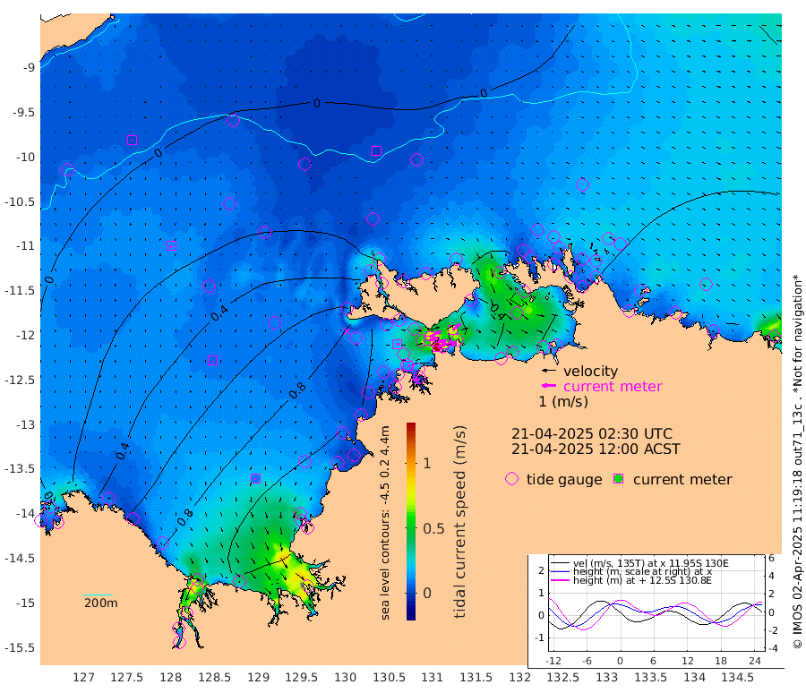 143cm/s 78T +4cm/s rms + 6cm/s 51T. Darwin_C1 52m 80cm/s 93T +4cm/s rms + 7cm/s -161T. Darwin_CW1 22m 58cm/s 72T +4cm/s rms + 8cm/s 61T. Darwin_CW2 34m 70cm/s 49T +3cm/s rms + 9cm/s 98T. Darwin_CW3 22m 80cm/s 90T +5cm/s rms + 7cm/s 88T. Darwin_C3 56m 82cm/s 66T +2cm/s rms + 9cm/s -126T. Darwin_CTbW 22m 0cm/s -56T +9cm/s rms + 2cm/s -110T. NWSLYN 196m 19cm/s 79T +1cm/s rms + 1cm/s -47T. DARBGF 30m 3cm/s -156T +7cm/s rms + 2cm/s -137T. ITFTIS 464m 12cm/s -168T +9cm/s rms + 1cm/s 74T. ITFMHB 146m 8cm/s -165T +4cm/s rms + 1cm/s -134T. ITFJBG 61m 8cm/s -180T +6cm/s rms + 4cm/s 121T. ITFFTB 108m 13cm/s 98T +4cm/s rms + 3cm/s 80T. NRSDAR 19m 28cm Carronade Island 31cm Guy Point 34cm Napier Broome Bay 52cm Lesueur Island 95cm Reveley Island 88cm Rocky Island 127cm Cape Domett 116cm Lacrosse Island 129cm Adolphus Island 100cm Pender Point 95cm Wyndham 38cm The Boxers 25cm Unnamed Shoal 8cm Loxton Shoal 126cm Pelican Island 29cm Calder Shoal 10cm Evans Shoal 139cm Quoin Island 135cm Port Keats 108cm Jones Point 131cm Catfish Island 102cm Cape Scott Offshore 72cm Cape Ford 109cm Anson Bay 11cm Goodrich Bank 95cm Peron Island North 107cm Point Jenny 106cm Native Point 101cm Fish Reef 111cm Tapa Bay 58cm Point Fawcett (Offshore) 117cm Burge Point 102cm Munkunuwa 95cm Beagle A 110cm Parsons Bank 116cm Fenton Patches 6cm Lynedoch Bank 111cm Hancox Shoal Area 127cm Nightcliff 115cm Darwin 104cm Charles Point Patches 88cm Glyde Point 77cm Chambers Bay 68cm Point Stuart 73cm Cape Hotham 85cm Christine Reef 75cm West Alligator Head 67cm East Field Island 66cm Two Hills Bay 84cm Newby Shoal 61cm Camp Point 105cm Medina Inlet South 49cm South Barlow Point 37cm St. Asaph Bay 12cm Cape Van Dieman 13cm Snake Bay 17cm Cache Point -3cm Echo Shoal 23cm Point Jahleel (Off) 45cm Cape Don 18cm Port Essington 25cm Smith Point - West 19cm NW Peacock Island 14cm North Of Jones Shoal 5cm Peacock Island 11cm Point David 21cm D'urville Point 9cm Money Shoal 12cm Copeland Island 21cm Cape Cockburn 15cm One Tree Point 15cm Hogmany Shoal 16cm New Year Island - West 18cm Grant Island 18cm Aurari Bay 28cm Cuthbert Point 22cm North Goulburn Island 24cm Paxie Shoal 27cm Entrance Island 21cm Yabooma Island
