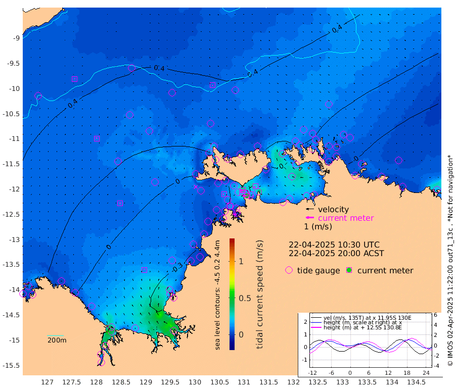 49cm/s -102T +4cm/s rms + 6cm/s 51T. Darwin_C1 52m 15cm/s -86T +4cm/s rms + 7cm/s -161T. Darwin_CW1 22m 21cm/s -112T +4cm/s rms + 8cm/s 61T. Darwin_CW2 34m 24cm/s -132T +3cm/s rms + 9cm/s 98T. Darwin_CW3 22m 16cm/s -91T +5cm/s rms + 7cm/s 88T. Darwin_C3 56m 33cm/s -115T +2cm/s rms + 9cm/s -126T. Darwin_CTbW 22m 6cm/s 130T +9cm/s rms + 2cm/s -110T. NWSLYN 196m 11cm/s -91T +1cm/s rms + 1cm/s -47T. DARBGF 30m 6cm/s 18T +7cm/s rms + 2cm/s -137T. ITFTIS 464m 10cm/s 16T +9cm/s rms + 1cm/s 74T. ITFMHB 146m 12cm/s -9T +4cm/s rms + 1cm/s -134T. ITFJBG 61m 10cm/s -8T +6cm/s rms + 4cm/s 121T. ITFFTB 108m 11cm/s -67T +4cm/s rms + 3cm/s 80T. NRSDAR 19m 26cm Carronade Island 29cm Guy Point 34cm Napier Broome Bay 8cm Lesueur Island -23cm Reveley Island -7cm Rocky Island -29cm Cape Domett -36cm Lacrosse Island -28cm Adolphus Island 1cm Pender Point 1cm Wyndham 25cm The Boxers 15cm Unnamed Shoal 48cm Loxton Shoal -39cm Pelican Island 25cm Calder Shoal 38cm Evans Shoal -31cm Quoin Island -41cm Port Keats -36cm Jones Point -55cm Catfish Island -31cm Cape Scott Offshore 20cm Cape Ford -37cm Anson Bay 33cm Goodrich Bank -24cm Peron Island North -34cm Point Jenny -32cm Native Point -32cm Fish Reef -36cm Tapa Bay 2cm Point Fawcett (Offshore) -38cm Burge Point -32cm Munkunuwa -31cm Beagle A -35cm Parsons Bank -46cm Fenton Patches 36cm Lynedoch Bank -39cm Hancox Shoal Area -56cm Nightcliff -32cm Darwin -18cm Charles Point Patches -28cm Glyde Point -36cm Chambers Bay -31cm Point Stuart -29cm Cape Hotham -34cm Christine Reef -37cm West Alligator Head -35cm East Field Island -23cm Two Hills Bay -3cm Newby Shoal -16cm Camp Point -27cm Medina Inlet South 9cm South Barlow Point 15cm St. Asaph Bay 31cm Cape Van Dieman 31cm Snake Bay 28cm Cache Point 42cm Echo Shoal 19cm Point Jahleel (Off) 5cm Cape Don 25cm Port Essington 17cm Smith Point - West 21cm NW Peacock Island 26cm North Of Jones Shoal 8cm Peacock Island 15cm Point David 18cm D'urville Point 28cm Money Shoal 12cm Copeland Island 15cm Cape Cockburn 18cm One Tree Point 22cm Hogmany Shoal 15cm New Year Island - West 16cm Grant Island -1cm Aurari Bay 2cm Cuthbert Point 6cm North Goulburn Island 3cm Paxie Shoal -14cm Entrance Island -24cm Yabooma Island