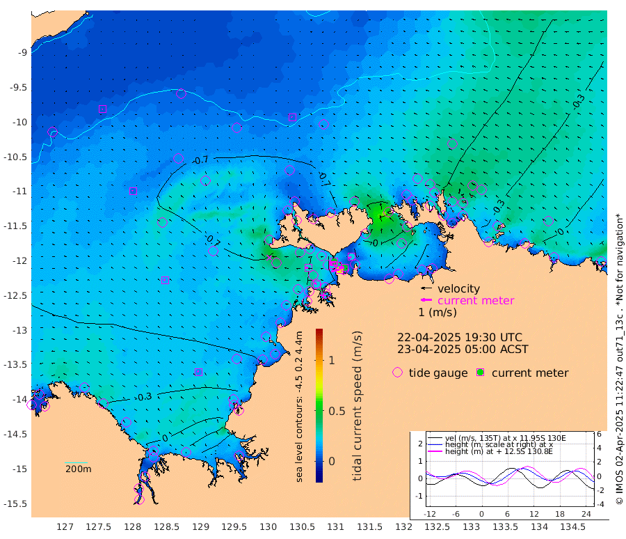 78cm/s -103T +4cm/s rms + 6cm/s 51T. Darwin_C1 52m 47cm/s -90T +4cm/s rms + 7cm/s -161T. Darwin_CW1 22m 24cm/s -104T +4cm/s rms + 8cm/s 61T. Darwin_CW2 34m 24cm/s -116T +3cm/s rms + 9cm/s 98T. Darwin_CW3 22m 33cm/s -91T +5cm/s rms + 7cm/s 88T. Darwin_C3 56m 46cm/s -116T +2cm/s rms + 9cm/s -126T. Darwin_CTbW 22m 8cm/s -36T +9cm/s rms + 2cm/s -110T. NWSLYN 196m 25cm/s -89T +1cm/s rms + 1cm/s -47T. DARBGF 30m 5cm/s -126T +7cm/s rms + 2cm/s -137T. ITFTIS 464m 8cm/s -32T +9cm/s rms + 1cm/s 74T. ITFMHB 146m 11cm/s -39T +4cm/s rms + 1cm/s -134T. ITFJBG 61m 16cm/s -55T +6cm/s rms + 4cm/s 121T. ITFFTB 108m 23cm/s -63T +4cm/s rms + 3cm/s 80T. NRSDAR 19m -37cm Carronade Island -37cm Guy Point -49cm Napier Broome Bay -23cm Lesueur Island -11cm Reveley Island -48cm Rocky Island 4cm Cape Domett 10cm Lacrosse Island 29cm Adolphus Island 40cm Pender Point 56cm Wyndham -68cm The Boxers -62cm Unnamed Shoal -69cm Loxton Shoal 12cm Pelican Island -69cm Calder Shoal -65cm Evans Shoal 62cm Quoin Island -24cm Port Keats -8cm Jones Point 80cm Catfish Island -38cm Cape Scott Offshore -89cm Cape Ford -39cm Anson Bay -64cm Goodrich Bank -50cm Peron Island North -59cm Point Jenny -60cm Native Point -51cm Fish Reef -51cm Tapa Bay -70cm Point Fawcett (Offshore) -50cm Burge Point -57cm Munkunuwa -57cm Beagle A -49cm Parsons Bank -42cm Fenton Patches -58cm Lynedoch Bank -34cm Hancox Shoal Area -34cm Nightcliff -40cm Darwin -50cm Charles Point Patches -12cm Glyde Point 28cm Chambers Bay 32cm Point Stuart 3cm Cape Hotham 11cm Christine Reef 40cm West Alligator Head 59cm East Field Island 5cm Two Hills Bay -79cm Newby Shoal 9cm Camp Point -55cm Medina Inlet South -73cm South Barlow Point -68cm St. Asaph Bay -66cm Cape Van Dieman -67cm Snake Bay -64cm Cache Point -49cm Echo Shoal -53cm Point Jahleel (Off) -42cm Cape Don -54cm Port Essington -55cm Smith Point - West -53cm NW Peacock Island -53cm North Of Jones Shoal -18cm Peacock Island -36cm Point David -53cm D'urville Point -46cm Money Shoal -31cm Copeland Island -45cm Cape Cockburn -40cm One Tree Point -42cm Hogmany Shoal -37cm New Year Island - West -40cm Grant Island -15cm Aurari Bay -19cm Cuthbert Point -28cm North Goulburn Island -6cm Paxie Shoal 11cm Entrance Island 42cm Yabooma Island