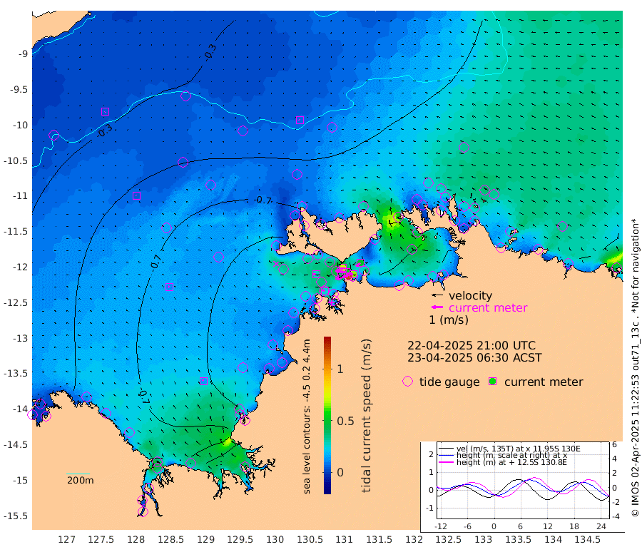 116cm/s -102T +4cm/s rms + 6cm/s 51T. Darwin_C1 52m 64cm/s -89T +4cm/s rms + 7cm/s -161T. Darwin_CW1 22m 40cm/s -106T +4cm/s rms + 8cm/s 61T. Darwin_CW2 34m 48cm/s -128T +3cm/s rms + 9cm/s 98T. Darwin_CW3 22m 55cm/s -91T +5cm/s rms + 7cm/s 88T. Darwin_C3 56m 70cm/s -115T +2cm/s rms + 9cm/s -126T. Darwin_CTbW 22m 8cm/s -41T +9cm/s rms + 2cm/s -110T. NWSLYN 196m 28cm/s -91T +1cm/s rms + 1cm/s -47T. DARBGF 30m 4cm/s -158T +7cm/s rms + 2cm/s -137T. ITFTIS 464m 4cm/s -33T +9cm/s rms + 1cm/s 74T. ITFMHB 146m 13cm/s -27T +4cm/s rms + 1cm/s -134T. ITFJBG 61m 13cm/s -51T +6cm/s rms + 4cm/s 121T. ITFFTB 108m 25cm/s -63T +4cm/s rms + 3cm/s 80T. NRSDAR 19m -29cm Carronade Island -29cm Guy Point -39cm Napier Broome Bay -40cm Lesueur Island -48cm Reveley Island -44cm Rocky Island -55cm Cape Domett -47cm Lacrosse Island -33cm Adolphus Island -10cm Pender Point 4cm Wyndham -63cm The Boxers -68cm Unnamed Shoal -37cm Loxton Shoal -59cm Pelican Island -54cm Calder Shoal -40cm Evans Shoal -10cm Quoin Island -86cm Port Keats -72cm Jones Point -12cm Catfish Island -82cm Cape Scott Offshore -110cm Cape Ford -92cm Anson Bay -49cm Goodrich Bank -86cm Peron Island North -103cm Point Jenny -103cm Native Point -92cm Fish Reef -102cm Tapa Bay -79cm Point Fawcett (Offshore) -100cm Burge Point -92cm Munkunuwa -91cm Beagle A -97cm Parsons Bank -95cm Fenton Patches -40cm Lynedoch Bank -91cm Hancox Shoal Area -95cm Nightcliff -95cm Darwin -98cm Charles Point Patches -63cm Glyde Point -32cm Chambers Bay -22cm Point Stuart -44cm Cape Hotham -41cm Christine Reef -18cm West Alligator Head -1cm East Field Island -38cm Two Hills Bay -92cm Newby Shoal -37cm Camp Point -95cm Medina Inlet South -74cm South Barlow Point -63cm St. Asaph Bay -52cm Cape Van Dieman -53cm Snake Bay -53cm Cache Point -17cm Echo Shoal -50cm Point Jahleel (Off) -59cm Cape Don -55cm Port Essington -57cm Smith Point - West -55cm NW Peacock Island -47cm North Of Jones Shoal -17cm Peacock Island -53cm Point David -58cm D'urville Point -50cm Money Shoal -51cm Copeland Island -67cm Cape Cockburn -53cm One Tree Point -66cm Hogmany Shoal -54cm New Year Island - West -58cm Grant Island -48cm Aurari Bay -59cm Cuthbert Point -58cm North Goulburn Island -53cm Paxie Shoal -47cm Entrance Island -31cm Yabooma Island