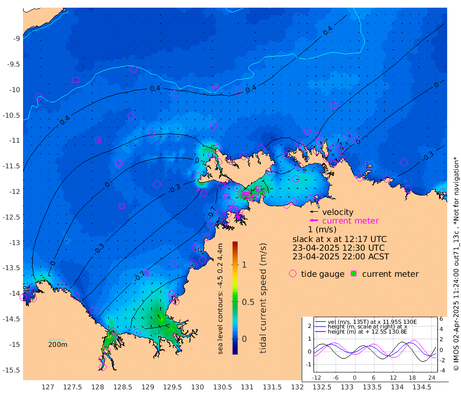 50cm/s -102T +4cm/s rms + 6cm/s 51T. Darwin_C1 52m 38cm/s -88T +4cm/s rms + 7cm/s -161T. Darwin_CW1 22m 39cm/s -108T +4cm/s rms + 8cm/s 61T. Darwin_CW2 34m 31cm/s -139T +3cm/s rms + 9cm/s 98T. Darwin_CW3 22m 53cm/s -91T +5cm/s rms + 7cm/s 88T. Darwin_C3 56m 28cm/s -114T +2cm/s rms + 9cm/s -126T. Darwin_CTbW 22m 8cm/s 150T +9cm/s rms + 2cm/s -110T. NWSLYN 196m 11cm/s -103T +1cm/s rms + 1cm/s -47T. DARBGF 30m 3cm/s 50T +7cm/s rms + 2cm/s -137T. ITFTIS 464m 4cm/s 45T +9cm/s rms + 1cm/s 74T. ITFMHB 146m 9cm/s 11T +4cm/s rms + 1cm/s -134T. ITFJBG 61m 4cm/s 48T +6cm/s rms + 4cm/s 121T. ITFFTB 108m 9cm/s -76T +4cm/s rms + 3cm/s 80T. NRSDAR 19m 23cm Carronade Island 27cm Guy Point 29cm Napier Broome Bay -28cm Lesueur Island -76cm Reveley Island -37cm Rocky Island -113cm Cape Domett -112cm Lacrosse Island -116cm Adolphus Island -81cm Pender Point -79cm Wyndham 9cm The Boxers -1cm Unnamed Shoal 46cm Loxton Shoal -120cm Pelican Island 14cm Calder Shoal 40cm Evans Shoal -137cm Quoin Island -119cm Port Keats -113cm Jones Point -120cm Catfish Island -81cm Cape Scott Offshore -53cm Cape Ford -92cm Anson Bay 30cm Goodrich Bank -71cm Peron Island North -79cm Point Jenny -78cm Native Point -85cm Fish Reef -90cm Tapa Bay -21cm Point Fawcett (Offshore) -102cm Burge Point -81cm Munkunuwa -75cm Beagle A -89cm Parsons Bank -108cm Fenton Patches 34cm Lynedoch Bank -94cm Hancox Shoal Area -116cm Nightcliff -102cm Darwin -83cm Charles Point Patches -81cm Glyde Point -79cm Chambers Bay -72cm Point Stuart -73cm Cape Hotham -71cm Christine Reef -81cm West Alligator Head -82cm East Field Island -56cm Two Hills Bay -38cm Newby Shoal -59cm Camp Point -83cm Medina Inlet South -10cm South Barlow Point 2cm St. Asaph Bay 29cm Cape Van Dieman 27cm Snake Bay 26cm Cache Point 44cm Echo Shoal 13cm Point Jahleel (Off) -10cm Cape Don 21cm Port Essington 17cm Smith Point - West 21cm NW Peacock Island 26cm North Of Jones Shoal 9cm Peacock Island 15cm Point David 18cm D'urville Point 25cm Money Shoal 12cm Copeland Island 14cm Cape Cockburn 16cm One Tree Point 22cm Hogmany Shoal 11cm New Year Island - West 13cm Grant Island -6cm Aurari Bay -3cm Cuthbert Point 3cm North Goulburn Island -9cm Paxie Shoal -25cm Entrance Island -38cm Yabooma Island