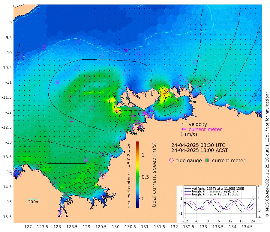 67cm/s 78T +4cm/s rms + 6cm/s 51T. Darwin_C1 52m 29cm/s 93T +4cm/s rms + 7cm/s -161T. Darwin_CW1 22m 26cm/s 72T +4cm/s rms + 8cm/s 61T. Darwin_CW2 34m 9cm/s 100T +3cm/s rms + 9cm/s 98T. Darwin_CW3 22m 17cm/s 86T +5cm/s rms + 7cm/s 88T. Darwin_C3 56m 51cm/s 64T +2cm/s rms + 9cm/s -126T. Darwin_CTbW 22m 3cm/s 171T +9cm/s rms + 2cm/s -110T. NWSLYN 196m 47cm/s 94T +1cm/s rms + 1cm/s -47T. DARBGF 30m 6cm/s 101T +7cm/s rms + 2cm/s -137T. ITFTIS 464m 17cm/s 159T +9cm/s rms + 1cm/s 74T. ITFMHB 146m 32cm/s 146T +4cm/s rms + 1cm/s -134T. ITFJBG 61m 34cm/s 132T +6cm/s rms + 4cm/s 121T. ITFFTB 108m 49cm/s 124T +4cm/s rms + 3cm/s 80T. NRSDAR 19m 9cm Carronade Island 1cm Guy Point 12cm Napier Broome Bay 1cm Lesueur Island -14cm Reveley Island 34cm Rocky Island -53cm Cape Domett -41cm Lacrosse Island -97cm Adolphus Island -138cm Pender Point -159cm Wyndham 58cm The Boxers 69cm Unnamed Shoal 50cm Loxton Shoal -55cm Pelican Island 67cm Calder Shoal 52cm Evans Shoal -151cm Quoin Island 1cm Port Keats -10cm Jones Point -144cm Catfish Island 36cm Cape Scott Offshore 79cm Cape Ford 40cm Anson Bay 57cm Goodrich Bank 52cm Peron Island North 67cm Point Jenny 69cm Native Point 63cm Fish Reef 55cm Tapa Bay 76cm Point Fawcett (Offshore) 55cm Burge Point 68cm Munkunuwa 78cm Beagle A 47cm Parsons Bank 57cm Fenton Patches 45cm Lynedoch Bank 28cm Hancox Shoal Area 45cm Nightcliff 30cm Darwin 37cm Charles Point Patches -5cm Glyde Point -56cm Chambers Bay -63cm Point Stuart -18cm Cape Hotham -40cm Christine Reef -74cm West Alligator Head -100cm East Field Island -28cm Two Hills Bay 83cm Newby Shoal -37cm Camp Point 57cm Medina Inlet South 77cm South Barlow Point 72cm St. Asaph Bay 62cm Cape Van Dieman 62cm Snake Bay 58cm Cache Point 38cm Echo Shoal 47cm Point Jahleel (Off) 26cm Cape Don 38cm Port Essington 45cm Smith Point - West 39cm NW Peacock Island 42cm North Of Jones Shoal 14cm Peacock Island 17cm Point David 41cm D'urville Point 24cm Money Shoal 13cm Copeland Island 23cm Cape Cockburn 20cm One Tree Point 8cm Hogmany Shoal 19cm New Year Island - West 18cm Grant Island 1cm Aurari Bay -13cm Cuthbert Point 5cm North Goulburn Island -35cm Paxie Shoal -42cm Entrance Island -79cm Yabooma Island