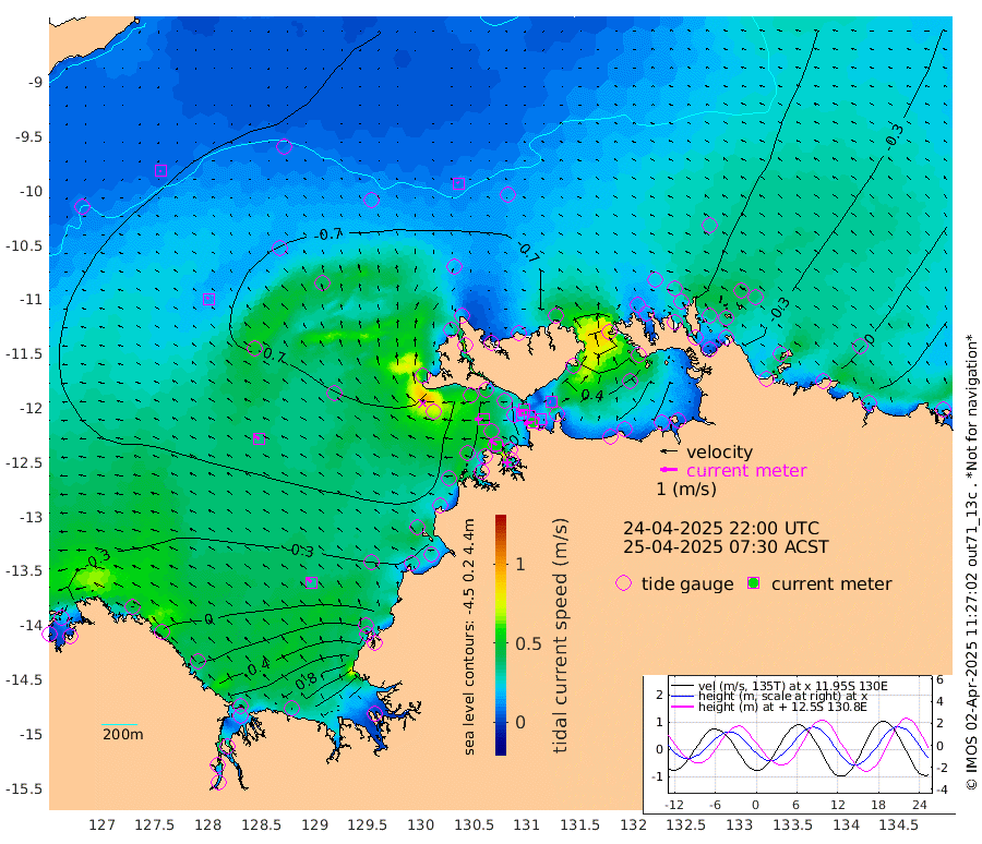 52cm/s -103T +4cm/s rms + 6cm/s 51T. Darwin_C1 52m 17cm/s -84T +4cm/s rms + 7cm/s -161T. Darwin_CW1 22m 20cm/s -105T +4cm/s rms + 8cm/s 61T. Darwin_CW2 34m 8cm/s -78T +3cm/s rms + 9cm/s 98T. Darwin_CW3 22m 12cm/s -100T +5cm/s rms + 7cm/s 88T. Darwin_C3 56m 38cm/s -116T +2cm/s rms + 9cm/s -126T. Darwin_CTbW 22m 10cm/s -27T +9cm/s rms + 2cm/s -110T. NWSLYN 196m 49cm/s -86T +1cm/s rms + 1cm/s -47T. DARBGF 30m 7cm/s -111T +7cm/s rms + 2cm/s -137T. ITFTIS 464m 14cm/s -34T +9cm/s rms + 1cm/s 74T. ITFMHB 146m 33cm/s -36T +4cm/s rms + 1cm/s -134T. ITFJBG 61m 36cm/s -52T +6cm/s rms + 4cm/s 121T. ITFFTB 108m 54cm/s -56T +4cm/s rms + 3cm/s 80T. NRSDAR 19m 2cm Carronade Island 8cm Guy Point -7cm Napier Broome Bay 24cm Lesueur Island 47cm Reveley Island -2cm Rocky Island 89cm Cape Domett 81cm Lacrosse Island 144cm Adolphus Island 170cm Pender Point 198cm Wyndham -58cm The Boxers -69cm Unnamed Shoal -52cm Loxton Shoal 85cm Pelican Island -64cm Calder Shoal -57cm Evans Shoal 203cm Quoin Island 27cm Port Keats 31cm Jones Point 185cm Catfish Island -22cm Cape Scott Offshore -81cm Cape Ford -30cm Anson Bay -63cm Goodrich Bank -37cm Peron Island North -57cm Point Jenny -59cm Native Point -48cm Fish Reef -44cm Tapa Bay -76cm Point Fawcett (Offshore) -37cm Burge Point -56cm Munkunuwa -59cm Beagle A -33cm Parsons Bank -32cm Fenton Patches -51cm Lynedoch Bank -13cm Hancox Shoal Area -21cm Nightcliff -14cm Darwin -29cm Charles Point Patches 23cm Glyde Point 76cm Chambers Bay 89cm Point Stuart 40cm Cape Hotham 63cm Christine Reef 105cm West Alligator Head 135cm East Field Island 48cm Two Hills Bay -66cm Newby Shoal 51cm Camp Point -44cm Medina Inlet South -76cm South Barlow Point -74cm St. Asaph Bay -69cm Cape Van Dieman -67cm Snake Bay -63cm Cache Point -35cm Echo Shoal -48cm Point Jahleel (Off) -27cm Cape Don -48cm Port Essington -51cm Smith Point - West -46cm NW Peacock Island -49cm North Of Jones Shoal -17cm Peacock Island -29cm Point David -49cm D'urville Point -39cm Money Shoal -25cm Copeland Island -35cm Cape Cockburn -32cm One Tree Point -24cm Hogmany Shoal -27cm New Year Island - West -28cm Grant Island -7cm Aurari Bay 0cm Cuthbert Point -18cm North Goulburn Island 15cm Paxie Shoal 31cm Entrance Island 67cm Yabooma Island