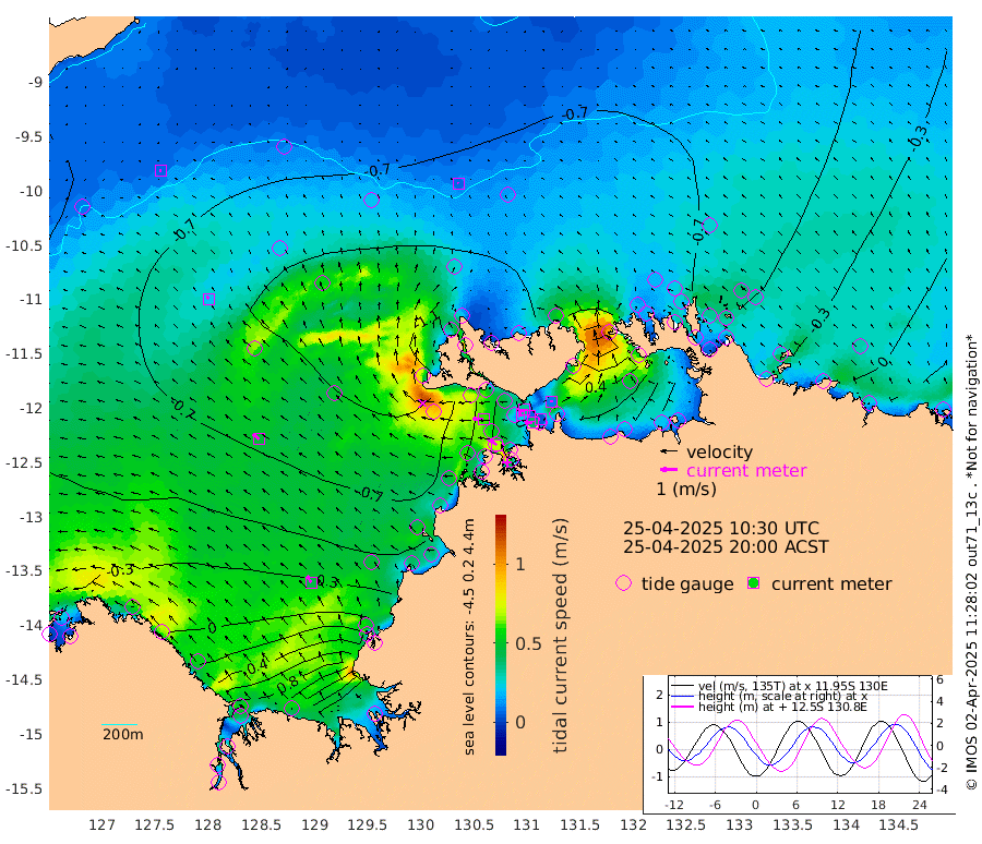 41cm/s -102T +4cm/s rms + 6cm/s 51T. Darwin_C1 52m 5cm/s -84T +4cm/s rms + 7cm/s -161T. Darwin_CW1 22m 23cm/s -107T +4cm/s rms + 8cm/s 61T. Darwin_CW2 34m 8cm/s 14T +3cm/s rms + 9cm/s 98T. Darwin_CW3 22m 6cm/s -118T +5cm/s rms + 7cm/s 88T. Darwin_C3 56m 33cm/s -117T +2cm/s rms + 9cm/s -126T. Darwin_CTbW 22m 7cm/s -25T +9cm/s rms + 2cm/s -110T. NWSLYN 196m 62cm/s -86T +1cm/s rms + 1cm/s -47T. DARBGF 30m 6cm/s -86T +7cm/s rms + 2cm/s -137T. ITFTIS 464m 20cm/s -25T +9cm/s rms + 1cm/s 74T. ITFMHB 146m 44cm/s -32T +4cm/s rms + 1cm/s -134T. ITFJBG 61m 46cm/s -50T +6cm/s rms + 4cm/s 121T. ITFFTB 108m 67cm/s -55T +4cm/s rms + 3cm/s 80T. NRSDAR 19m 9cm Carronade Island 15cm Guy Point 20cm Napier Broome Bay 5cm Lesueur Island 29cm Reveley Island 24cm Rocky Island 90cm Cape Domett 66cm Lacrosse Island 142cm Adolphus Island 216cm Pender Point 239cm Wyndham -67cm The Boxers -82cm Unnamed Shoal -53cm Loxton Shoal 69cm Pelican Island -79cm Calder Shoal -67cm Evans Shoal 216cm Quoin Island 12cm Port Keats 11cm Jones Point 183cm Catfish Island -49cm Cape Scott Offshore -134cm Cape Ford -58cm Anson Bay -79cm Goodrich Bank -72cm Peron Island North -88cm Point Jenny -88cm Native Point -83cm Fish Reef -77cm Tapa Bay -104cm Point Fawcett (Offshore) -64cm Burge Point -80cm Munkunuwa -100cm Beagle A -59cm Parsons Bank -73cm Fenton Patches -59cm Lynedoch Bank -45cm Hancox Shoal Area -56cm Nightcliff -40cm Darwin -59cm Charles Point Patches 4cm Glyde Point 65cm Chambers Bay 82cm Point Stuart 19cm Cape Hotham 55cm Christine Reef 99cm West Alligator Head 132cm East Field Island 36cm Two Hills Bay -88cm Newby Shoal 43cm Camp Point -70cm Medina Inlet South -99cm South Barlow Point -98cm St. Asaph Bay -86cm Cape Van Dieman -83cm Snake Bay -83cm Cache Point -48cm Echo Shoal -68cm Point Jahleel (Off) -39cm Cape Don -64cm Port Essington -74cm Smith Point - West -68cm NW Peacock Island -67cm North Of Jones Shoal -23cm Peacock Island -49cm Point David -72cm D'urville Point -53cm Money Shoal -46cm Copeland Island -60cm Cape Cockburn -47cm One Tree Point -53cm Hogmany Shoal -47cm New Year Island - West -46cm Grant Island -31cm Aurari Bay -15cm Cuthbert Point -34cm North Goulburn Island 13cm Paxie Shoal 13cm Entrance Island 46cm Yabooma Island