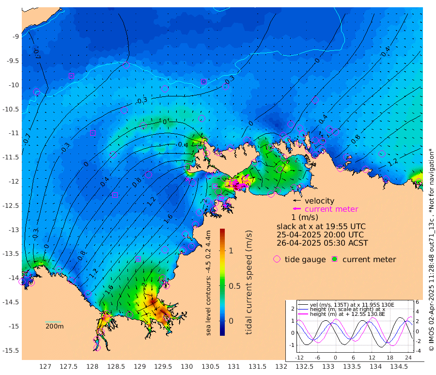 131cm/s 78T +4cm/s rms + 6cm/s 51T. Darwin_C1 52m 107cm/s 92T +4cm/s rms + 7cm/s -161T. Darwin_CW1 22m 92cm/s 73T +4cm/s rms + 8cm/s 61T. Darwin_CW2 34m 78cm/s 43T +3cm/s rms + 9cm/s 98T. Darwin_CW3 22m 144cm/s 89T +5cm/s rms + 7cm/s 88T. Darwin_C3 56m 63cm/s 65T +2cm/s rms + 9cm/s -126T. Darwin_CTbW 22m 5cm/s 6T +9cm/s rms + 2cm/s -110T. NWSLYN 196m 25cm/s 75T +1cm/s rms + 1cm/s -47T. DARBGF 30m 7cm/s -82T +7cm/s rms + 2cm/s -137T. ITFTIS 464m 7cm/s -97T +9cm/s rms + 1cm/s 74T. ITFMHB 146m 16cm/s -154T +4cm/s rms + 1cm/s -134T. ITFJBG 61m 10cm/s -100T +6cm/s rms + 4cm/s 121T. ITFFTB 108m 18cm/s 100T +4cm/s rms + 3cm/s 80T. NRSDAR 19m -66cm Carronade Island -62cm Guy Point -78cm Napier Broome Bay 45cm Lesueur Island 154cm Reveley Island 30cm Rocky Island 224cm Cape Domett 207cm Lacrosse Island 228cm Adolphus Island 149cm Pender Point 130cm Wyndham 6cm The Boxers 19cm Unnamed Shoal -63cm Loxton Shoal 260cm Pelican Island -7cm Calder Shoal -39cm Evans Shoal 261cm Quoin Island 248cm Port Keats 246cm Jones Point 192cm Catfish Island 184cm Cape Scott Offshore 216cm Cape Ford 210cm Anson Bay -15cm Goodrich Bank 178cm Peron Island North 187cm Point Jenny 184cm Native Point 192cm Fish Reef 213cm Tapa Bay 81cm Point Fawcett (Offshore) 226cm Burge Point 190cm Munkunuwa 158cm Beagle A 219cm Parsons Bank 221cm Fenton Patches -29cm Lynedoch Bank 227cm Hancox Shoal Area 238cm Nightcliff 243cm Darwin 220cm Charles Point Patches 180cm Glyde Point 153cm Chambers Bay 137cm Point Stuart 155cm Cape Hotham 140cm Christine Reef 146cm West Alligator Head 135cm East Field Island 121cm Two Hills Bay 83cm Newby Shoal 128cm Camp Point 198cm Medina Inlet South 60cm South Barlow Point 33cm St. Asaph Bay -11cm Cape Van Dieman -8cm Snake Bay -4cm Cache Point -76cm Echo Shoal 16cm Point Jahleel (Off) 66cm Cape Don 24cm Port Essington 27cm Smith Point - West 23cm NW Peacock Island 2cm North Of Jones Shoal 3cm Peacock Island 48cm Point David 30cm D'urville Point 19cm Money Shoal 53cm Copeland Island 65cm Cape Cockburn 41cm One Tree Point 68cm Hogmany Shoal 44cm New Year Island - West 50cm Grant Island 73cm Aurari Bay 91cm Cuthbert Point 71cm North Goulburn Island 101cm Paxie Shoal 127cm Entrance Island 156cm Yabooma Island