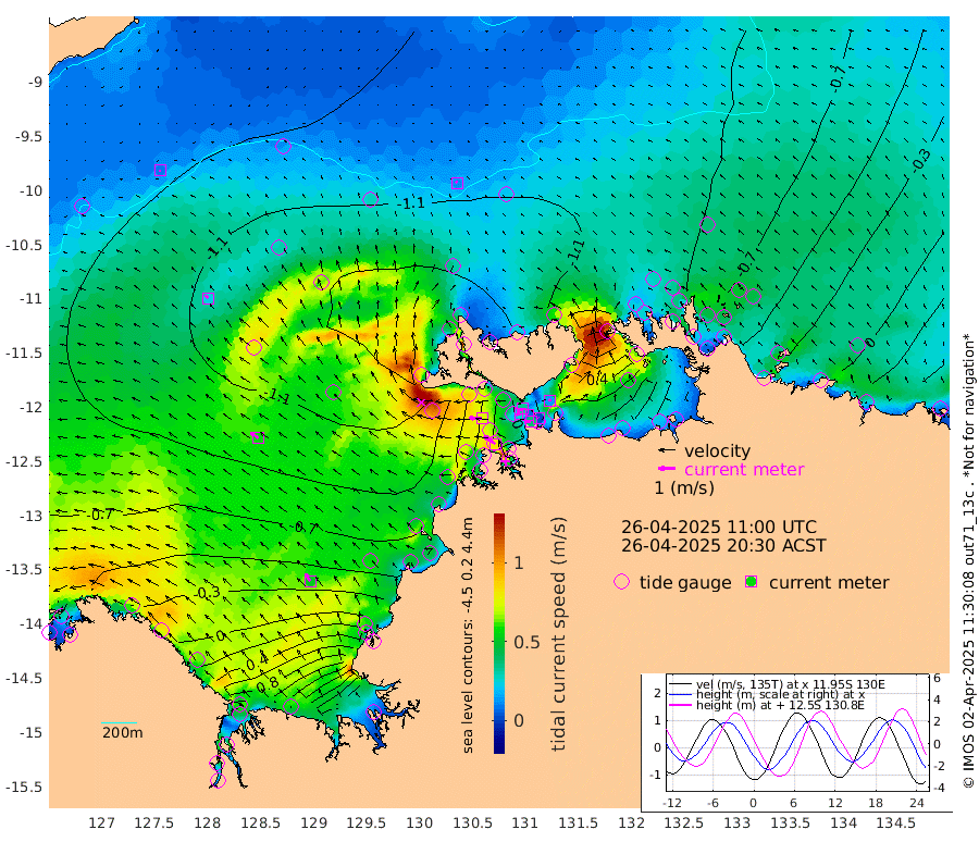 37cm/s -103T +4cm/s rms + 6cm/s 51T. Darwin_C1 52m 3cm/s -69T +4cm/s rms + 7cm/s -161T. Darwin_CW1 22m 26cm/s -105T +4cm/s rms + 8cm/s 61T. Darwin_CW2 34m 15cm/s 27T +3cm/s rms + 9cm/s 98T. Darwin_CW3 22m 7cm/s -116T +5cm/s rms + 7cm/s 88T. Darwin_C3 56m 33cm/s -117T +2cm/s rms + 9cm/s -126T. Darwin_CTbW 22m 11cm/s -31T +9cm/s rms + 2cm/s -110T. NWSLYN 196m 75cm/s -86T +1cm/s rms + 1cm/s -47T. DARBGF 30m 9cm/s -102T +7cm/s rms + 2cm/s -137T. ITFTIS 464m 24cm/s -30T +9cm/s rms + 1cm/s 74T. ITFMHB 146m 51cm/s -34T +4cm/s rms + 1cm/s -134T. ITFJBG 61m 56cm/s -52T +6cm/s rms + 4cm/s 121T. ITFFTB 108m 82cm/s -55T +4cm/s rms + 3cm/s 80T. NRSDAR 19m -6cm Carronade Island 0cm Guy Point 4cm Napier Broome Bay -8cm Lesueur Island 31cm Reveley Island 22cm Rocky Island 100cm Cape Domett 73cm Lacrosse Island 163cm Adolphus Island 245cm Pender Point 273cm Wyndham -98cm The Boxers -108cm Unnamed Shoal -86cm Loxton Shoal 80cm Pelican Island -113cm Calder Shoal -97cm Evans Shoal 248cm Quoin Island 9cm Port Keats 11cm Jones Point 213cm Catfish Island -66cm Cape Scott Offshore -177cm Cape Ford -75cm Anson Bay -108cm Goodrich Bank -92cm Peron Island North -110cm Point Jenny -111cm Native Point -105cm Fish Reef -96cm Tapa Bay -138cm Point Fawcett (Offshore) -81cm Burge Point -99cm Munkunuwa -126cm Beagle A -71cm Parsons Bank -90cm Fenton Patches -86cm Lynedoch Bank -54cm Hancox Shoal Area -68cm Nightcliff -54cm Darwin -81cm Charles Point Patches 4cm Glyde Point 81cm Chambers Bay 104cm Point Stuart 25cm Cape Hotham 69cm Christine Reef 126cm West Alligator Head 165cm East Field Island 45cm Two Hills Bay -119cm Newby Shoal 50cm Camp Point -91cm Medina Inlet South -131cm South Barlow Point -131cm St. Asaph Bay -116cm Cape Van Dieman -112cm Snake Bay -113cm Cache Point -78cm Echo Shoal -91cm Point Jahleel (Off) -53cm Cape Don -86cm Port Essington -95cm Smith Point - West -87cm NW Peacock Island -92cm North Of Jones Shoal -31cm Peacock Island -58cm Point David -91cm D'urville Point -72cm Money Shoal -53cm Copeland Island -72cm Cape Cockburn -60cm One Tree Point -62cm Hogmany Shoal -58cm New Year Island - West -55cm Grant Island -32cm Aurari Bay -12cm Cuthbert Point -38cm North Goulburn Island 19cm Paxie Shoal 27cm Entrance Island 70cm Yabooma Island