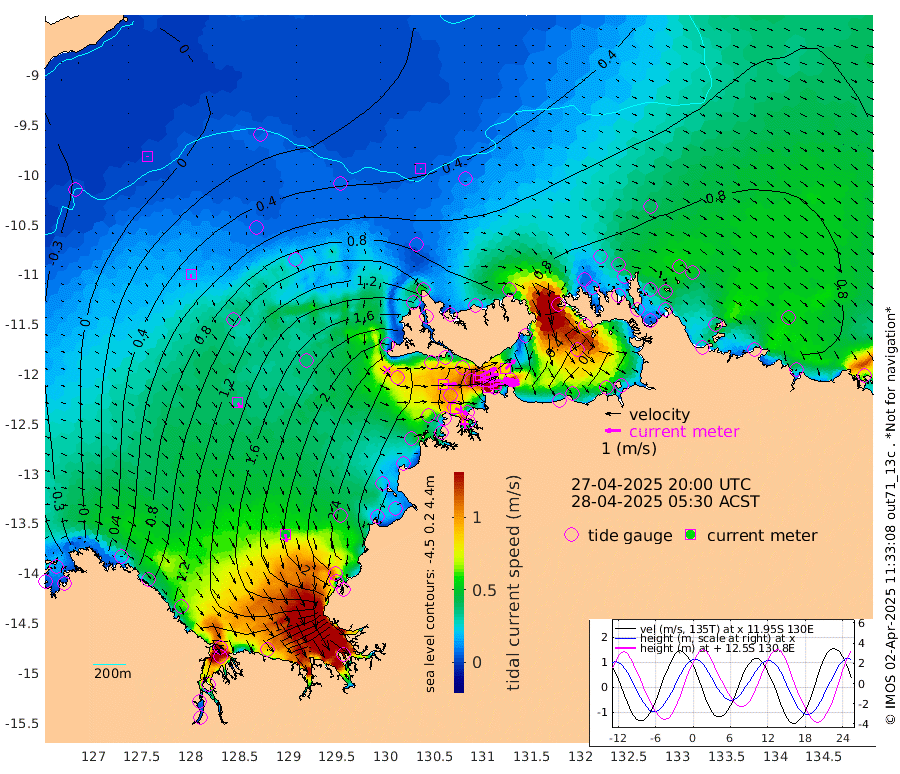 203cm/s 78T +4cm/s rms + 6cm/s 51T. Darwin_C1 52m 156cm/s 89T +4cm/s rms + 7cm/s -161T. Darwin_CW1 22m 133cm/s 74T +4cm/s rms + 8cm/s 61T. Darwin_CW2 34m 86cm/s 49T +3cm/s rms + 9cm/s 98T. Darwin_CW3 22m 186cm/s 88T +5cm/s rms + 7cm/s 88T. Darwin_C3 56m 112cm/s 65T +2cm/s rms + 9cm/s -126T. Darwin_CTbW 22m 5cm/s 119T +9cm/s rms + 2cm/s -110T. NWSLYN 196m 86cm/s 87T +1cm/s rms + 1cm/s -47T. DARBGF 30m 1cm/s 5T +7cm/s rms + 2cm/s -137T. ITFTIS 464m 20cm/s 179T +9cm/s rms + 1cm/s 74T. ITFMHB 146m 48cm/s 166T +4cm/s rms + 1cm/s -134T. ITFJBG 61m 36cm/s 145T +6cm/s rms + 4cm/s 121T. ITFFTB 108m 83cm/s 116T +4cm/s rms + 3cm/s 80T. NRSDAR 19m -97cm Carronade Island -95cm Guy Point -106cm Napier Broome Bay 19cm Lesueur Island 136cm Reveley Island 43cm Rocky Island 170cm Cape Domett 160cm Lacrosse Island 117cm Adolphus Island -14cm Pender Point -71cm Wyndham 68cm The Boxers 85cm Unnamed Shoal -6cm Loxton Shoal 216cm Pelican Island 69cm Calder Shoal 26cm Evans Shoal 106cm Quoin Island 264cm Port Keats 257cm Jones Point 17cm Catfish Island 247cm Cape Scott Offshore 359cm Cape Ford 283cm Anson Bay 54cm Goodrich Bank 261cm Peron Island North 278cm Point Jenny 276cm Native Point 284cm Fish Reef 298cm Tapa Bay 186cm Point Fawcett (Offshore) 307cm Burge Point 295cm Munkunuwa 249cm Beagle A 296cm Parsons Bank 293cm Fenton Patches 25cm Lynedoch Bank 279cm Hancox Shoal Area 301cm Nightcliff 306cm Darwin 297cm Charles Point Patches 179cm Glyde Point 78cm Chambers Bay 48cm Point Stuart 131cm Cape Hotham 76cm Christine Reef 41cm West Alligator Head -9cm East Field Island 79cm Two Hills Bay 163cm Newby Shoal 80cm Camp Point 290cm Medina Inlet South 162cm South Barlow Point 128cm St. Asaph Bay 66cm Cape Van Dieman 67cm Snake Bay 65cm Cache Point -39cm Echo Shoal 71cm Point Jahleel (Off) 99cm Cape Don 77cm Port Essington 82cm Smith Point - West 70cm NW Peacock Island 58cm North Of Jones Shoal 22cm Peacock Island 71cm Point David 80cm D'urville Point 54cm Money Shoal 71cm Copeland Island 94cm Cape Cockburn 70cm One Tree Point 83cm Hogmany Shoal 64cm New Year Island - West 71cm Grant Island 69cm Aurari Bay 75cm Cuthbert Point 78cm North Goulburn Island 70cm Paxie Shoal 77cm Entrance Island 69cm Yabooma Island
