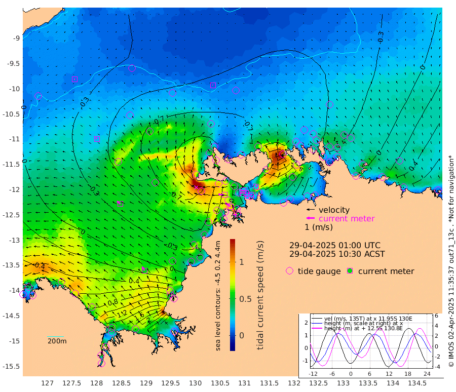 22cm/s -106T +4cm/s rms + 6cm/s 51T. Darwin_C1 52m 14cm/s 78T +4cm/s rms + 7cm/s -161T. Darwin_CW1 22m 35cm/s -110T +4cm/s rms + 8cm/s 61T. Darwin_CW2 34m 25cm/s 21T +3cm/s rms + 9cm/s 98T. Darwin_CW3 22m 10cm/s -119T +5cm/s rms + 7cm/s 88T. Darwin_C3 56m 21cm/s -121T +2cm/s rms + 9cm/s -126T. Darwin_CTbW 22m 7cm/s -11T +9cm/s rms + 2cm/s -110T. NWSLYN 196m 76cm/s -86T +1cm/s rms + 1cm/s -47T. DARBGF 30m 9cm/s -91T +7cm/s rms + 2cm/s -137T. ITFTIS 464m 18cm/s -30T +9cm/s rms + 1cm/s 74T. ITFMHB 146m 56cm/s -31T +4cm/s rms + 1cm/s -134T. ITFJBG 61m 54cm/s -49T +6cm/s rms + 4cm/s 121T. ITFFTB 108m 84cm/s -55T +4cm/s rms + 3cm/s 80T. NRSDAR 19m 134cm Carronade Island 147cm Guy Point 136cm Napier Broome Bay 118cm Lesueur Island 117cm Reveley Island 55cm Rocky Island 182cm Cape Domett 166cm Lacrosse Island 262cm Adolphus Island 341cm Pender Point 396cm Wyndham -20cm The Boxers -60cm Unnamed Shoal -13cm Loxton Shoal 153cm Pelican Island -39cm Calder Shoal -32cm Evans Shoal 337cm Quoin Island 74cm Port Keats 56cm Jones Point 365cm Catfish Island -8cm Cape Scott Offshore -98cm Cape Ford -28cm Anson Bay -52cm Goodrich Bank -35cm Peron Island North -49cm Point Jenny -53cm Native Point -51cm Fish Reef -43cm Tapa Bay -74cm Point Fawcett (Offshore) -30cm Burge Point -76cm Munkunuwa -56cm Beagle A -35cm Parsons Bank -29cm Fenton Patches -34cm Lynedoch Bank -3cm Hancox Shoal Area -14cm Nightcliff -11cm Darwin -28cm Charles Point Patches 61cm Glyde Point 160cm Chambers Bay 179cm Point Stuart 88cm Cape Hotham 153cm Christine Reef 206cm West Alligator Head 255cm East Field Island 115cm Two Hills Bay -25cm Newby Shoal 114cm Camp Point -50cm Medina Inlet South -84cm South Barlow Point -74cm St. Asaph Bay -63cm Cape Van Dieman -64cm Snake Bay -47cm Cache Point 8cm Echo Shoal -31cm Point Jahleel (Off) 5cm Cape Don -34cm Port Essington -36cm Smith Point - West -30cm NW Peacock Island -33cm North Of Jones Shoal -12cm Peacock Island -16cm Point David -36cm D'urville Point -19cm Money Shoal -11cm Copeland Island -10cm Cape Cockburn -14cm One Tree Point 8cm Hogmany Shoal -7cm New Year Island - West -5cm Grant Island 9cm Aurari Bay 38cm Cuthbert Point 9cm North Goulburn Island 58cm Paxie Shoal 72cm Entrance Island 112cm Yabooma Island