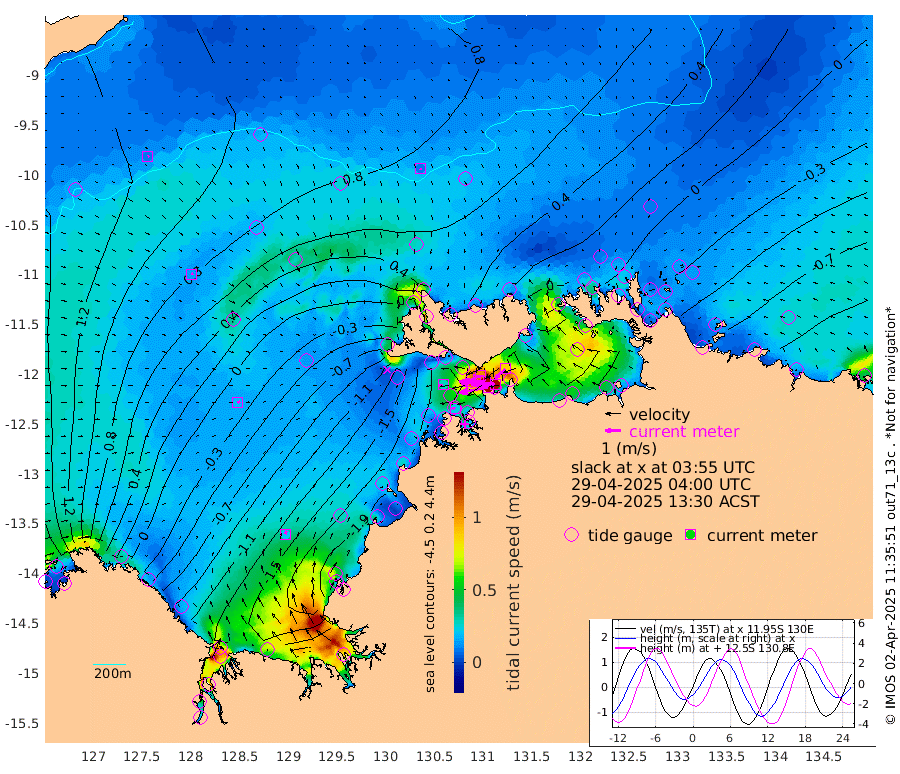 187cm/s -101T +4cm/s rms + 6cm/s 51T. Darwin_C1 52m 150cm/s -90T +4cm/s rms + 7cm/s -161T. Darwin_CW1 22m 111cm/s -107T +4cm/s rms + 8cm/s 61T. Darwin_CW2 34m 86cm/s -133T +3cm/s rms + 9cm/s 98T. Darwin_CW3 22m 168cm/s -91T +5cm/s rms + 7cm/s 88T. Darwin_C3 56m 103cm/s -115T +2cm/s rms + 9cm/s -126T. Darwin_CTbW 22m 8cm/s 149T +9cm/s rms + 2cm/s -110T. NWSLYN 196m 28cm/s -102T +1cm/s rms + 1cm/s -47T. DARBGF 30m 10cm/s 58T +7cm/s rms + 2cm/s -137T. ITFTIS 464m 13cm/s 61T +9cm/s rms + 1cm/s 74T. ITFMHB 146m 21cm/s 18T +4cm/s rms + 1cm/s -134T. ITFJBG 61m 18cm/s 64T +6cm/s rms + 4cm/s 121T. ITFFTB 108m 23cm/s -86T +4cm/s rms + 3cm/s 80T. NRSDAR 19m 164cm Carronade Island 164cm Guy Point 169cm Napier Broome Bay 48cm Lesueur Island -115cm Reveley Island -47cm Rocky Island -191cm Cape Domett -160cm Lacrosse Island -183cm Adolphus Island -110cm Pender Point -68cm Wyndham 54cm The Boxers 26cm Unnamed Shoal 118cm Loxton Shoal -229cm Pelican Island 63cm Calder Shoal 85cm Evans Shoal -232cm Quoin Island -220cm Port Keats -227cm Jones Point -121cm Catfish Island -151cm Cape Scott Offshore -163cm Cape Ford -180cm Anson Bay 62cm Goodrich Bank -152cm Peron Island North -149cm Point Jenny -148cm Native Point -163cm Fish Reef -181cm Tapa Bay -37cm Point Fawcett (Offshore) -199cm Burge Point -190cm Munkunuwa -108cm Beagle A -210cm Parsons Bank -181cm Fenton Patches 74cm Lynedoch Bank -200cm Hancox Shoal Area -206cm Nightcliff -222cm Darwin -184cm Charles Point Patches -148cm Glyde Point -107cm Chambers Bay -105cm Point Stuart -123cm Cape Hotham -95cm Christine Reef -114cm West Alligator Head -91cm East Field Island -89cm Two Hills Bay -16cm Newby Shoal -83cm Camp Point -179cm Medina Inlet South -27cm South Barlow Point 12cm St. Asaph Bay 56cm Cape Van Dieman 49cm Snake Bay 56cm Cache Point 147cm Echo Shoal 29cm Point Jahleel (Off) -29cm Cape Don 16cm Port Essington 16cm Smith Point - West 21cm NW Peacock Island 44cm North Of Jones Shoal 12cm Peacock Island -12cm Point David 11cm D'urville Point 30cm Money Shoal -18cm Copeland Island -19cm Cape Cockburn -5cm One Tree Point -16cm Hogmany Shoal 0cm New Year Island - West -12cm Grant Island -37cm Aurari Bay -55cm Cuthbert Point -34cm North Goulburn Island -68cm Paxie Shoal -90cm Entrance Island -116cm Yabooma Island