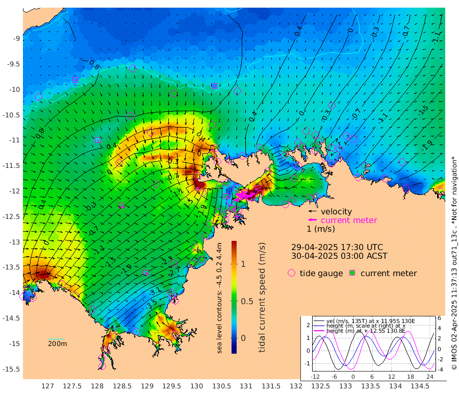 191cm/s -101T +4cm/s rms + 6cm/s 51T. Darwin_C1 52m 166cm/s -92T +4cm/s rms + 7cm/s -161T. Darwin_CW1 22m 72cm/s -105T +4cm/s rms + 8cm/s 61T. Darwin_CW2 34m 123cm/s -138T +3cm/s rms + 9cm/s 98T. Darwin_CW3 22m 150cm/s -90T +5cm/s rms + 7cm/s 88T. Darwin_C3 56m 99cm/s -116T +2cm/s rms + 9cm/s -126T. Darwin_CTbW 22m 12cm/s 179T +9cm/s rms + 2cm/s -110T. NWSLYN 196m 37cm/s 108T +1cm/s rms + 1cm/s -47T. DARBGF 30m 15cm/s 112T +7cm/s rms + 2cm/s -137T. ITFTIS 464m 26cm/s 147T +9cm/s rms + 1cm/s 74T. ITFMHB 146m 36cm/s 124T +4cm/s rms + 1cm/s -134T. ITFJBG 61m 53cm/s 124T +6cm/s rms + 4cm/s 121T. ITFFTB 108m 52cm/s 135T +4cm/s rms + 3cm/s 80T. NRSDAR 19m -8cm Carronade Island -10cm Guy Point -11cm Napier Broome Bay -128cm Lesueur Island -240cm Reveley Island -113cm Rocky Island -374cm Cape Domett -333cm Lacrosse Island -430cm Adolphus Island -408cm Pender Point -421cm Wyndham -5cm The Boxers -20cm Unnamed Shoal 69cm Loxton Shoal -380cm Pelican Island 31cm Calder Shoal 59cm Evans Shoal -522cm Quoin Island -327cm Port Keats -315cm Jones Point -455cm Catfish Island -186cm Cape Scott Offshore -162cm Cape Ford -202cm Anson Bay 40cm Goodrich Bank -177cm Peron Island North -160cm Point Jenny -157cm Native Point -178cm Fish Reef -195cm Tapa Bay -36cm Point Fawcett (Offshore) -230cm Burge Point -158cm Munkunuwa -126cm Beagle A -229cm Parsons Bank -217cm Fenton Patches 38cm Lynedoch Bank -242cm Hancox Shoal Area -237cm Nightcliff -271cm Darwin -227cm Charles Point Patches -250cm Glyde Point -268cm Chambers Bay -287cm Point Stuart -241cm Cape Hotham -253cm Christine Reef -314cm West Alligator Head -332cm East Field Island -228cm Two Hills Bay -88cm Newby Shoal -225cm Camp Point -190cm Medina Inlet South -21cm South Barlow Point 14cm St. Asaph Bay 42cm Cape Van Dieman 30cm Snake Bay 26cm Cache Point 89cm Echo Shoal -8cm Point Jahleel (Off) -94cm Cape Don -25cm Port Essington -22cm Smith Point - West -26cm NW Peacock Island 5cm North Of Jones Shoal -2cm Peacock Island -74cm Point David -32cm D'urville Point -30cm Money Shoal -80cm Copeland Island -106cm Cape Cockburn -68cm One Tree Point -113cm Hogmany Shoal -78cm New Year Island - West -87cm Grant Island -120cm Aurari Bay -164cm Cuthbert Point -119cm North Goulburn Island -183cm Paxie Shoal -213cm Entrance Island -261cm Yabooma Island