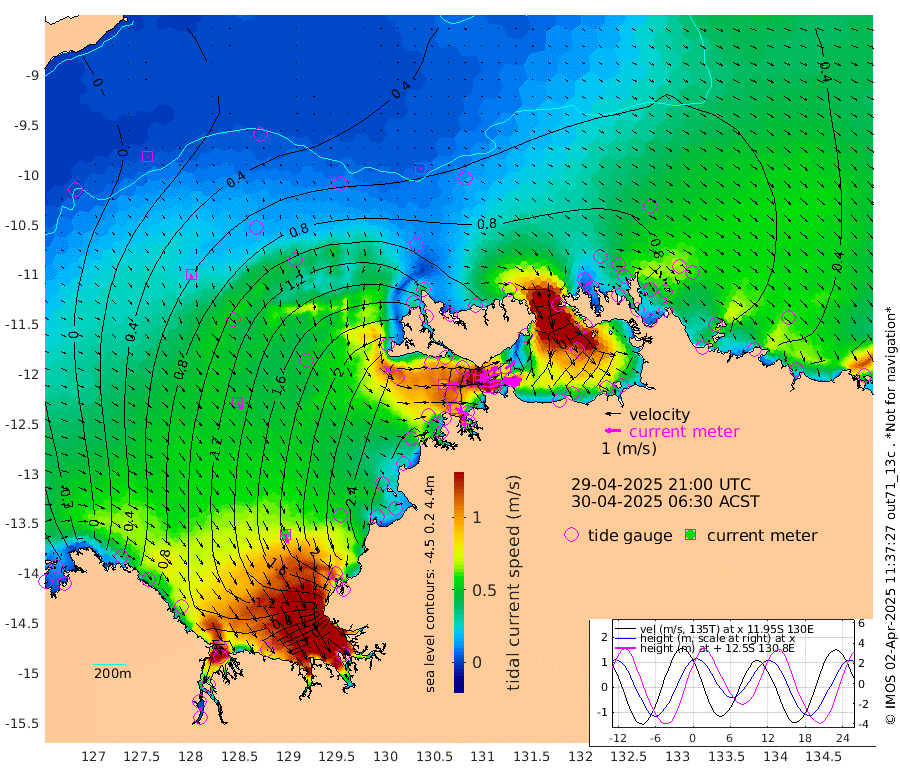 221cm/s 78T +4cm/s rms + 6cm/s 51T. Darwin_C1 52m 160cm/s 89T +4cm/s rms + 7cm/s -161T. Darwin_CW1 22m 139cm/s 74T +4cm/s rms + 8cm/s 61T. Darwin_CW2 34m 82cm/s 53T +3cm/s rms + 9cm/s 98T. Darwin_CW3 22m 187cm/s 88T +5cm/s rms + 7cm/s 88T. Darwin_C3 56m 125cm/s 65T +2cm/s rms + 9cm/s -126T. Darwin_CTbW 22m 6cm/s 134T +9cm/s rms + 2cm/s -110T. NWSLYN 196m 98cm/s 88T +1cm/s rms + 1cm/s -47T. DARBGF 30m 3cm/s 109T +7cm/s rms + 2cm/s -137T. ITFTIS 464m 27cm/s 176T +9cm/s rms + 1cm/s 74T. ITFMHB 146m 56cm/s 164T +4cm/s rms + 1cm/s -134T. ITFJBG 61m 46cm/s 143T +6cm/s rms + 4cm/s 121T. ITFFTB 108m 96cm/s 116T +4cm/s rms + 3cm/s 80T. NRSDAR 19m -112cm Carronade Island -112cm Guy Point -118cm Napier Broome Bay -1cm Lesueur Island 115cm Reveley Island 57cm Rocky Island 132cm Cape Domett 126cm Lacrosse Island 66cm Adolphus Island -69cm Pender Point -137cm Wyndham 76cm The Boxers 92cm Unnamed Shoal 15cm Loxton Shoal 175cm Pelican Island 85cm Calder Shoal 45cm Evans Shoal 52cm Quoin Island 236cm Port Keats 227cm Jones Point -47cm Catfish Island 240cm Cape Scott Offshore 348cm Cape Ford 274cm Anson Bay 68cm Goodrich Bank 258cm Peron Island North 268cm Point Jenny 267cm Native Point 278cm Fish Reef 287cm Tapa Bay 197cm Point Fawcett (Offshore) 291cm Burge Point 300cm Munkunuwa 242cm Beagle A 284cm Parsons Bank 276cm Fenton Patches 38cm Lynedoch Bank 258cm Hancox Shoal Area 284cm Nightcliff 290cm Darwin 284cm Charles Point Patches 150cm Glyde Point 29cm Chambers Bay 0cm Point Stuart 99cm Cape Hotham 31cm Christine Reef -11cm West Alligator Head -71cm East Field Island 46cm Two Hills Bay 161cm Newby Shoal 42cm Camp Point 287cm Medina Inlet South 176cm South Barlow Point 143cm St. Asaph Bay 79cm Cape Van Dieman 83cm Snake Bay 74cm Cache Point -22cm Echo Shoal 76cm Point Jahleel (Off) 89cm Cape Don 77cm Port Essington 82cm Smith Point - West 67cm NW Peacock Island 64cm North Of Jones Shoal 23cm Peacock Island 55cm Point David 76cm D'urville Point 46cm Money Shoal 53cm Copeland Island 73cm Cape Cockburn 59cm One Tree Point 57cm Hogmany Shoal 48cm New Year Island - West 54cm Grant Island 43cm Aurari Bay 36cm Cuthbert Point 51cm North Goulburn Island 27cm Paxie Shoal 22cm Entrance Island -3cm Yabooma Island