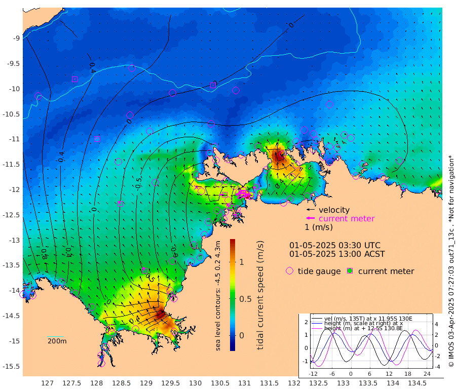 126cm/s -103T +4cm/s rms + 6cm/s 51T. Darwin_C1 52m 70cm/s -88T +4cm/s rms + 7cm/s -161T. Darwin_CW1 22m 88cm/s -109T +4cm/s rms + 8cm/s 61T. Darwin_CW2 34m 37cm/s -114T +3cm/s rms + 9cm/s 98T. Darwin_CW3 22m 93cm/s -93T +5cm/s rms + 7cm/s 88T. Darwin_C3 56m 72cm/s -116T +2cm/s rms + 9cm/s -126T. Darwin_CTbW 22m 2cm/s 101T +9cm/s rms + 2cm/s -110T. NWSLYN 196m 63cm/s -90T +1cm/s rms + 1cm/s -47T. DARBGF 30m 4cm/s -7T +7cm/s rms + 2cm/s -137T. ITFTIS 464m 14cm/s 6T +9cm/s rms + 1cm/s 74T. ITFMHB 146m 44cm/s -21T +4cm/s rms + 1cm/s -134T. ITFJBG 61m 33cm/s -32T +6cm/s rms + 4cm/s 121T. ITFFTB 108m 57cm/s -62T +4cm/s rms + 3cm/s 80T. NRSDAR 19m 196cm Carronade Island 205cm Guy Point 205cm Napier Broome Bay 115cm Lesueur Island 27cm Reveley Island 19cm Rocky Island 35cm Cape Domett 40cm Lacrosse Island 81cm Adolphus Island 190cm Pender Point 247cm Wyndham 21cm The Boxers -22cm Unnamed Shoal 53cm Loxton Shoal -12cm Pelican Island 12cm Calder Shoal 21cm Evans Shoal 103cm Quoin Island -57cm Port Keats -73cm Jones Point 182cm Catfish Island -78cm Cape Scott Offshore -137cm Cape Ford -107cm Anson Bay -5cm Goodrich Bank -102cm Peron Island North -100cm Point Jenny -102cm Native Point -114cm Fish Reef -115cm Tapa Bay -65cm Point Fawcett (Offshore) -113cm Burge Point -142cm Munkunuwa -86cm Beagle A -130cm Parsons Bank -106cm Fenton Patches 12cm Lynedoch Bank -104cm Hancox Shoal Area -109cm Nightcliff -121cm Darwin -113cm Charles Point Patches -33cm Glyde Point 61cm Chambers Bay 72cm Point Stuart -2cm Cape Hotham 62cm Christine Reef 86cm West Alligator Head 132cm East Field Island 33cm Two Hills Bay -17cm Newby Shoal 39cm Camp Point -121cm Medina Inlet South -71cm South Barlow Point -43cm St. Asaph Bay -15cm Cape Van Dieman -22cm Snake Bay -5cm Cache Point 83cm Echo Shoal -9cm Point Jahleel (Off) -13cm Cape Don -22cm Port Essington -24cm Smith Point - West -19cm NW Peacock Island -7cm North Of Jones Shoal -5cm Peacock Island -27cm Point David -28cm D'urville Point -5cm Money Shoal -27cm Copeland Island -30cm Cape Cockburn -21cm One Tree Point -15cm Hogmany Shoal -14cm New Year Island - West -20cm Grant Island -25cm Aurari Bay -14cm Cuthbert Point -21cm North Goulburn Island 0cm Paxie Shoal -5cm Entrance Island 8cm Yabooma Island