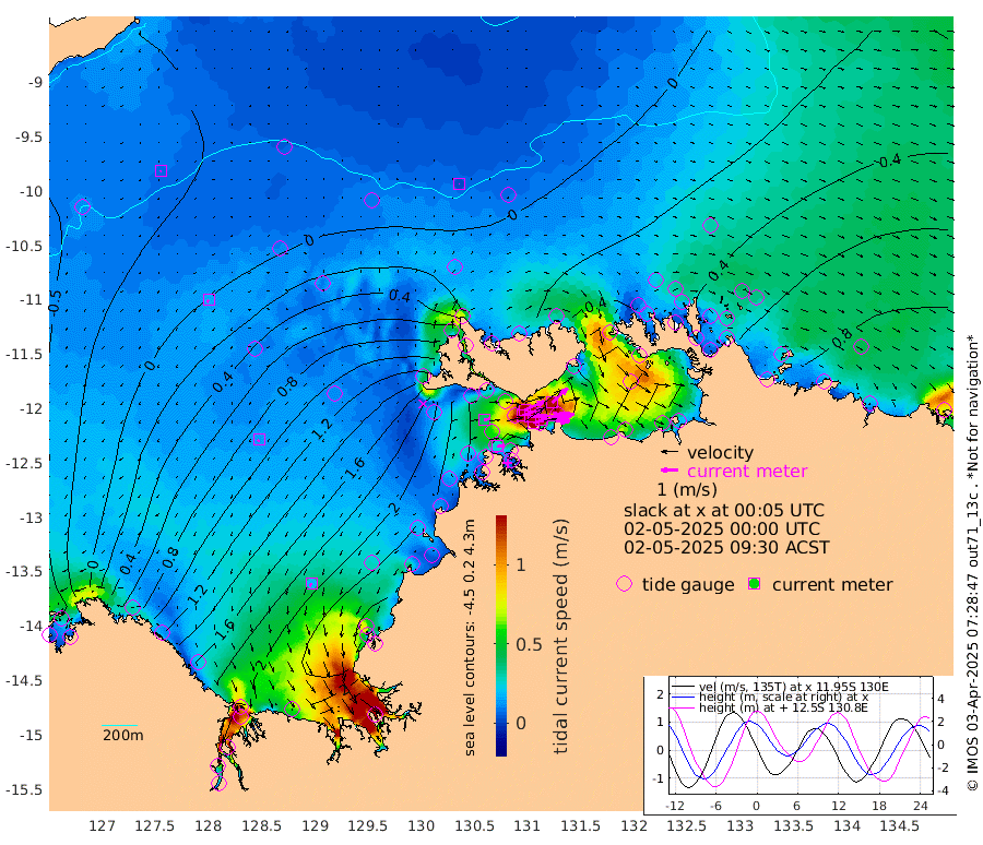 247cm/s 78T +4cm/s rms + 6cm/s 51T. Darwin_C1 52m 173cm/s 93T +4cm/s rms + 7cm/s -161T. Darwin_CW1 22m 130cm/s 72T +4cm/s rms + 8cm/s 61T. Darwin_CW2 34m 126cm/s 47T +3cm/s rms + 9cm/s 98T. Darwin_CW3 22m 199cm/s 89T +5cm/s rms + 7cm/s 88T. Darwin_C3 56m 128cm/s 66T +2cm/s rms + 9cm/s -126T. Darwin_CTbW 22m 3cm/s 4T +9cm/s rms + 2cm/s -110T. NWSLYN 196m 37cm/s 76T +1cm/s rms + 1cm/s -47T. DARBGF 30m 6cm/s -122T +7cm/s rms + 2cm/s -137T. ITFTIS 464m 17cm/s -151T +9cm/s rms + 1cm/s 74T. ITFMHB 146m 19cm/s -151T +4cm/s rms + 1cm/s -134T. ITFJBG 61m 13cm/s -138T +6cm/s rms + 4cm/s 121T. ITFFTB 108m 25cm/s 97T +4cm/s rms + 3cm/s 80T. NRSDAR 19m -32cm Carronade Island -29cm Guy Point -32cm Napier Broome Bay 70cm Lesueur Island 195cm Reveley Island 123cm Rocky Island 269cm Cape Domett 246cm Lacrosse Island 262cm Adolphus Island 198cm Pender Point 170cm Wyndham 42cm The Boxers 44cm Unnamed Shoal -19cm Loxton Shoal 288cm Pelican Island 31cm Calder Shoal -2cm Evans Shoal 316cm Quoin Island 284cm Port Keats 268cm Jones Point 259cm Catfish Island 218cm Cape Scott Offshore 229cm Cape Ford 237cm Anson Bay 7cm Goodrich Bank 218cm Peron Island North 210cm Point Jenny 208cm Native Point 225cm Fish Reef 236cm Tapa Bay 118cm Point Fawcett (Offshore) 251cm Burge Point 232cm Munkunuwa 177cm Beagle A 249cm Parsons Bank 236cm Fenton Patches -6cm Lynedoch Bank 242cm Hancox Shoal Area 256cm Nightcliff 270cm Darwin 242cm Charles Point Patches 194cm Glyde Point 151cm Chambers Bay 149cm Point Stuart 167cm Cape Hotham 145cm Christine Reef 163cm West Alligator Head 140cm East Field Island 140cm Two Hills Bay 120cm Newby Shoal 125cm Camp Point 236cm Medina Inlet South 93cm South Barlow Point 62cm St. Asaph Bay 11cm Cape Van Dieman 18cm Snake Bay 18cm Cache Point -45cm Echo Shoal 36cm Point Jahleel (Off) 84cm Cape Don 37cm Port Essington 40cm Smith Point - West 31cm NW Peacock Island 20cm North Of Jones Shoal 8cm Peacock Island 38cm Point David 37cm D'urville Point 14cm Money Shoal 39cm Copeland Island 58cm Cape Cockburn 41cm One Tree Point 54cm Hogmany Shoal 36cm New Year Island - West 44cm Grant Island 51cm Aurari Bay 68cm Cuthbert Point 56cm North Goulburn Island 72cm Paxie Shoal 79cm Entrance Island 83cm Yabooma Island