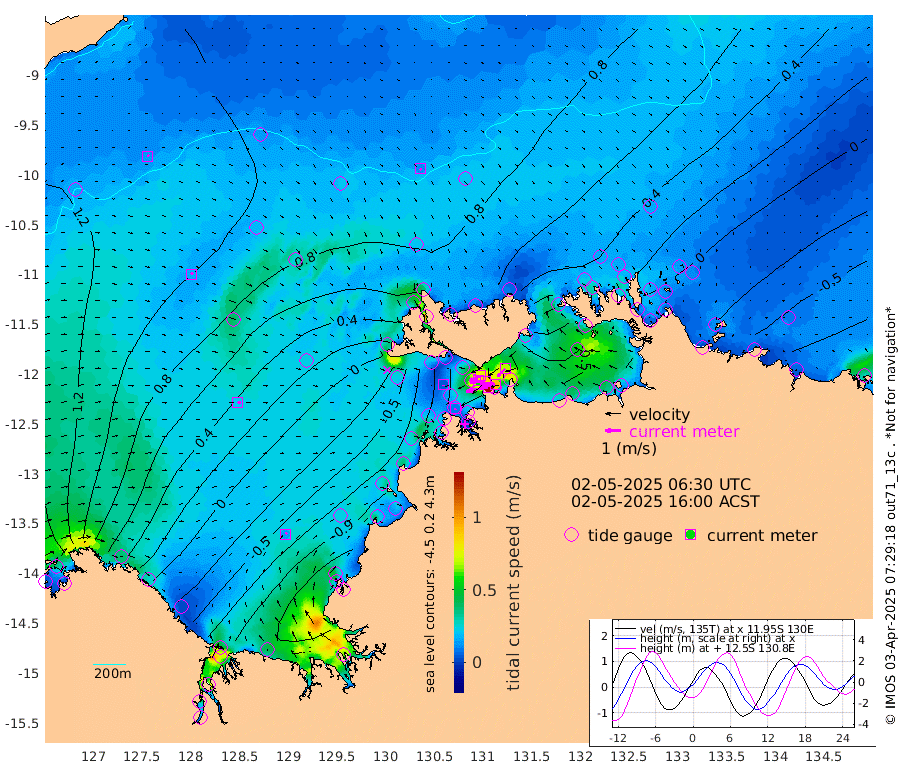 142cm/s -101T +4cm/s rms + 6cm/s 51T. Darwin_C1 52m 92cm/s -90T +4cm/s rms + 7cm/s -161T. Darwin_CW1 22m 56cm/s -107T +4cm/s rms + 8cm/s 61T. Darwin_CW2 34m 69cm/s -134T +3cm/s rms + 9cm/s 98T. Darwin_CW3 22m 87cm/s -91T +5cm/s rms + 7cm/s 88T. Darwin_C3 56m 78cm/s -116T +2cm/s rms + 9cm/s -126T. Darwin_CTbW 22m 11cm/s 134T +9cm/s rms + 2cm/s -110T. NWSLYN 196m 4cm/s 177T +1cm/s rms + 1cm/s -47T. DARBGF 30m 14cm/s 41T +7cm/s rms + 2cm/s -137T. ITFTIS 464m 15cm/s 55T +9cm/s rms + 1cm/s 74T. ITFMHB 146m 14cm/s 49T +4cm/s rms + 1cm/s -134T. ITFJBG 61m 21cm/s 78T +6cm/s rms + 4cm/s 121T. ITFFTB 108m 9cm/s -165T +4cm/s rms + 3cm/s 80T. NRSDAR 19m 121cm Carronade Island 123cm Guy Point 130cm Napier Broome Bay 55cm Lesueur Island -65cm Reveley Island -41cm Rocky Island -116cm Cape Domett -95cm Lacrosse Island -134cm Adolphus Island -94cm Pender Point -78cm Wyndham 79cm The Boxers 63cm Unnamed Shoal 116cm Loxton Shoal -144cm Pelican Island 88cm Calder Shoal 90cm Evans Shoal -181cm Quoin Island -113cm Port Keats -124cm Jones Point -159cm Catfish Island -58cm Cape Scott Offshore -21cm Cape Ford -70cm Anson Bay 80cm Goodrich Bank -59cm Peron Island North -47cm Point Jenny -44cm Native Point -62cm Fish Reef -67cm Tapa Bay 26cm Point Fawcett (Offshore) -77cm Burge Point -75cm Munkunuwa -20cm Beagle A -97cm Parsons Bank -72cm Fenton Patches 83cm Lynedoch Bank -94cm Hancox Shoal Area -89cm Nightcliff -99cm Darwin -66cm Charles Point Patches -80cm Glyde Point -83cm Chambers Bay -95cm Point Stuart -78cm Cape Hotham -72cm Christine Reef -110cm West Alligator Head -104cm East Field Island -70cm Two Hills Bay 42cm Newby Shoal -49cm Camp Point -66cm Medina Inlet South 33cm South Barlow Point 56cm St. Asaph Bay 78cm Cape Van Dieman 74cm Snake Bay 74cm Cache Point 127cm Echo Shoal 49cm Point Jahleel (Off) 2cm Cape Don 39cm Port Essington 35cm Smith Point - West 38cm NW Peacock Island 59cm North Of Jones Shoal 18cm Peacock Island 11cm Point David 31cm D'urville Point 48cm Money Shoal 4cm Copeland Island 7cm Cape Cockburn 17cm One Tree Point 6cm Hogmany Shoal 20cm New Year Island - West 10cm Grant Island -18cm Aurari Bay -37cm Cuthbert Point -11cm North Goulburn Island -37cm Paxie Shoal -65cm Entrance Island -92cm Yabooma Island