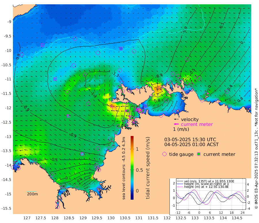 57cm/s -103T +4cm/s rms + 6cm/s 51T. Darwin_C1 52m 47cm/s -86T +4cm/s rms + 7cm/s -161T. Darwin_CW1 22m 49cm/s -107T +4cm/s rms + 8cm/s 61T. Darwin_CW2 34m 8cm/s -67T +3cm/s rms + 9cm/s 98T. Darwin_CW3 22m 66cm/s -93T +5cm/s rms + 7cm/s 88T. Darwin_C3 56m 32cm/s -115T +2cm/s rms + 9cm/s -126T. Darwin_CTbW 22m 10cm/s -43T +9cm/s rms + 2cm/s -110T. NWSLYN 196m 59cm/s -90T +1cm/s rms + 1cm/s -47T. DARBGF 30m 11cm/s -121T +7cm/s rms + 2cm/s -137T. ITFTIS 464m 16cm/s -41T +9cm/s rms + 1cm/s 74T. ITFMHB 146m 28cm/s -33T +4cm/s rms + 1cm/s -134T. ITFJBG 61m 36cm/s -58T +6cm/s rms + 4cm/s 121T. ITFFTB 108m 59cm/s -58T +4cm/s rms + 3cm/s 80T. NRSDAR 19m -18cm Carronade Island -21cm Guy Point -27cm Napier Broome Bay -39cm Lesueur Island -23cm Reveley Island -39cm Rocky Island 9cm Cape Domett 0cm Lacrosse Island 59cm Adolphus Island 107cm Pender Point 141cm Wyndham -112cm The Boxers -109cm Unnamed Shoal -116cm Loxton Shoal 10cm Pelican Island -127cm Calder Shoal -106cm Evans Shoal 95cm Quoin Island -52cm Port Keats -30cm Jones Point 171cm Catfish Island -97cm Cape Scott Offshore -163cm Cape Ford -106cm Anson Bay -109cm Goodrich Bank -105cm Peron Island North -112cm Point Jenny -117cm Native Point -108cm Fish Reef -112cm Tapa Bay -135cm Point Fawcett (Offshore) -102cm Burge Point -124cm Munkunuwa -118cm Beagle A -89cm Parsons Bank -97cm Fenton Patches -95cm Lynedoch Bank -73cm Hancox Shoal Area -93cm Nightcliff -92cm Darwin -113cm Charles Point Patches -15cm Glyde Point 73cm Chambers Bay 96cm Point Stuart 18cm Cape Hotham 58cm Christine Reef 114cm West Alligator Head 149cm East Field Island 43cm Two Hills Bay -127cm Newby Shoal 30cm Camp Point -119cm Medina Inlet South -136cm South Barlow Point -133cm St. Asaph Bay -112cm Cape Van Dieman -116cm Snake Bay -101cm Cache Point -96cm Echo Shoal -83cm Point Jahleel (Off) -46cm Cape Don -71cm Port Essington -71cm Smith Point - West -62cm NW Peacock Island -81cm North Of Jones Shoal -26cm Peacock Island -26cm Point David -62cm D'urville Point -53cm Money Shoal -17cm Copeland Island -25cm Cape Cockburn -35cm One Tree Point -15cm Hogmany Shoal -30cm New Year Island - West -25cm Grant Island 10cm Aurari Bay 37cm Cuthbert Point 2cm North Goulburn Island 45cm Paxie Shoal 81cm Entrance Island 132cm Yabooma Island