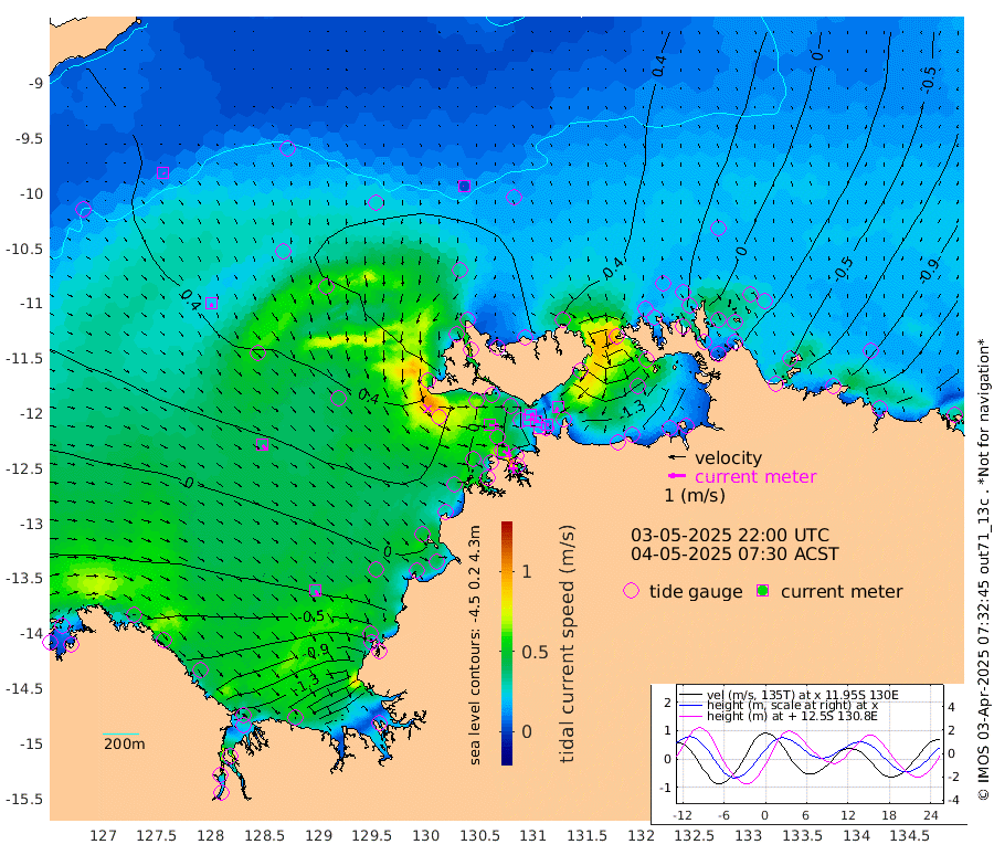 18cm/s 82T +4cm/s rms + 6cm/s 51T. Darwin_C1 52m 12cm/s 85T +4cm/s rms + 7cm/s -161T. Darwin_CW1 22m 25cm/s 72T +4cm/s rms + 8cm/s 61T. Darwin_CW2 34m 34cm/s -152T +3cm/s rms + 9cm/s 98T. Darwin_CW3 22m 16cm/s 80T +5cm/s rms + 7cm/s 88T. Darwin_C3 56m 19cm/s 61T +2cm/s rms + 9cm/s -126T. Darwin_CTbW 22m 3cm/s -145T +9cm/s rms + 2cm/s -110T. NWSLYN 196m 53cm/s 93T +1cm/s rms + 1cm/s -47T. DARBGF 30m 8cm/s 126T +7cm/s rms + 2cm/s -137T. ITFTIS 464m 21cm/s 163T +9cm/s rms + 1cm/s 74T. ITFMHB 146m 36cm/s 149T +4cm/s rms + 1cm/s -134T. ITFJBG 61m 38cm/s 134T +6cm/s rms + 4cm/s 121T. ITFFTB 108m 56cm/s 123T +4cm/s rms + 3cm/s 80T. NRSDAR 19m -74cm Carronade Island -76cm Guy Point -81cm Napier Broome Bay -67cm Lesueur Island -62cm Reveley Island -2cm Rocky Island -116cm Cape Domett -103cm Lacrosse Island -152cm Adolphus Island -218cm Pender Point -254cm Wyndham 25cm The Boxers 24cm Unnamed Shoal 43cm Loxton Shoal -101cm Pelican Island 48cm Calder Shoal 46cm Evans Shoal -199cm Quoin Island -49cm Port Keats -57cm Jones Point -266cm Catfish Island 8cm Cape Scott Offshore 50cm Cape Ford 13cm Anson Bay 49cm Goodrich Bank 20cm Peron Island North 26cm Point Jenny 30cm Native Point 24cm Fish Reef 22cm Tapa Bay 53cm Point Fawcett (Offshore) 8cm Burge Point 50cm Munkunuwa 38cm Beagle A 11cm Parsons Bank 14cm Fenton Patches 37cm Lynedoch Bank -6cm Hancox Shoal Area 7cm Nightcliff -3cm Darwin 12cm Charles Point Patches -60cm Glyde Point -133cm Chambers Bay -152cm Point Stuart -82cm Cape Hotham -117cm Christine Reef -170cm West Alligator Head -203cm East Field Island -101cm Two Hills Bay 26cm Newby Shoal -98cm Camp Point 29cm Medina Inlet South 66cm South Barlow Point 64cm St. Asaph Bay 52cm Cape Van Dieman 52cm Snake Bay 39cm Cache Point 33cm Echo Shoal 26cm Point Jahleel (Off) -17cm Cape Don 14cm Port Essington 21cm Smith Point - West 12cm NW Peacock Island 24cm North Of Jones Shoal 6cm Peacock Island -21cm Point David 14cm D'urville Point -3cm Money Shoal -25cm Copeland Island -34cm Cape Cockburn -17cm One Tree Point -46cm Hogmany Shoal -24cm New Year Island - West -27cm Grant Island -48cm Aurari Bay -78cm Cuthbert Point -51cm North Goulburn Island -101cm Paxie Shoal -116cm Entrance Island -158cm Yabooma Island