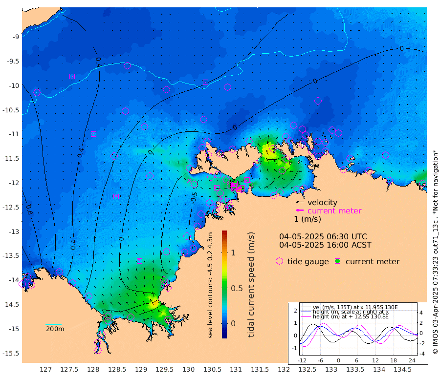 104cm/s -102T +4cm/s rms + 6cm/s 51T. Darwin_C1 52m 53cm/s -89T +4cm/s rms + 7cm/s -161T. Darwin_CW1 22m 43cm/s -107T +4cm/s rms + 8cm/s 61T. Darwin_CW2 34m 36cm/s -127T +3cm/s rms + 9cm/s 98T. Darwin_CW3 22m 50cm/s -91T +5cm/s rms + 7cm/s 88T. Darwin_C3 56m 58cm/s -115T +2cm/s rms + 9cm/s -126T. Darwin_CTbW 22m 5cm/s 111T +9cm/s rms + 2cm/s -110T. NWSLYN 196m 28cm/s -89T +1cm/s rms + 1cm/s -47T. DARBGF 30m 9cm/s 20T +7cm/s rms + 2cm/s -137T. ITFTIS 464m 13cm/s 22T +9cm/s rms + 1cm/s 74T. ITFMHB 146m 21cm/s -15T +4cm/s rms + 1cm/s -134T. ITFJBG 61m 15cm/s -6T +6cm/s rms + 4cm/s 121T. ITFFTB 108m 25cm/s -69T +4cm/s rms + 3cm/s 80T. NRSDAR 19m 120cm Carronade Island 125cm Guy Point 131cm Napier Broome Bay 78cm Lesueur Island 18cm Reveley Island 8cm Rocky Island 19cm Cape Domett 23cm Lacrosse Island 21cm Adolphus Island 90cm Pender Point 111cm Wyndham 39cm The Boxers 22cm Unnamed Shoal 53cm Loxton Shoal -15cm Pelican Island 36cm Calder Shoal 29cm Evans Shoal 17cm Quoin Island -21cm Port Keats -27cm Jones Point 15cm Catfish Island -27cm Cape Scott Offshore -5cm Cape Ford -40cm Anson Bay 19cm Goodrich Bank -41cm Peron Island North -29cm Point Jenny -27cm Native Point -40cm Fish Reef -37cm Tapa Bay -10cm Point Fawcett (Offshore) -33cm Burge Point -50cm Munkunuwa -19cm Beagle A -55cm Parsons Bank -33cm Fenton Patches 25cm Lynedoch Bank -45cm Hancox Shoal Area -43cm Nightcliff -47cm Darwin -37cm Charles Point Patches -15cm Glyde Point 14cm Chambers Bay 14cm Point Stuart -8cm Cape Hotham 17cm Christine Reef 17cm West Alligator Head 38cm East Field Island 0cm Two Hills Bay 20cm Newby Shoal 19cm Camp Point -42cm Medina Inlet South -13cm South Barlow Point 2cm St. Asaph Bay 15cm Cape Van Dieman 10cm Snake Bay 16cm Cache Point 63cm Echo Shoal 8cm Point Jahleel (Off) -4cm Cape Don -4cm Port Essington -10cm Smith Point - West -7cm NW Peacock Island 3cm North Of Jones Shoal -1cm Peacock Island -16cm Point David -14cm D'urville Point 3cm Money Shoal -20cm Copeland Island -25cm Cape Cockburn -14cm One Tree Point -15cm Hogmany Shoal -8cm New Year Island - West -14cm Grant Island -27cm Aurari Bay -28cm Cuthbert Point -22cm North Goulburn Island -12cm Paxie Shoal -25cm Entrance Island -29cm Yabooma Island