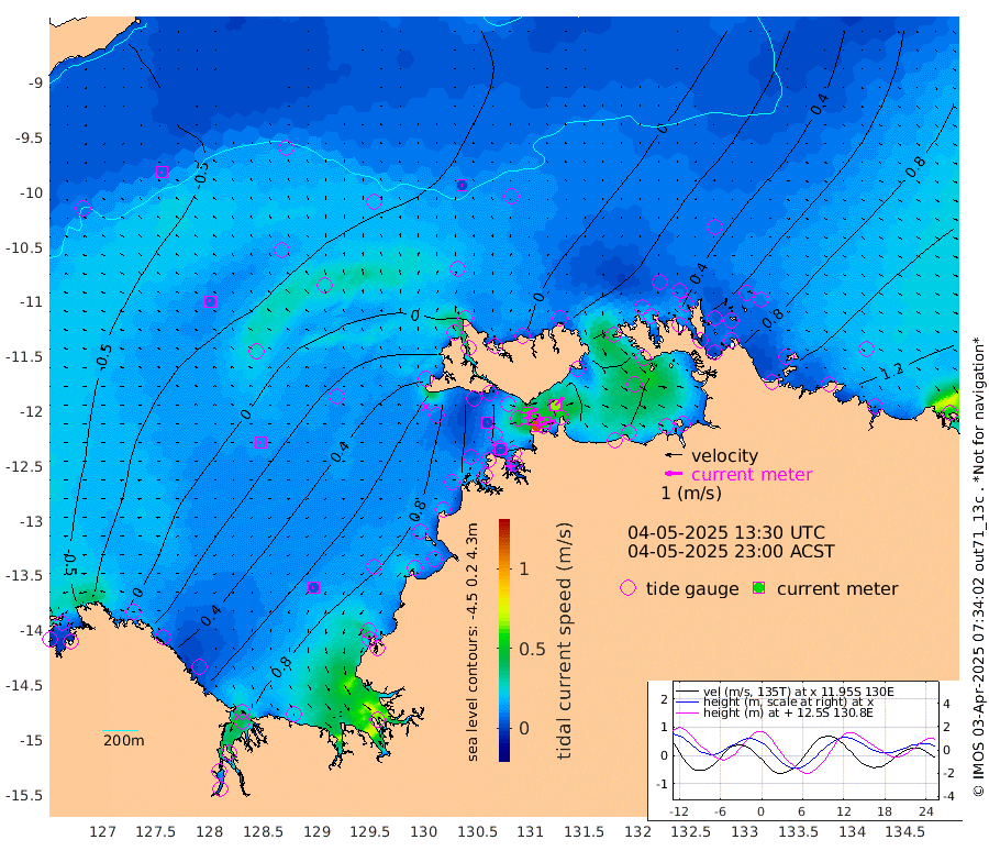 114cm/s 78T +4cm/s rms + 6cm/s 51T. Darwin_C1 52m 59cm/s 92T +4cm/s rms + 7cm/s -161T. Darwin_CW1 22m 34cm/s 73T +4cm/s rms + 8cm/s 61T. Darwin_CW2 34m 65cm/s 44T +3cm/s rms + 9cm/s 98T. Darwin_CW3 22m 56cm/s 90T +5cm/s rms + 7cm/s 88T. Darwin_C3 56m 56cm/s 65T +2cm/s rms + 9cm/s -126T. Darwin_CTbW 22m 1cm/s 100T +9cm/s rms + 2cm/s -110T. NWSLYN 196m 3cm/s 65T +1cm/s rms + 1cm/s -47T. DARBGF 30m 6cm/s -97T +7cm/s rms + 2cm/s -137T. ITFTIS 464m 8cm/s -56T +9cm/s rms + 1cm/s 74T. ITFMHB 146m 6cm/s -118T +4cm/s rms + 1cm/s -134T. ITFJBG 61m 11cm/s -82T +6cm/s rms + 4cm/s 121T. ITFFTB 108m 5cm/s 5T +4cm/s rms + 3cm/s 80T. NRSDAR 19m -67cm Carronade Island -70cm Guy Point -70cm Napier Broome Bay -21cm Lesueur Island 28cm Reveley Island -19cm Rocky Island 62cm Cape Domett 49cm Lacrosse Island 70cm Adolphus Island 37cm Pender Point 33cm Wyndham -26cm The Boxers -1cm Unnamed Shoal -55cm Loxton Shoal 87cm Pelican Island -38cm Calder Shoal -33cm Evans Shoal 104cm Quoin Island 73cm Port Keats 80cm Jones Point 145cm Catfish Island 52cm Cape Scott Offshore 8cm Cape Ford 66cm Anson Bay -22cm Goodrich Bank 60cm Peron Island North 42cm Point Jenny 38cm Native Point 54cm Fish Reef 54cm Tapa Bay 12cm Point Fawcett (Offshore) 55cm Burge Point 47cm Munkunuwa 20cm Beagle A 78cm Parsons Bank 46cm Fenton Patches -22cm Lynedoch Bank 75cm Hancox Shoal Area 65cm Nightcliff 81cm Darwin 67cm Charles Point Patches 69cm Glyde Point 70cm Chambers Bay 78cm Point Stuart 71cm Cape Hotham 56cm Christine Reef 82cm West Alligator Head 74cm East Field Island 70cm Two Hills Bay -8cm Newby Shoal 51cm Camp Point 56cm Medina Inlet South 5cm South Barlow Point -12cm St. Asaph Bay -18cm Cape Van Dieman -11cm Snake Bay -11cm Cache Point -67cm Echo Shoal 2cm Point Jahleel (Off) 40cm Cape Don 25cm Port Essington 24cm Smith Point - West 28cm NW Peacock Island 13cm North Of Jones Shoal 8cm Peacock Island 61cm Point David 34cm D'urville Point 30cm Money Shoal 65cm Copeland Island 85cm Cape Cockburn 58cm One Tree Point 80cm Hogmany Shoal 55cm New Year Island - West 62cm Grant Island 84cm Aurari Bay 103cm Cuthbert Point 85cm North Goulburn Island 107cm Paxie Shoal 117cm Entrance Island 145cm Yabooma Island