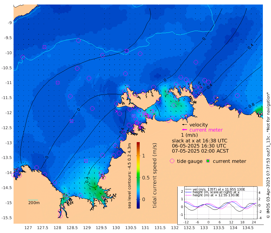 43cm/s 80T +4cm/s rms + 6cm/s 51T. Darwin_C1 52m 19cm/s 85T +4cm/s rms + 7cm/s -161T. Darwin_CW1 22m 20cm/s 73T +4cm/s rms + 8cm/s 61T. Darwin_CW2 34m 23cm/s 46T +3cm/s rms + 9cm/s 98T. Darwin_CW3 22m 26cm/s 89T +5cm/s rms + 7cm/s 88T. Darwin_C3 56m 23cm/s 64T +2cm/s rms + 9cm/s -126T. Darwin_CTbW 22m 1cm/s 149T +9cm/s rms + 2cm/s -110T. NWSLYN 196m 11cm/s 89T +1cm/s rms + 1cm/s -47T. DARBGF 30m 4cm/s -127T +7cm/s rms + 2cm/s -137T. ITFTIS 464m 4cm/s -137T +9cm/s rms + 1cm/s 74T. ITFMHB 146m 11cm/s 164T +4cm/s rms + 1cm/s -134T. ITFJBG 61m 6cm/s 179T +6cm/s rms + 4cm/s 121T. ITFFTB 108m 7cm/s 111T +4cm/s rms + 3cm/s 80T. NRSDAR 19m -44cm Carronade Island -47cm Guy Point -51cm Napier Broome Bay -17cm Lesueur Island 13cm Reveley Island -37cm Rocky Island 29cm Cape Domett 31cm Lacrosse Island 23cm Adolphus Island -4cm Pender Point -5cm Wyndham -25cm The Boxers -9cm Unnamed Shoal -53cm Loxton Shoal 52cm Pelican Island -29cm Calder Shoal -31cm Evans Shoal 41cm Quoin Island 40cm Port Keats 55cm Jones Point 119cm Catfish Island 41cm Cape Scott Offshore 16cm Cape Ford 51cm Anson Bay -25cm Goodrich Bank 45cm Peron Island North 38cm Point Jenny 33cm Native Point 47cm Fish Reef 42cm Tapa Bay 15cm Point Fawcett (Offshore) 42cm Burge Point 35cm Munkunuwa 25cm Beagle A 49cm Parsons Bank 39cm Fenton Patches -28cm Lynedoch Bank 50cm Hancox Shoal Area 50cm Nightcliff 50cm Darwin 42cm Charles Point Patches 45cm Glyde Point 56cm Chambers Bay 56cm Point Stuart 51cm Cape Hotham 38cm Christine Reef 59cm West Alligator Head 54cm East Field Island 47cm Two Hills Bay -11cm Newby Shoal 32cm Camp Point 39cm Medina Inlet South -2cm South Barlow Point -9cm St. Asaph Bay -21cm Cape Van Dieman -20cm Snake Bay -13cm Cache Point -49cm Echo Shoal -5cm Point Jahleel (Off) 21cm Cape Don 7cm Port Essington 8cm Smith Point - West 8cm NW Peacock Island 2cm North Of Jones Shoal 3cm Peacock Island 29cm Point David 13cm D'urville Point 9cm Money Shoal 33cm Copeland Island 45cm Cape Cockburn 27cm One Tree Point 39cm Hogmany Shoal 24cm New Year Island - West 27cm Grant Island 48cm Aurari Bay 58cm Cuthbert Point 48cm North Goulburn Island 62cm Paxie Shoal 76cm Entrance Island 103cm Yabooma Island
