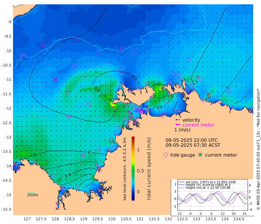 27cm/s -104T +4cm/s rms + 6cm/s 51T. Darwin_C1 52m 2cm/s -48T +4cm/s rms + 7cm/s -161T. Darwin_CW1 22m 15cm/s -108T +4cm/s rms + 8cm/s 61T. Darwin_CW2 34m 6cm/s -24T +3cm/s rms + 9cm/s 98T. Darwin_CW3 22m 5cm/s -115T +5cm/s rms + 7cm/s 88T. Darwin_C3 56m 25cm/s -116T +2cm/s rms + 9cm/s -126T. Darwin_CTbW 22m 8cm/s -23T +9cm/s rms + 2cm/s -110T. NWSLYN 196m 35cm/s -84T +1cm/s rms + 1cm/s -47T. DARBGF 30m 6cm/s -111T +7cm/s rms + 2cm/s -137T. ITFTIS 464m 8cm/s -45T +9cm/s rms + 1cm/s 74T. ITFMHB 146m 24cm/s -38T +4cm/s rms + 1cm/s -134T. ITFJBG 61m 26cm/s -53T +6cm/s rms + 4cm/s 121T. ITFFTB 108m 38cm/s -56T +4cm/s rms + 3cm/s 80T. NRSDAR 19m 26cm Carronade Island 31cm Guy Point 18cm Napier Broome Bay 34cm Lesueur Island 60cm Reveley Island 13cm Rocky Island 92cm Cape Domett 85cm Lacrosse Island 127cm Adolphus Island 149cm Pender Point 167cm Wyndham -32cm The Boxers -49cm Unnamed Shoal -28cm Loxton Shoal 79cm Pelican Island -32cm Calder Shoal -30cm Evans Shoal 162cm Quoin Island 45cm Port Keats 45cm Jones Point 121cm Catfish Island -2cm Cape Scott Offshore 12cm Cape Ford -11cm Anson Bay -38cm Goodrich Bank -4cm Peron Island North -17cm Point Jenny -20cm Native Point -8cm Fish Reef -12cm Tapa Bay -38cm Point Fawcett (Offshore) 9cm Burge Point -15cm Munkunuwa -18cm Beagle A 3cm Parsons Bank 4cm Fenton Patches -32cm Lynedoch Bank 10cm Hancox Shoal Area 5cm Nightcliff 13cm Darwin -1cm Charles Point Patches 35cm Glyde Point 68cm Chambers Bay 84cm Point Stuart 49cm Cape Hotham 67cm Christine Reef 97cm West Alligator Head 118cm East Field Island 52cm Two Hills Bay -19cm Newby Shoal 50cm Camp Point -9cm Medina Inlet South -42cm South Barlow Point -41cm St. Asaph Bay -42cm Cape Van Dieman -43cm Snake Bay -35cm Cache Point -19cm Echo Shoal -25cm Point Jahleel (Off) -6cm Cape Don -27cm Port Essington -29cm Smith Point - West -26cm NW Peacock Island -29cm North Of Jones Shoal -10cm Peacock Island -19cm Point David -29cm D'urville Point -23cm Money Shoal -15cm Copeland Island -13cm Cape Cockburn -18cm One Tree Point -9cm Hogmany Shoal -18cm New Year Island - West -15cm Grant Island -8cm Aurari Bay 5cm Cuthbert Point -7cm North Goulburn Island 13cm Paxie Shoal 28cm Entrance Island 53cm Yabooma Island