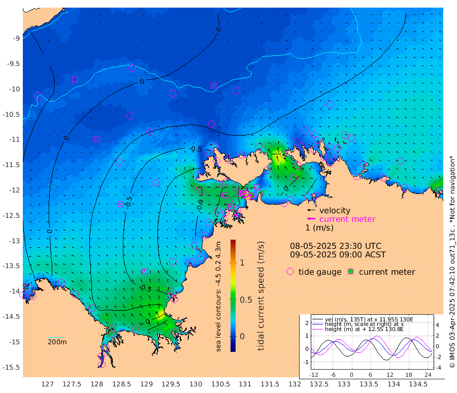 72cm/s -103T +4cm/s rms + 6cm/s 51T. Darwin_C1 52m 50cm/s -88T +4cm/s rms + 7cm/s -161T. Darwin_CW1 22m 54cm/s -108T +4cm/s rms + 8cm/s 61T. Darwin_CW2 34m 25cm/s -121T +3cm/s rms + 9cm/s 98T. Darwin_CW3 22m 68cm/s -92T +5cm/s rms + 7cm/s 88T. Darwin_C3 56m 46cm/s -115T +2cm/s rms + 9cm/s -126T. Darwin_CTbW 22m 5cm/s -34T +9cm/s rms + 2cm/s -110T. NWSLYN 196m 41cm/s -89T +1cm/s rms + 1cm/s -47T. DARBGF 30m 3cm/s -140T +7cm/s rms + 2cm/s -137T. ITFTIS 464m 5cm/s -18T +9cm/s rms + 1cm/s 74T. ITFMHB 146m 24cm/s -26T +4cm/s rms + 1cm/s -134T. ITFJBG 61m 19cm/s -43T +6cm/s rms + 4cm/s 121T. ITFFTB 108m 37cm/s -61T +4cm/s rms + 3cm/s 80T. NRSDAR 19m 67cm Carronade Island 72cm Guy Point 62cm Napier Broome Bay 23cm Lesueur Island -5cm Reveley Island 1cm Rocky Island -12cm Cape Domett -11cm Lacrosse Island 23cm Adolphus Island 65cm Pender Point 91cm Wyndham -19cm The Boxers -46cm Unnamed Shoal 16cm Loxton Shoal -40cm Pelican Island -12cm Calder Shoal 2cm Evans Shoal 24cm Quoin Island -58cm Port Keats -69cm Jones Point -7cm Catfish Island -76cm Cape Scott Offshore -73cm Cape Ford -95cm Anson Bay -14cm Goodrich Bank -77cm Peron Island North -84cm Point Jenny -84cm Native Point -87cm Fish Reef -92cm Tapa Bay -61cm Point Fawcett (Offshore) -81cm Burge Point -91cm Munkunuwa -69cm Beagle A -84cm Parsons Bank -79cm Fenton Patches -4cm Lynedoch Bank -77cm Hancox Shoal Area -84cm Nightcliff -88cm Darwin -88cm Charles Point Patches -44cm Glyde Point -6cm Chambers Bay 8cm Point Stuart -24cm Cape Hotham 7cm Christine Reef 14cm West Alligator Head 37cm East Field Island -8cm Two Hills Bay -32cm Newby Shoal -7cm Camp Point -88cm Medina Inlet South -51cm South Barlow Point -39cm St. Asaph Bay -20cm Cape Van Dieman -23cm Snake Bay -17cm Cache Point 30cm Echo Shoal -18cm Point Jahleel (Off) -27cm Cape Don -25cm Port Essington -25cm Smith Point - West -21cm NW Peacock Island -16cm North Of Jones Shoal -7cm Peacock Island -29cm Point David -26cm D'urville Point -17cm Money Shoal -28cm Copeland Island -30cm Cape Cockburn -26cm One Tree Point -26cm Hogmany Shoal -25cm New Year Island - West -25cm Grant Island -32cm Aurari Bay -28cm Cuthbert Point -30cm North Goulburn Island -30cm Paxie Shoal -25cm Entrance Island -19cm Yabooma Island