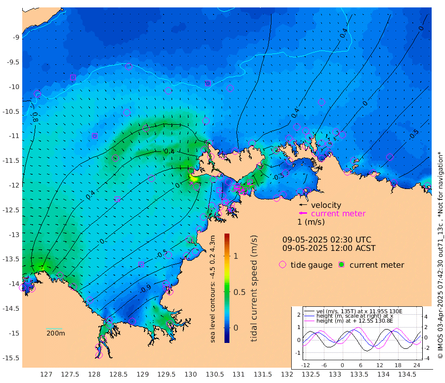 34cm/s -100T +4cm/s rms + 6cm/s 51T. Darwin_C1 52m 46cm/s -92T +4cm/s rms + 7cm/s -161T. Darwin_CW1 22m 26cm/s -105T +4cm/s rms + 8cm/s 61T. Darwin_CW2 34m 32cm/s -139T +3cm/s rms + 9cm/s 98T. Darwin_CW3 22m 58cm/s -91T +5cm/s rms + 7cm/s 88T. Darwin_C3 56m 5cm/s -115T +2cm/s rms + 9cm/s -126T. Darwin_CTbW 22m 4cm/s 165T +9cm/s rms + 2cm/s -110T. NWSLYN 196m 18cm/s 105T +1cm/s rms + 1cm/s -47T. DARBGF 30m 6cm/s 84T +7cm/s rms + 2cm/s -137T. ITFTIS 464m 10cm/s 130T +9cm/s rms + 1cm/s 74T. ITFMHB 146m 14cm/s 116T +4cm/s rms + 1cm/s -134T. ITFJBG 61m 22cm/s 117T +6cm/s rms + 4cm/s 121T. ITFFTB 108m 21cm/s 133T +4cm/s rms + 3cm/s 80T. NRSDAR 19m 62cm Carronade Island 60cm Guy Point 65cm Napier Broome Bay 9cm Lesueur Island -64cm Reveley Island 1cm Rocky Island -118cm Cape Domett -102cm Lacrosse Island -127cm Adolphus Island -134cm Pender Point -127cm Wyndham 51cm The Boxers 39cm Unnamed Shoal 80cm Loxton Shoal -135cm Pelican Island 62cm Calder Shoal 66cm Evans Shoal -182cm Quoin Island -94cm Port Keats -117cm Jones Point -159cm Catfish Island -49cm Cape Scott Offshore -57cm Cape Ford -57cm Anson Bay 59cm Goodrich Bank -43cm Peron Island North -32cm Point Jenny -30cm Native Point -44cm Fish Reef -52cm Tapa Bay 19cm Point Fawcett (Offshore) -60cm Burge Point -48cm Munkunuwa -7cm Beagle A -65cm Parsons Bank -49cm Fenton Patches 60cm Lynedoch Bank -69cm Hancox Shoal Area -60cm Nightcliff -80cm Darwin -61cm Charles Point Patches -73cm Glyde Point -86cm Chambers Bay -97cm Point Stuart -73cm Cape Hotham -67cm Christine Reef -108cm West Alligator Head -114cm East Field Island -65cm Two Hills Bay 39cm Newby Shoal -63cm Camp Point -49cm Medina Inlet South 34cm South Barlow Point 45cm St. Asaph Bay 58cm Cape Van Dieman 58cm Snake Bay 55cm Cache Point 84cm Echo Shoal 38cm Point Jahleel (Off) 0cm Cape Don 29cm Port Essington 35cm Smith Point - West 34cm NW Peacock Island 45cm North Of Jones Shoal 14cm Peacock Island 5cm Point David 32cm D'urville Point 30cm Money Shoal 1cm Copeland Island 6cm Cape Cockburn 10cm One Tree Point -6cm Hogmany Shoal 12cm New Year Island - West 7cm Grant Island -14cm Aurari Bay -30cm Cuthbert Point -11cm North Goulburn Island -52cm Paxie Shoal -63cm Entrance Island -96cm Yabooma Island