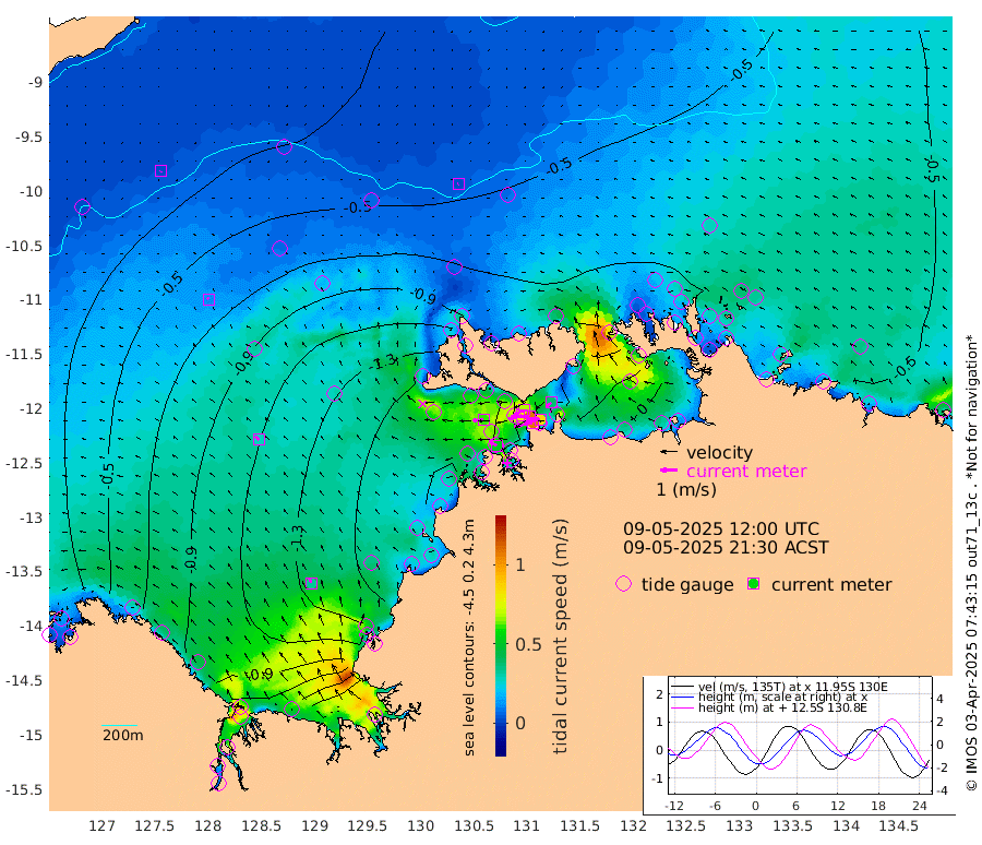 108cm/s -102T +4cm/s rms + 6cm/s 51T. Darwin_C1 52m 84cm/s -90T +4cm/s rms + 7cm/s -161T. Darwin_CW1 22m 83cm/s -107T +4cm/s rms + 8cm/s 61T. Darwin_CW2 34m 38cm/s -129T +3cm/s rms + 9cm/s 98T. Darwin_CW3 22m 109cm/s -91T +5cm/s rms + 7cm/s 88T. Darwin_C3 56m 68cm/s -115T +2cm/s rms + 9cm/s -126T. Darwin_CTbW 22m 2cm/s -106T +9cm/s rms + 2cm/s -110T. NWSLYN 196m 60cm/s -91T +1cm/s rms + 1cm/s -47T. DARBGF 30m 3cm/s -137T +7cm/s rms + 2cm/s -137T. ITFTIS 464m 11cm/s -16T +9cm/s rms + 1cm/s 74T. ITFMHB 146m 32cm/s -22T +4cm/s rms + 1cm/s -134T. ITFJBG 61m 27cm/s -46T +6cm/s rms + 4cm/s 121T. ITFFTB 108m 52cm/s -61T +4cm/s rms + 3cm/s 80T. NRSDAR 19m 20cm Carronade Island 26cm Guy Point 24cm Napier Broome Bay -50cm Lesueur Island -84cm Reveley Island -38cm Rocky Island -100cm Cape Domett -108cm Lacrosse Island -70cm Adolphus Island 21cm Pender Point 40cm Wyndham -73cm The Boxers -86cm Unnamed Shoal -24cm Loxton Shoal -121cm Pelican Island -73cm Calder Shoal -39cm Evans Shoal -67cm Quoin Island -159cm Port Keats -149cm Jones Point -84cm Catfish Island -163cm Cape Scott Offshore -180cm Cape Ford -184cm Anson Bay -53cm Goodrich Bank -173cm Peron Island North -175cm Point Jenny -173cm Native Point -187cm Fish Reef -182cm Tapa Bay -137cm Point Fawcett (Offshore) -188cm Burge Point -174cm Munkunuwa -172cm Beagle A -174cm Parsons Bank -188cm Fenton Patches -39cm Lynedoch Bank -165cm Hancox Shoal Area -192cm Nightcliff -187cm Darwin -184cm Charles Point Patches -116cm Glyde Point -59cm Chambers Bay -40cm Point Stuart -91cm Cape Hotham -52cm Christine Reef -36cm West Alligator Head -9cm East Field Island -62cm Two Hills Bay -134cm Newby Shoal -58cm Camp Point -183cm Medina Inlet South -118cm South Barlow Point -100cm St. Asaph Bay -60cm Cape Van Dieman -65cm Snake Bay -63cm Cache Point -14cm Echo Shoal -64cm Point Jahleel (Off) -77cm Cape Don -64cm Port Essington -69cm Smith Point - West -60cm NW Peacock Island -62cm North Of Jones Shoal -22cm Peacock Island -53cm Point David -66cm D'urville Point -51cm Money Shoal -52cm Copeland Island -77cm Cape Cockburn -59cm One Tree Point -54cm Hogmany Shoal -57cm New Year Island - West -54cm Grant Island -60cm Aurari Bay -50cm Cuthbert Point -59cm North Goulburn Island -43cm Paxie Shoal -44cm Entrance Island -37cm Yabooma Island