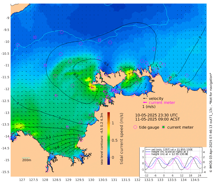 14cm/s -111T +4cm/s rms + 6cm/s 51T. Darwin_C1 52m 14cm/s 83T +4cm/s rms + 7cm/s -161T. Darwin_CW1 22m 23cm/s -112T +4cm/s rms + 8cm/s 61T. Darwin_CW2 34m 15cm/s 15T +3cm/s rms + 9cm/s 98T. Darwin_CW3 22m 4cm/s -171T +5cm/s rms + 7cm/s 88T. Darwin_C3 56m 21cm/s -118T +2cm/s rms + 9cm/s -126T. Darwin_CTbW 22m 6cm/s -16T +9cm/s rms + 2cm/s -110T. NWSLYN 196m 47cm/s -85T +1cm/s rms + 1cm/s -47T. DARBGF 30m 6cm/s -101T +7cm/s rms + 2cm/s -137T. ITFTIS 464m 10cm/s -37T +9cm/s rms + 1cm/s 74T. ITFMHB 146m 35cm/s -33T +4cm/s rms + 1cm/s -134T. ITFJBG 61m 35cm/s -51T +6cm/s rms + 4cm/s 121T. ITFFTB 108m 51cm/s -55T +4cm/s rms + 3cm/s 80T. NRSDAR 19m 76cm Carronade Island 82cm Guy Point 73cm Napier Broome Bay 75cm Lesueur Island 87cm Reveley Island 37cm Rocky Island 125cm Cape Domett 118cm Lacrosse Island 168cm Adolphus Island 219cm Pender Point 248cm Wyndham -16cm The Boxers -36cm Unnamed Shoal -9cm Loxton Shoal 103cm Pelican Island -21cm Calder Shoal -17cm Evans Shoal 222cm Quoin Island 53cm Port Keats 52cm Jones Point 222cm Catfish Island 0cm Cape Scott Offshore -16cm Cape Ford -15cm Anson Bay -33cm Goodrich Bank -6cm Peron Island North -29cm Point Jenny -32cm Native Point -18cm Fish Reef -23cm Tapa Bay -39cm Point Fawcett (Offshore) -6cm Burge Point -31cm Munkunuwa -31cm Beagle A -10cm Parsons Bank -12cm Fenton Patches -23cm Lynedoch Bank 2cm Hancox Shoal Area -7cm Nightcliff 5cm Darwin -10cm Charles Point Patches 45cm Glyde Point 97cm Chambers Bay 121cm Point Stuart 66cm Cape Hotham 91cm Christine Reef 139cm West Alligator Head 168cm East Field Island 80cm Two Hills Bay -16cm Newby Shoal 71cm Camp Point -19cm Medina Inlet South -48cm South Barlow Point -43cm St. Asaph Bay -39cm Cape Van Dieman -38cm Snake Bay -28cm Cache Point 4cm Echo Shoal -17cm Point Jahleel (Off) 3cm Cape Don -21cm Port Essington -25cm Smith Point - West -21cm NW Peacock Island -21cm North Of Jones Shoal -8cm Peacock Island -13cm Point David -26cm D'urville Point -18cm Money Shoal -10cm Copeland Island -6cm Cape Cockburn -10cm One Tree Point 4cm Hogmany Shoal -9cm New Year Island - West -7cm Grant Island 0cm Aurari Bay 14cm Cuthbert Point 1cm North Goulburn Island 27cm Paxie Shoal 35cm Entrance Island 60cm Yabooma Island