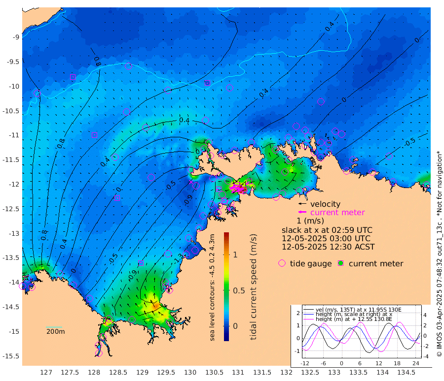 123cm/s -101T +4cm/s rms + 6cm/s 51T. Darwin_C1 52m 114cm/s -90T +4cm/s rms + 7cm/s -161T. Darwin_CW1 22m 77cm/s -106T +4cm/s rms + 8cm/s 61T. Darwin_CW2 34m 55cm/s -134T +3cm/s rms + 9cm/s 98T. Darwin_CW3 22m 123cm/s -91T +5cm/s rms + 7cm/s 88T. Darwin_C3 56m 68cm/s -115T +2cm/s rms + 9cm/s -126T. Darwin_CTbW 22m 6cm/s 147T +9cm/s rms + 2cm/s -110T. NWSLYN 196m 22cm/s -100T +1cm/s rms + 1cm/s -47T. DARBGF 30m 7cm/s 58T +7cm/s rms + 2cm/s -137T. ITFTIS 464m 9cm/s 68T +9cm/s rms + 1cm/s 74T. ITFMHB 146m 15cm/s 14T +4cm/s rms + 1cm/s -134T. ITFJBG 61m 12cm/s 64T +6cm/s rms + 4cm/s 121T. ITFFTB 108m 18cm/s -83T +4cm/s rms + 3cm/s 80T. NRSDAR 19m 137cm Carronade Island 138cm Guy Point 141cm Napier Broome Bay 49cm Lesueur Island -62cm Reveley Island -22cm Rocky Island -121cm Cape Domett -100cm Lacrosse Island -124cm Adolphus Island -64cm Pender Point -36cm Wyndham 46cm The Boxers 29cm Unnamed Shoal 91cm Loxton Shoal -160cm Pelican Island 56cm Calder Shoal 67cm Evans Shoal -172cm Quoin Island -144cm Port Keats -153cm Jones Point -130cm Catfish Island -104cm Cape Scott Offshore -82cm Cape Ford -127cm Anson Bay 50cm Goodrich Bank -99cm Peron Island North -94cm Point Jenny -92cm Native Point -108cm Fish Reef -119cm Tapa Bay -21cm Point Fawcett (Offshore) -123cm Burge Point -119cm Munkunuwa -64cm Beagle A -134cm Parsons Bank -115cm Fenton Patches 56cm Lynedoch Bank -132cm Hancox Shoal Area -135cm Nightcliff -149cm Darwin -128cm Charles Point Patches -98cm Glyde Point -71cm Chambers Bay -65cm Point Stuart -77cm Cape Hotham -56cm Christine Reef -71cm West Alligator Head -57cm East Field Island -54cm Two Hills Bay 7cm Newby Shoal -53cm Camp Point -118cm Medina Inlet South -11cm South Barlow Point 14cm St. Asaph Bay 46cm Cape Van Dieman 42cm Snake Bay 46cm Cache Point 108cm Echo Shoal 27cm Point Jahleel (Off) -15cm Cape Don 14cm Port Essington 15cm Smith Point - West 19cm NW Peacock Island 32cm North Of Jones Shoal 9cm Peacock Island -4cm Point David 12cm D'urville Point 22cm Money Shoal -9cm Copeland Island -5cm Cape Cockburn 0cm One Tree Point -3cm Hogmany Shoal 4cm New Year Island - West -2cm Grant Island -27cm Aurari Bay -38cm Cuthbert Point -19cm North Goulburn Island -46cm Paxie Shoal -58cm Entrance Island -81cm Yabooma Island