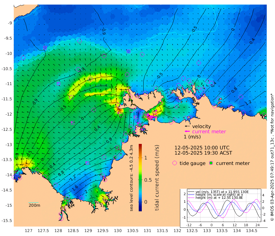 109cm/s 79T +4cm/s rms + 6cm/s 51T. Darwin_C1 52m 105cm/s 92T +4cm/s rms + 7cm/s -161T. Darwin_CW1 22m 60cm/s 70T +4cm/s rms + 8cm/s 61T. Darwin_CW2 34m 75cm/s 44T +3cm/s rms + 9cm/s 98T. Darwin_CW3 22m 111cm/s 90T +5cm/s rms + 7cm/s 88T. Darwin_C3 56m 48cm/s 65T +2cm/s rms + 9cm/s -126T. Darwin_CTbW 22m 11cm/s -22T +9cm/s rms + 2cm/s -110T. NWSLYN 196m 26cm/s -74T +1cm/s rms + 1cm/s -47T. DARBGF 30m 10cm/s -87T +7cm/s rms + 2cm/s -137T. ITFTIS 464m 21cm/s -38T +9cm/s rms + 1cm/s 74T. ITFMHB 146m 22cm/s -61T +4cm/s rms + 1cm/s -134T. ITFJBG 61m 38cm/s -60T +6cm/s rms + 4cm/s 121T. ITFFTB 108m 40cm/s -49T +4cm/s rms + 3cm/s 80T. NRSDAR 19m -94cm Carronade Island -98cm Guy Point -89cm Napier Broome Bay -11cm Lesueur Island 85cm Reveley Island 44cm Rocky Island 178cm Cape Domett 147cm Lacrosse Island 214cm Adolphus Island 198cm Pender Point 197cm Wyndham -60cm The Boxers -39cm Unnamed Shoal -104cm Loxton Shoal 193cm Pelican Island -83cm Calder Shoal -89cm Evans Shoal 296cm Quoin Island 157cm Port Keats 162cm Jones Point 266cm Catfish Island 73cm Cape Scott Offshore 12cm Cape Ford 90cm Anson Bay -75cm Goodrich Bank 68cm Peron Island North 46cm Point Jenny 44cm Native Point 70cm Fish Reef 72cm Tapa Bay -28cm Point Fawcett (Offshore) 96cm Burge Point 67cm Munkunuwa 21cm Beagle A 107cm Parsons Bank 83cm Fenton Patches -68cm Lynedoch Bank 108cm Hancox Shoal Area 103cm Nightcliff 133cm Darwin 99cm Charles Point Patches 119cm Glyde Point 129cm Chambers Bay 146cm Point Stuart 114cm Cape Hotham 110cm Christine Reef 162cm West Alligator Head 171cm East Field Island 107cm Two Hills Bay -21cm Newby Shoal 102cm Camp Point 81cm Medina Inlet South -31cm South Barlow Point -59cm St. Asaph Bay -75cm Cape Van Dieman -65cm Snake Bay -69cm Cache Point -119cm Echo Shoal -43cm Point Jahleel (Off) 21cm Cape Don -21cm Port Essington -29cm Smith Point - West -25cm NW Peacock Island -42cm North Of Jones Shoal -12cm Peacock Island 15cm Point David -20cm D'urville Point -17cm Money Shoal 21cm Copeland Island 28cm Cape Cockburn 13cm One Tree Point 20cm Hogmany Shoal 13cm New Year Island - West 18cm Grant Island 54cm Aurari Bay 78cm Cuthbert Point 46cm North Goulburn Island 96cm Paxie Shoal 110cm Entrance Island 154cm Yabooma Island