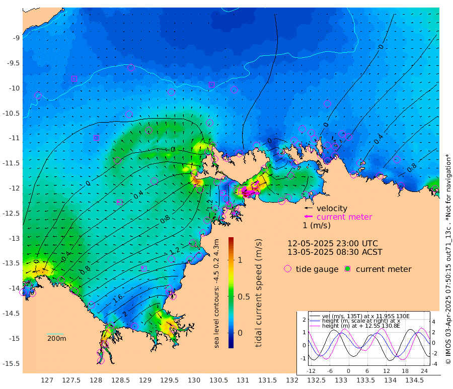 129cm/s 79T +4cm/s rms + 6cm/s 51T. Darwin_C1 52m 129cm/s 91T +4cm/s rms + 7cm/s -161T. Darwin_CW1 22m 74cm/s 71T +4cm/s rms + 8cm/s 61T. Darwin_CW2 34m 79cm/s 46T +3cm/s rms + 9cm/s 98T. Darwin_CW3 22m 134cm/s 90T +5cm/s rms + 7cm/s 88T. Darwin_C3 56m 62cm/s 66T +2cm/s rms + 9cm/s -126T. Darwin_CTbW 22m 7cm/s -8T +9cm/s rms + 2cm/s -110T. NWSLYN 196m 20cm/s -61T +1cm/s rms + 1cm/s -47T. DARBGF 30m 8cm/s -100T +7cm/s rms + 2cm/s -137T. ITFTIS 464m 10cm/s -77T +9cm/s rms + 1cm/s 74T. ITFMHB 146m 22cm/s -58T +4cm/s rms + 1cm/s -134T. ITFJBG 61m 30cm/s -62T +6cm/s rms + 4cm/s 121T. ITFFTB 108m 39cm/s -48T +4cm/s rms + 3cm/s 80T. NRSDAR 19m 21cm Carronade Island 27cm Guy Point 19cm Napier Broome Bay 99cm Lesueur Island 179cm Reveley Island 87cm Rocky Island 261cm Cape Domett 243cm Lacrosse Island 297cm Adolphus Island 289cm Pender Point 298cm Wyndham 9cm The Boxers 1cm Unnamed Shoal -29cm Loxton Shoal 268cm Pelican Island -7cm Calder Shoal -24cm Evans Shoal 384cm Quoin Island 216cm Port Keats 211cm Jones Point 379cm Catfish Island 140cm Cape Scott Offshore 96cm Cape Ford 144cm Anson Bay -26cm Goodrich Bank 126cm Peron Island North 103cm Point Jenny 100cm Native Point 121cm Fish Reef 129cm Tapa Bay 38cm Point Fawcett (Offshore) 140cm Burge Point 109cm Munkunuwa 80cm Beagle A 139cm Parsons Bank 133cm Fenton Patches -25cm Lynedoch Bank 152cm Hancox Shoal Area 153cm Nightcliff 173cm Darwin 148cm Charles Point Patches 157cm Glyde Point 175cm Chambers Bay 186cm Point Stuart 154cm Cape Hotham 156cm Christine Reef 208cm West Alligator Head 219cm East Field Island 147cm Two Hills Bay 47cm Newby Shoal 137cm Camp Point 128cm Medina Inlet South 14cm South Barlow Point 0cm St. Asaph Bay -29cm Cape Van Dieman -23cm Snake Bay -17cm Cache Point -30cm Echo Shoal 4cm Point Jahleel (Off) 51cm Cape Don 4cm Port Essington 2cm Smith Point - West 0cm NW Peacock Island -6cm North Of Jones Shoal -2cm Peacock Island 16cm Point David 1cm D'urville Point -4cm Money Shoal 19cm Copeland Island 29cm Cape Cockburn 19cm One Tree Point 37cm Hogmany Shoal 19cm New Year Island - West 22cm Grant Island 41cm Aurari Bay 58cm Cuthbert Point 38cm North Goulburn Island 75cm Paxie Shoal 84cm Entrance Island 111cm Yabooma Island