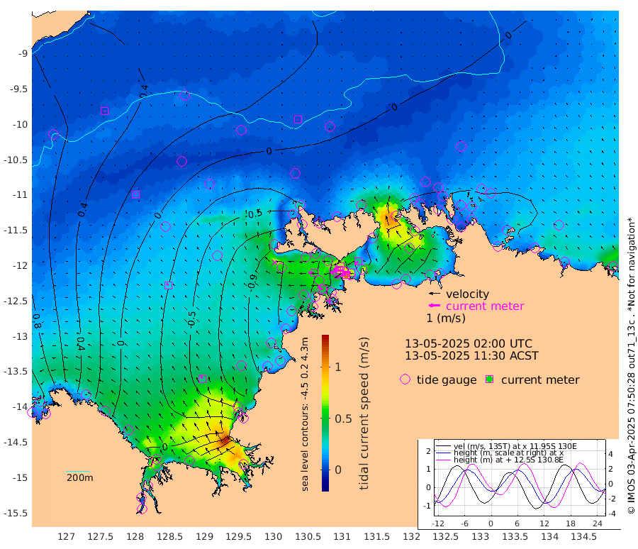 108cm/s -103T +4cm/s rms + 6cm/s 51T. Darwin_C1 52m 69cm/s -88T +4cm/s rms + 7cm/s -161T. Darwin_CW1 22m 83cm/s -109T +4cm/s rms + 8cm/s 61T. Darwin_CW2 34m 35cm/s -119T +3cm/s rms + 9cm/s 98T. Darwin_CW3 22m 88cm/s -92T +5cm/s rms + 7cm/s 88T. Darwin_C3 56m 68cm/s -115T +2cm/s rms + 9cm/s -126T. Darwin_CTbW 22m 1cm/s 104T +9cm/s rms + 2cm/s -110T. NWSLYN 196m 53cm/s -90T +1cm/s rms + 1cm/s -47T. DARBGF 30m 2cm/s -4T +7cm/s rms + 2cm/s -137T. ITFTIS 464m 10cm/s 8T +9cm/s rms + 1cm/s 74T. ITFMHB 146m 35cm/s -21T +4cm/s rms + 1cm/s -134T. ITFJBG 61m 25cm/s -33T +6cm/s rms + 4cm/s 121T. ITFFTB 108m 47cm/s -63T +4cm/s rms + 3cm/s 80T. NRSDAR 19m 155cm Carronade Island 159cm Guy Point 159cm Napier Broome Bay 88cm Lesueur Island 11cm Reveley Island 16cm Rocky Island 0cm Cape Domett 9cm Lacrosse Island 30cm Adolphus Island 123cm Pender Point 165cm Wyndham 18cm The Boxers -8cm Unnamed Shoal 54cm Loxton Shoal -40cm Pelican Island 16cm Calder Shoal 30cm Evans Shoal 43cm Quoin Island -76cm Port Keats -77cm Jones Point 114cm Catfish Island -82cm Cape Scott Offshore -97cm Cape Ford -111cm Anson Bay 5cm Goodrich Bank -88cm Peron Island North -102cm Point Jenny -103cm Native Point -103cm Fish Reef -114cm Tapa Bay -52cm Point Fawcett (Offshore) -112cm Burge Point -124cm Munkunuwa -84cm Beagle A -120cm Parsons Bank -109cm Fenton Patches 19cm Lynedoch Bank -108cm Hancox Shoal Area -120cm Nightcliff -118cm Darwin -111cm Charles Point Patches -43cm Glyde Point 24cm Chambers Bay 47cm Point Stuart -11cm Cape Hotham 24cm Christine Reef 58cm West Alligator Head 92cm East Field Island 20cm Two Hills Bay -23cm Newby Shoal 13cm Camp Point -113cm Medina Inlet South -56cm South Barlow Point -31cm St. Asaph Bay -2cm Cape Van Dieman -6cm Snake Bay 6cm Cache Point 78cm Echo Shoal 0cm Point Jahleel (Off) -13cm Cape Don -11cm Port Essington -14cm Smith Point - West -8cm NW Peacock Island 1cm North Of Jones Shoal -1cm Peacock Island -16cm Point David -17cm D'urville Point -3cm Money Shoal -18cm Copeland Island -17cm Cape Cockburn -12cm One Tree Point -3cm Hogmany Shoal -8cm New Year Island - West -12cm Grant Island -22cm Aurari Bay -17cm Cuthbert Point -16cm North Goulburn Island -13cm Paxie Shoal -17cm Entrance Island -15cm Yabooma Island