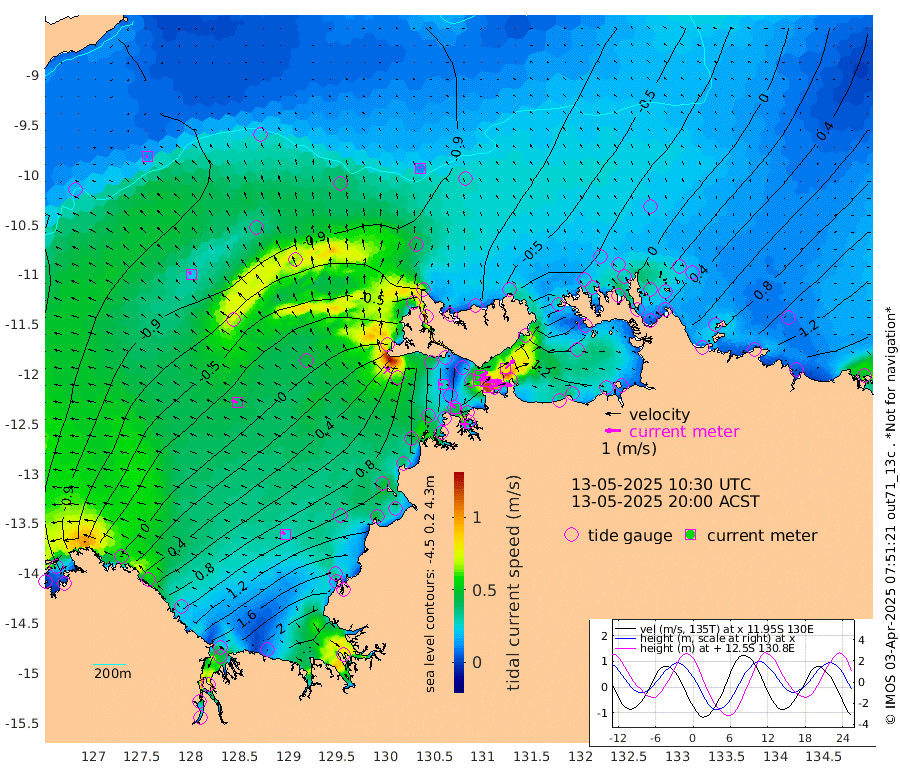 117cm/s 79T +4cm/s rms + 6cm/s 51T. Darwin_C1 52m 104cm/s 92T +4cm/s rms + 7cm/s -161T. Darwin_CW1 22m 58cm/s 70T +4cm/s rms + 8cm/s 61T. Darwin_CW2 34m 81cm/s 43T +3cm/s rms + 9cm/s 98T. Darwin_CW3 22m 107cm/s 90T +5cm/s rms + 7cm/s 88T. Darwin_C3 56m 52cm/s 66T +2cm/s rms + 9cm/s -126T. Darwin_CTbW 22m 11cm/s -22T +9cm/s rms + 2cm/s -110T. NWSLYN 196m 29cm/s -76T +1cm/s rms + 1cm/s -47T. DARBGF 30m 11cm/s -92T +7cm/s rms + 2cm/s -137T. ITFTIS 464m 22cm/s -39T +9cm/s rms + 1cm/s 74T. ITFMHB 146m 23cm/s -59T +4cm/s rms + 1cm/s -134T. ITFJBG 61m 40cm/s -60T +6cm/s rms + 4cm/s 121T. ITFFTB 108m 42cm/s -49T +4cm/s rms + 3cm/s 80T. NRSDAR 19m -100cm Carronade Island -104cm Guy Point -97cm Napier Broome Bay -18cm Lesueur Island 79cm Reveley Island 29cm Rocky Island 171cm Cape Domett 141cm Lacrosse Island 210cm Adolphus Island 195cm Pender Point 197cm Wyndham -71cm The Boxers -46cm Unnamed Shoal -112cm Loxton Shoal 187cm Pelican Island -94cm Calder Shoal -97cm Evans Shoal 298cm Quoin Island 148cm Port Keats 151cm Jones Point 269cm Catfish Island 65cm Cape Scott Offshore -21cm Cape Ford 82cm Anson Bay -83cm Goodrich Bank 58cm Peron Island North 33cm Point Jenny 31cm Native Point 56cm Fish Reef 60cm Tapa Bay -39cm Point Fawcett (Offshore) 82cm Burge Point 55cm Munkunuwa 6cm Beagle A 98cm Parsons Bank 69cm Fenton Patches -74cm Lynedoch Bank 101cm Hancox Shoal Area 96cm Nightcliff 123cm Darwin 86cm Charles Point Patches 113cm Glyde Point 129cm Chambers Bay 147cm Point Stuart 112cm Cape Hotham 109cm Christine Reef 163cm West Alligator Head 173cm East Field Island 107cm Two Hills Bay -36cm Newby Shoal 100cm Camp Point 69cm Medina Inlet South -41cm South Barlow Point -69cm St. Asaph Bay -83cm Cape Van Dieman -71cm Snake Bay -77cm Cache Point -126cm Echo Shoal -48cm Point Jahleel (Off) 17cm Cape Don -26cm Port Essington -33cm Smith Point - West -28cm NW Peacock Island -45cm North Of Jones Shoal -12cm Peacock Island 17cm Point David -23cm D'urville Point -19cm Money Shoal 23cm Copeland Island 30cm Cape Cockburn 14cm One Tree Point 22cm Hogmany Shoal 14cm New Year Island - West 20cm Grant Island 59cm Aurari Bay 82cm Cuthbert Point 50cm North Goulburn Island 103cm Paxie Shoal 118cm Entrance Island 166cm Yabooma Island