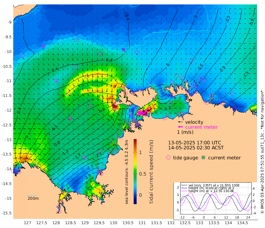 156cm/s -101T +4cm/s rms + 6cm/s 51T. Darwin_C1 52m 150cm/s -92T +4cm/s rms + 7cm/s -161T. Darwin_CW1 22m 60cm/s -105T +4cm/s rms + 8cm/s 61T. Darwin_CW2 34m 100cm/s -138T +3cm/s rms + 9cm/s 98T. Darwin_CW3 22m 131cm/s -90T +5cm/s rms + 7cm/s 88T. Darwin_C3 56m 80cm/s -116T +2cm/s rms + 9cm/s -126T. Darwin_CTbW 22m 9cm/s -175T +9cm/s rms + 2cm/s -110T. NWSLYN 196m 28cm/s 109T +1cm/s rms + 1cm/s -47T. DARBGF 30m 12cm/s 120T +7cm/s rms + 2cm/s -137T. ITFTIS 464m 22cm/s 152T +9cm/s rms + 1cm/s 74T. ITFMHB 146m 29cm/s 127T +4cm/s rms + 1cm/s -134T. ITFJBG 61m 43cm/s 127T +6cm/s rms + 4cm/s 121T. ITFFTB 108m 41cm/s 136T +4cm/s rms + 3cm/s 80T. NRSDAR 19m -9cm Carronade Island -9cm Guy Point -15cm Napier Broome Bay -112cm Lesueur Island -190cm Reveley Island -86cm Rocky Island -297cm Cape Domett -271cm Lacrosse Island -337cm Adolphus Island -329cm Pender Point -342cm Wyndham -12cm The Boxers -31cm Unnamed Shoal 41cm Loxton Shoal -299cm Pelican Island 15cm Calder Shoal 38cm Evans Shoal -439cm Quoin Island -255cm Port Keats -246cm Jones Point -420cm Catfish Island -156cm Cape Scott Offshore -81cm Cape Ford -169cm Anson Bay 29cm Goodrich Bank -144cm Peron Island North -114cm Point Jenny -112cm Native Point -138cm Fish Reef -146cm Tapa Bay -36cm Point Fawcett (Offshore) -168cm Burge Point -121cm Munkunuwa -88cm Beagle A -170cm Parsons Bank -156cm Fenton Patches 22cm Lynedoch Bank -180cm Hancox Shoal Area -183cm Nightcliff -212cm Darwin -178cm Charles Point Patches -194cm Glyde Point -207cm Chambers Bay -226cm Point Stuart -190cm Cape Hotham -186cm Christine Reef -248cm West Alligator Head -263cm East Field Island -181cm Two Hills Bay -63cm Newby Shoal -176cm Camp Point -151cm Medina Inlet South -20cm South Barlow Point 6cm St. Asaph Bay 30cm Cape Van Dieman 15cm Snake Bay 18cm Cache Point 54cm Echo Shoal -9cm Point Jahleel (Off) -74cm Cape Don -21cm Port Essington -14cm Smith Point - West -17cm NW Peacock Island -5cm North Of Jones Shoal -4cm Peacock Island -55cm Point David -20cm D'urville Point -23cm Money Shoal -58cm Copeland Island -80cm Cape Cockburn -56cm One Tree Point -79cm Hogmany Shoal -61cm New Year Island - West -64cm Grant Island -94cm Aurari Bay -115cm Cuthbert Point -89cm North Goulburn Island -141cm Paxie Shoal -148cm Entrance Island -187cm Yabooma Island