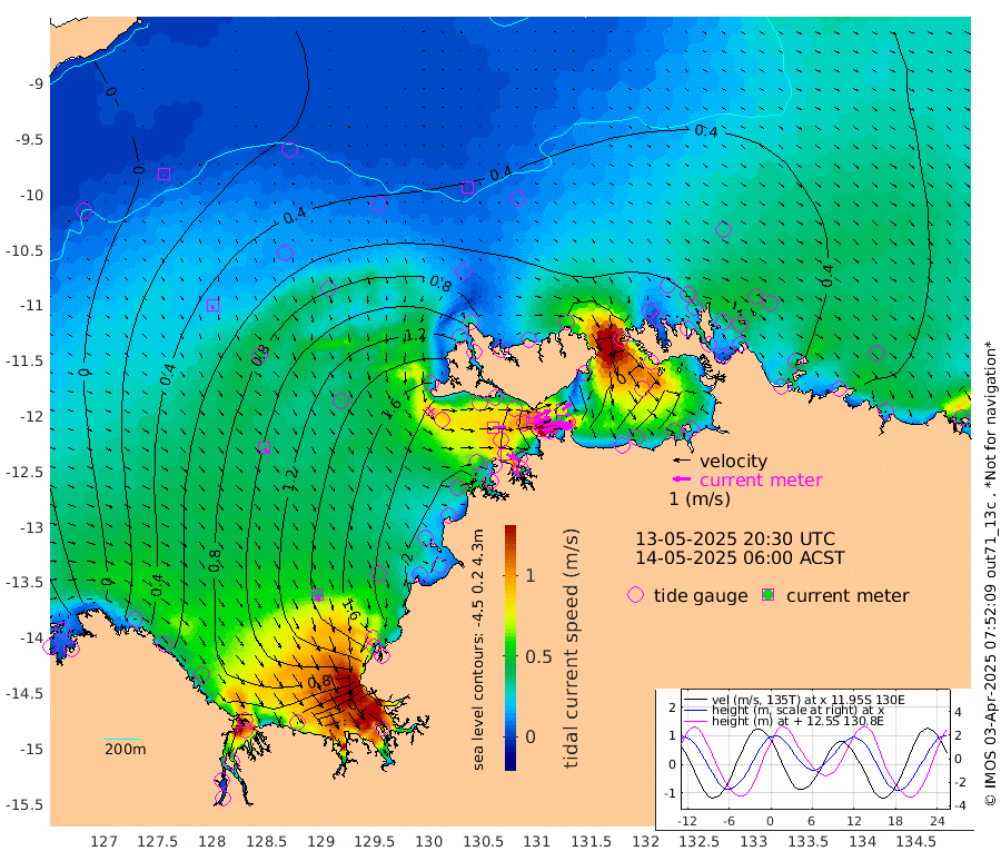 175cm/s 77T +4cm/s rms + 6cm/s 51T. Darwin_C1 52m 124cm/s 89T +4cm/s rms + 7cm/s -161T. Darwin_CW1 22m 109cm/s 74T +4cm/s rms + 8cm/s 61T. Darwin_CW2 34m 67cm/s 52T +3cm/s rms + 9cm/s 98T. Darwin_CW3 22m 141cm/s 88T +5cm/s rms + 7cm/s 88T. Darwin_C3 56m 104cm/s 64T +2cm/s rms + 9cm/s -126T. Darwin_CTbW 22m 3cm/s 127T +9cm/s rms + 2cm/s -110T. NWSLYN 196m 76cm/s 88T +1cm/s rms + 1cm/s -47T. DARBGF 30m 3cm/s 120T +7cm/s rms + 2cm/s -137T. ITFTIS 464m 22cm/s 175T +9cm/s rms + 1cm/s 74T. ITFMHB 146m 43cm/s 164T +4cm/s rms + 1cm/s -134T. ITFJBG 61m 37cm/s 143T +6cm/s rms + 4cm/s 121T. ITFFTB 108m 76cm/s 116T +4cm/s rms + 3cm/s 80T. NRSDAR 19m -86cm Carronade Island -82cm Guy Point -93cm Napier Broome Bay 7cm Lesueur Island 95cm Reveley Island 45cm Rocky Island 110cm Cape Domett 106cm Lacrosse Island 72cm Adolphus Island -46cm Pender Point -94cm Wyndham 59cm The Boxers 67cm Unnamed Shoal 10cm Loxton Shoal 150cm Pelican Island 64cm Calder Shoal 29cm Evans Shoal 57cm Quoin Island 191cm Port Keats 177cm Jones Point -35cm Catfish Island 191cm Cape Scott Offshore 246cm Cape Ford 220cm Anson Bay 51cm Goodrich Bank 194cm Peron Island North 213cm Point Jenny 213cm Native Point 210cm Fish Reef 230cm Tapa Bay 146cm Point Fawcett (Offshore) 224cm Burge Point 228cm Munkunuwa 193cm Beagle A 217cm Parsons Bank 223cm Fenton Patches 27cm Lynedoch Bank 209cm Hancox Shoal Area 233cm Nightcliff 226cm Darwin 224cm Charles Point Patches 118cm Glyde Point 27cm Chambers Bay -7cm Point Stuart 72cm Cape Hotham 32cm Christine Reef -16cm West Alligator Head -59cm East Field Island 28cm Two Hills Bay 127cm Newby Shoal 36cm Camp Point 220cm Medina Inlet South 134cm South Barlow Point 110cm St. Asaph Bay 58cm Cape Van Dieman 60cm Snake Bay 53cm Cache Point -15cm Echo Shoal 55cm Point Jahleel (Off) 62cm Cape Don 51cm Port Essington 60cm Smith Point - West 47cm NW Peacock Island 42cm North Of Jones Shoal 15cm Peacock Island 35cm Point David 54cm D'urville Point 30cm Money Shoal 34cm Copeland Island 40cm Cape Cockburn 35cm One Tree Point 33cm Hogmany Shoal 32cm New Year Island - West 34cm Grant Island 29cm Aurari Bay 21cm Cuthbert Point 28cm North Goulburn Island 11cm Paxie Shoal 11cm Entrance Island -10cm Yabooma Island